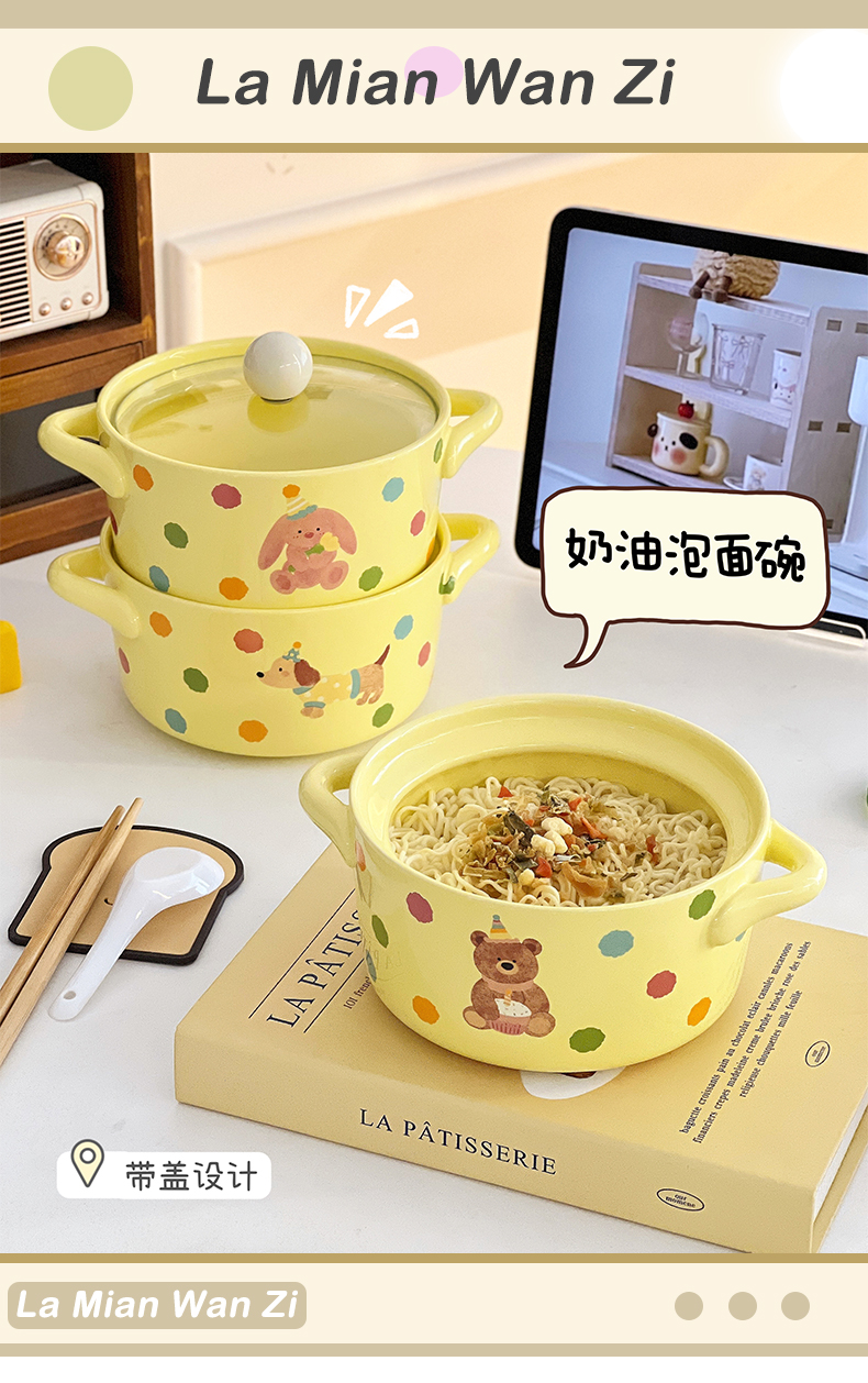 家用陶瓷碗泡面碗可爱双耳汤碗面碗学生宿舍餐具碗简约可爱ins风