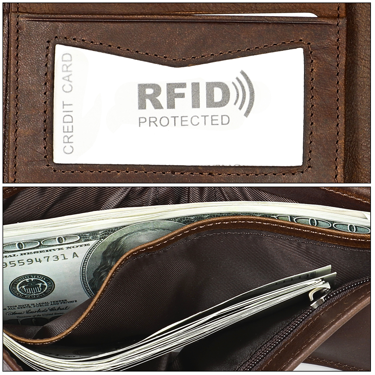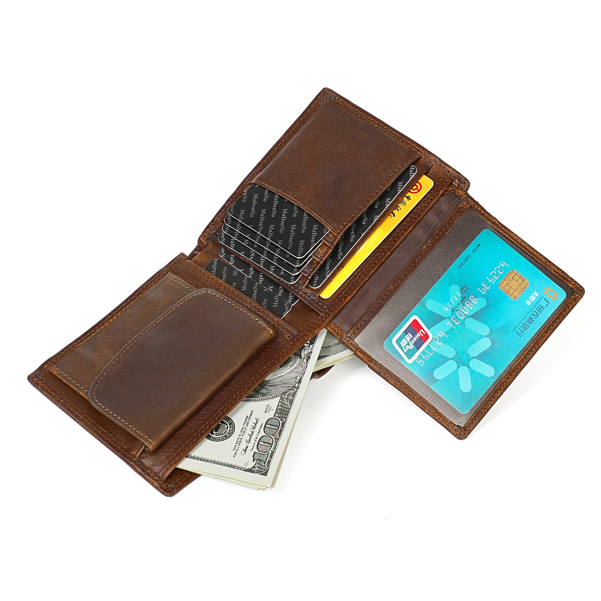 跨境复古疯马牛皮男士钱包定制 2019新款真皮美金包横款RFID钱包