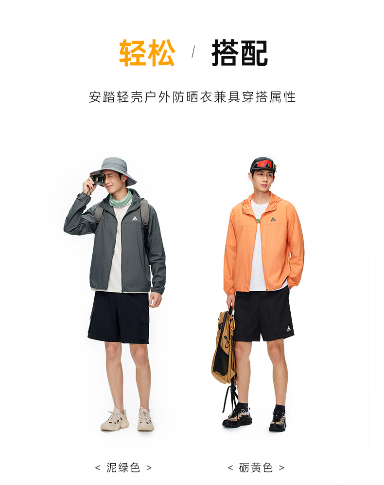 安踏轻壳丨大地之壳户外防晒衣防泼水梭织外套男薄款风衣户外上衣