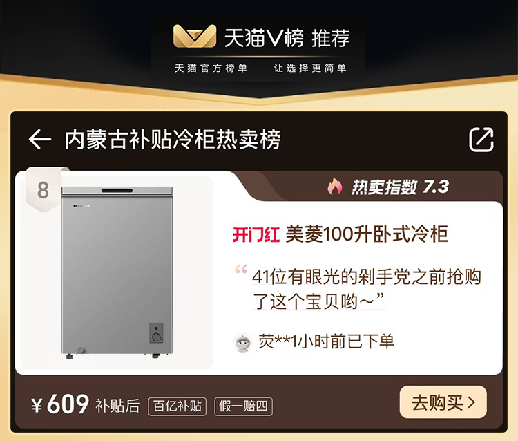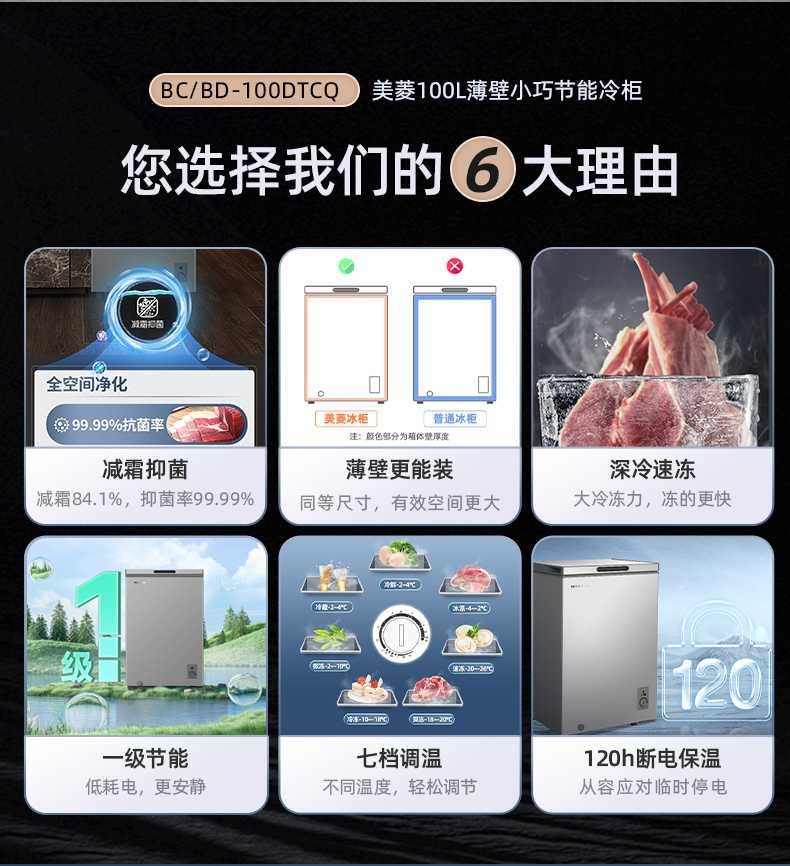 美菱100升一级节能减霜冷藏小冰柜家用商用冷柜