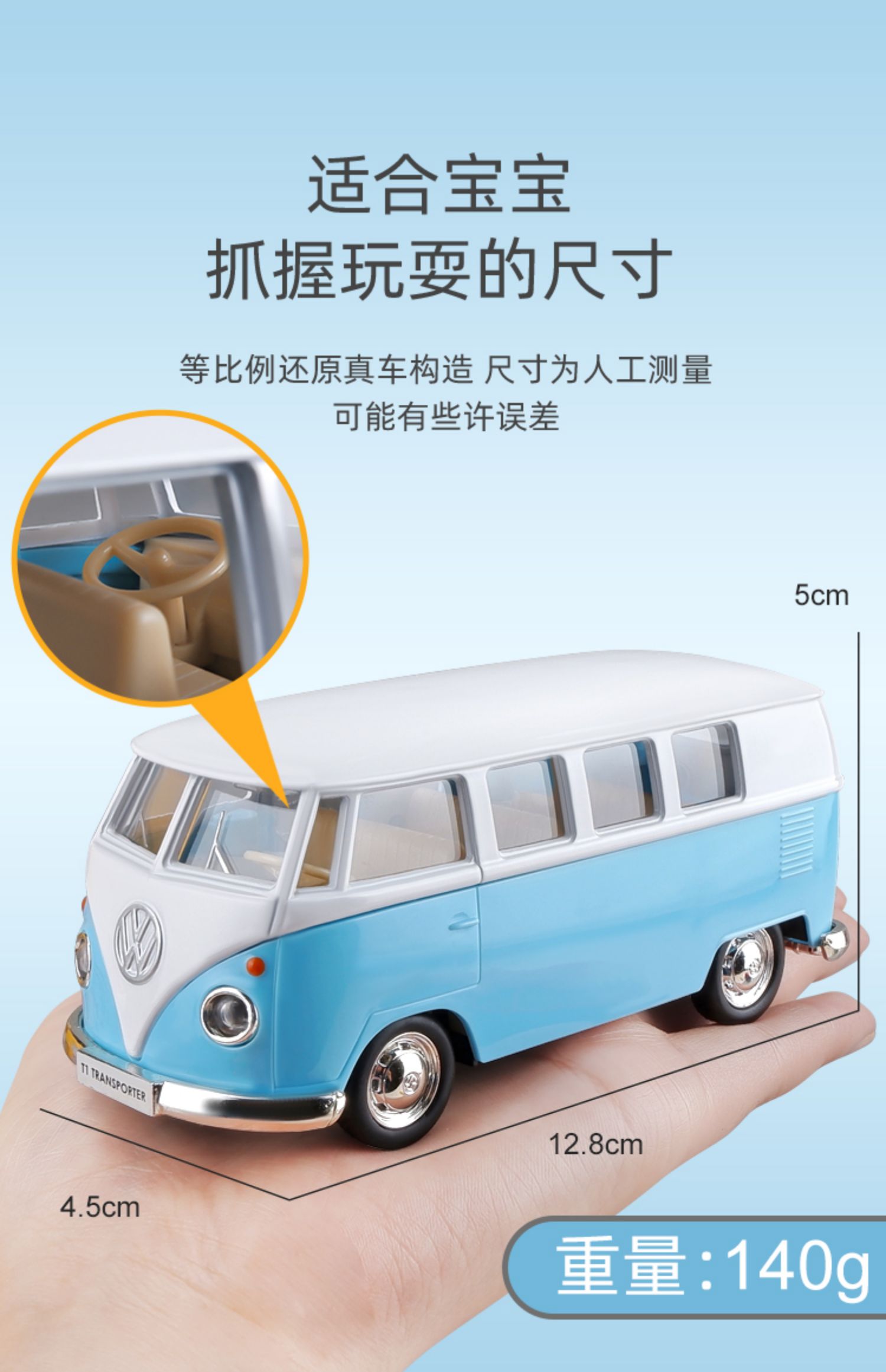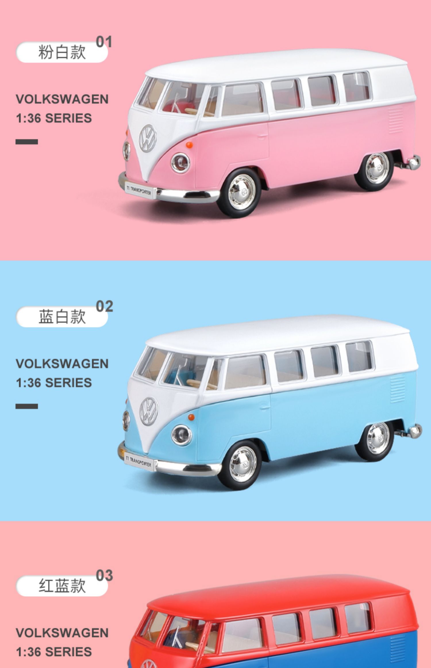 合金大众T1车模儿童公交车宝宝巴车模型男孩蓝色小巴士玩具车粉色