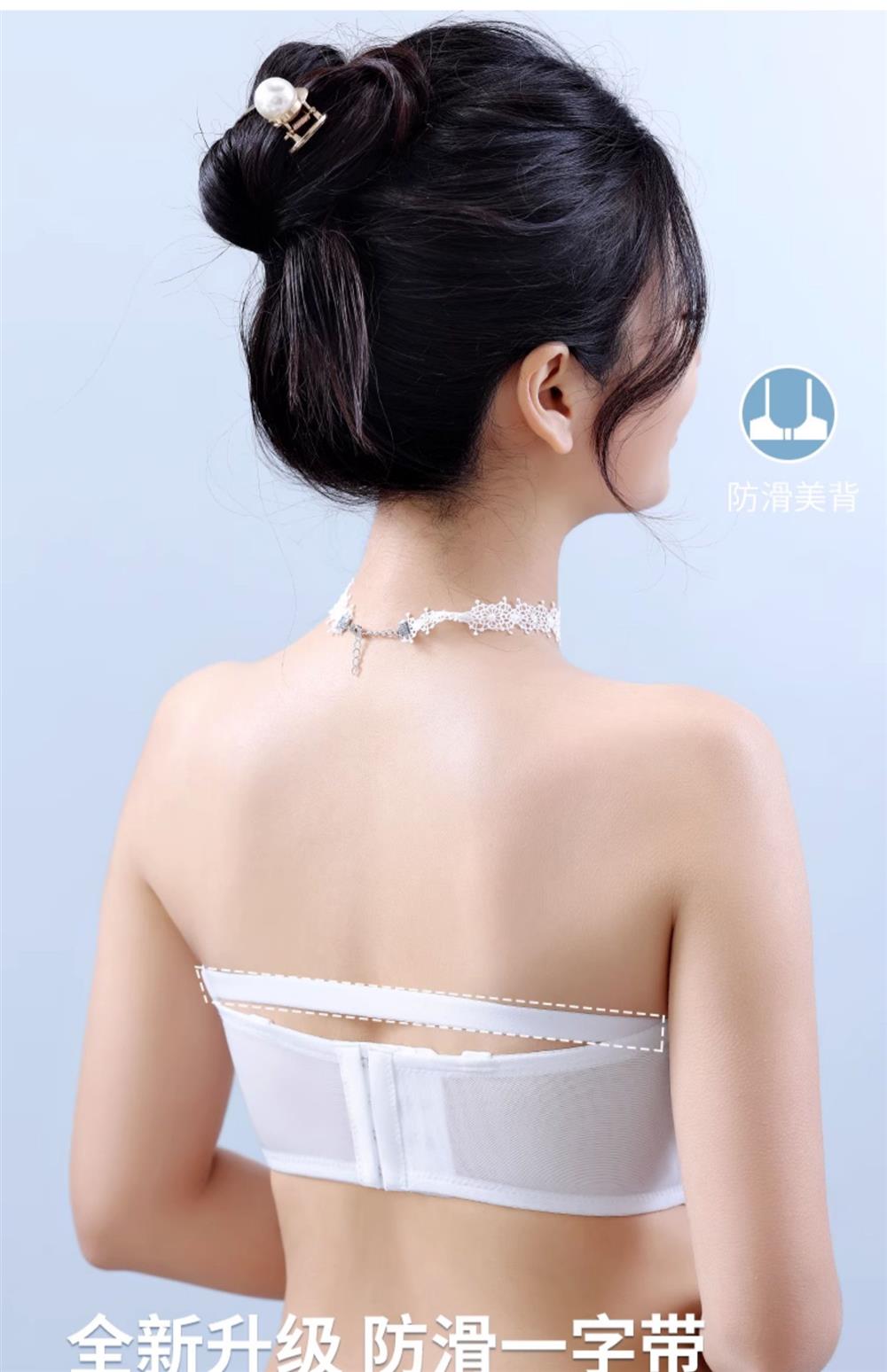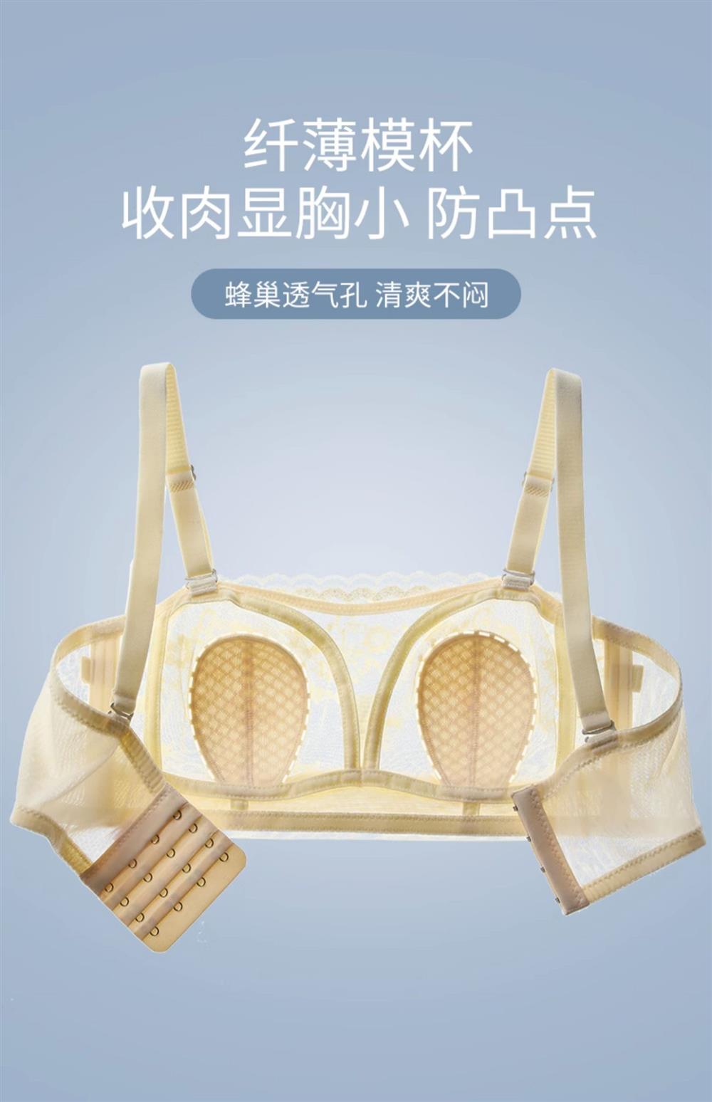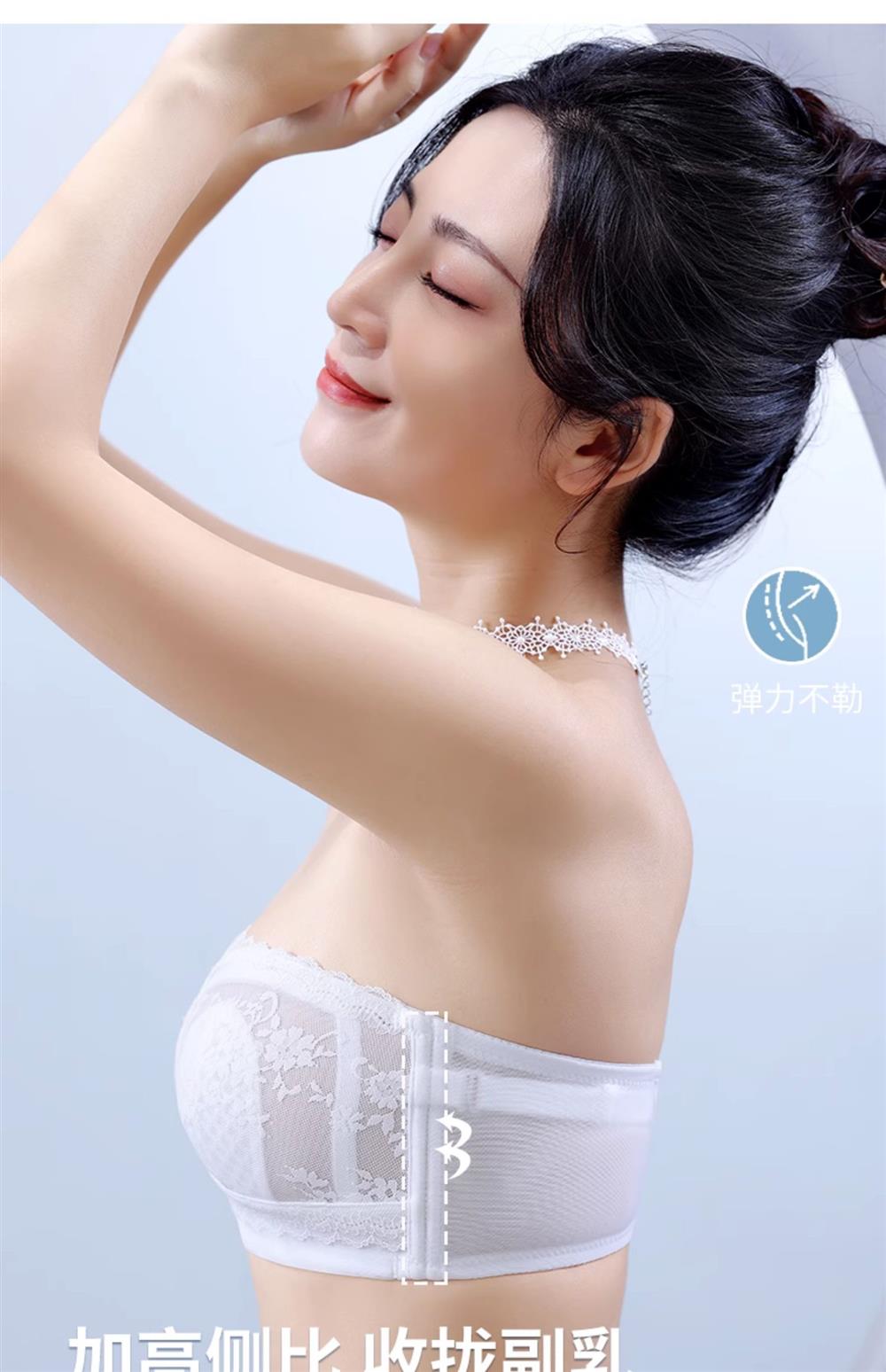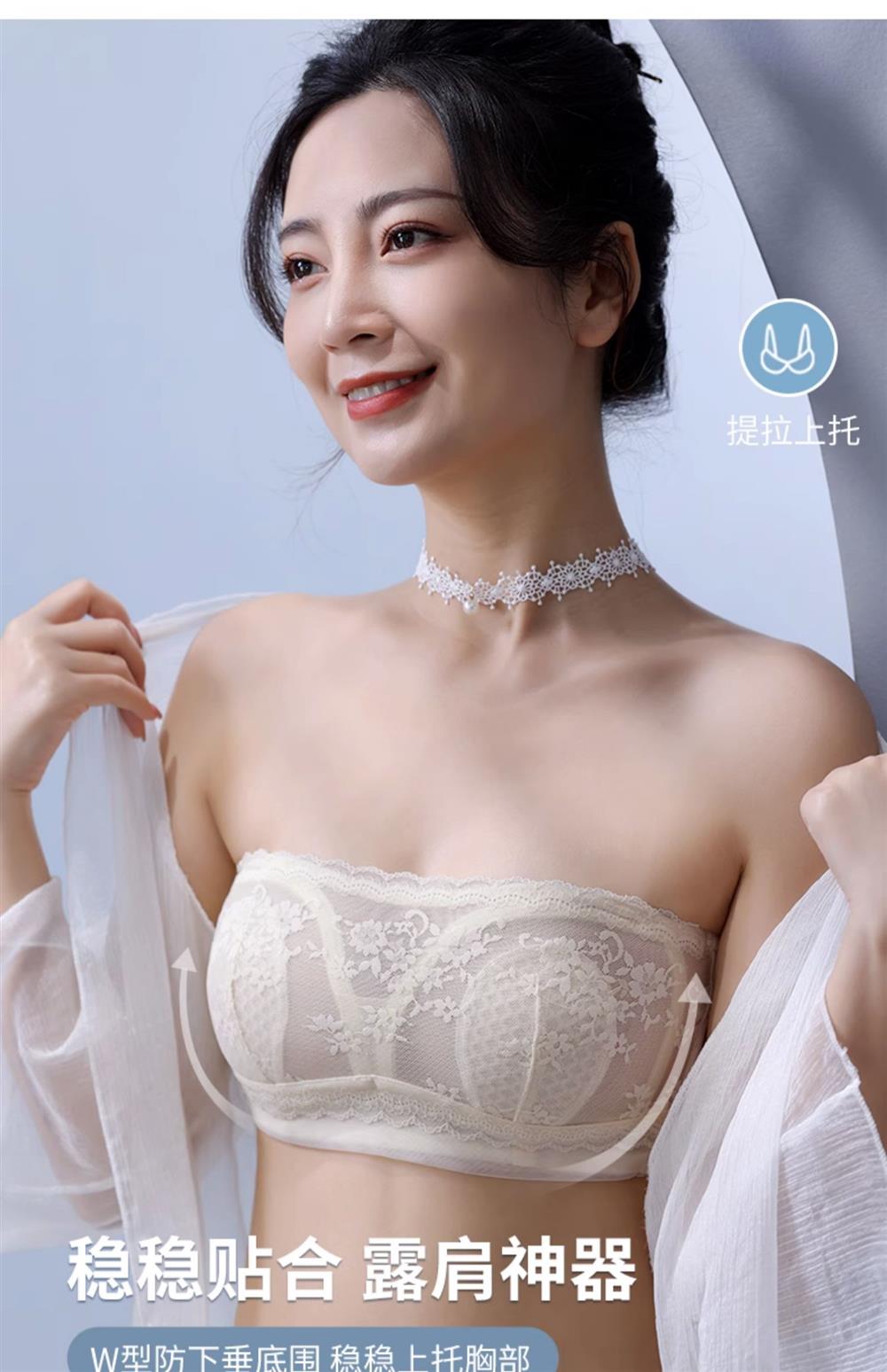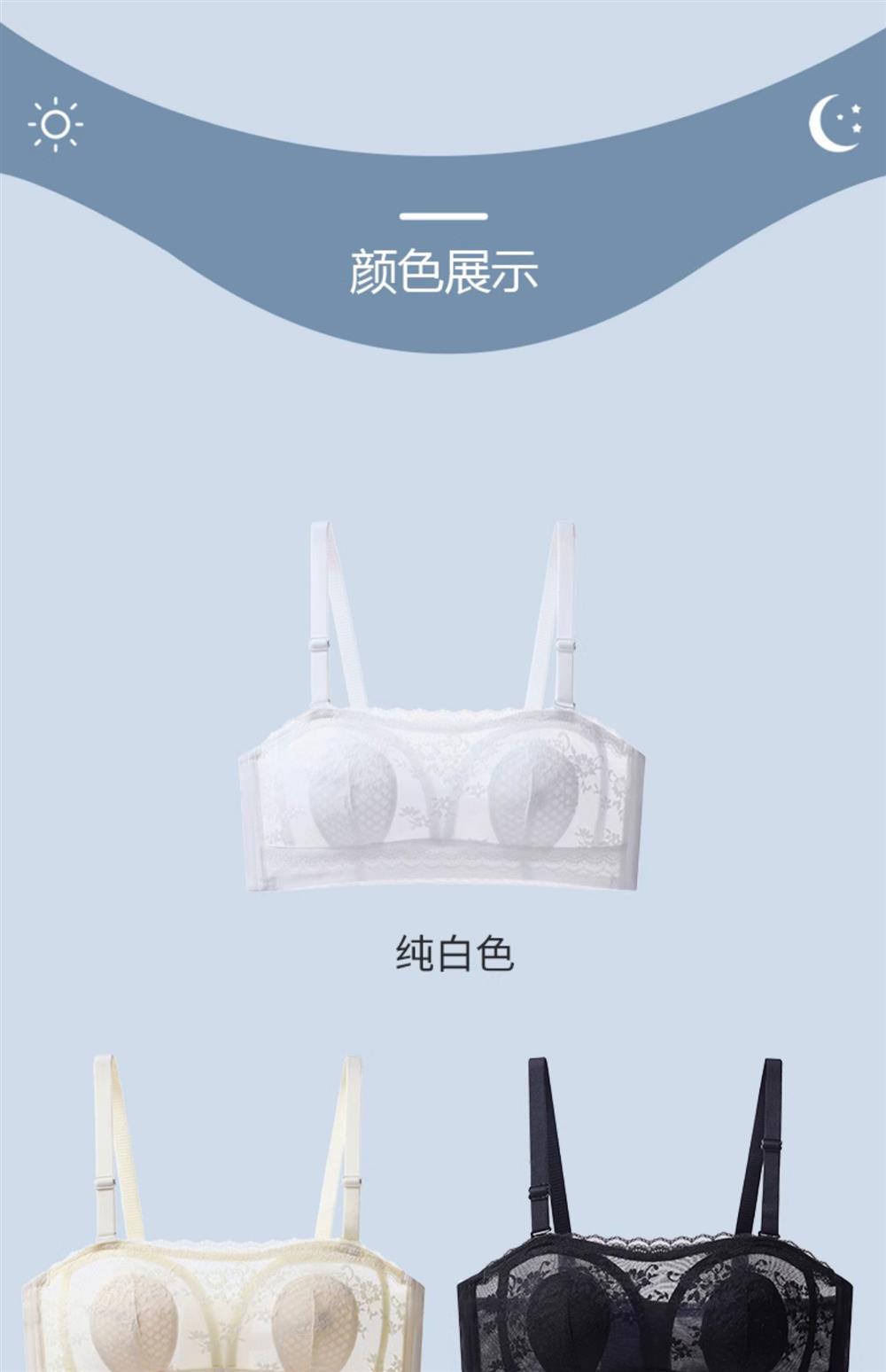无肩带内衣女薄款大胸显小结婚纱抹胸文胸罩聚拢蕾丝下垂防走光