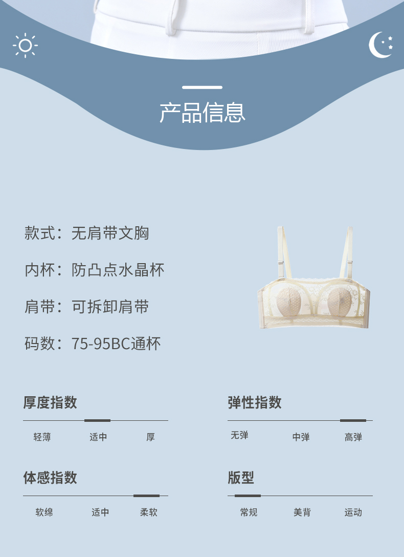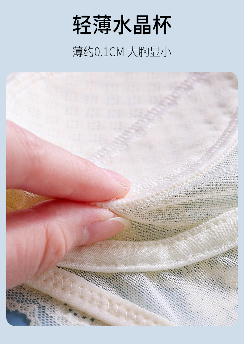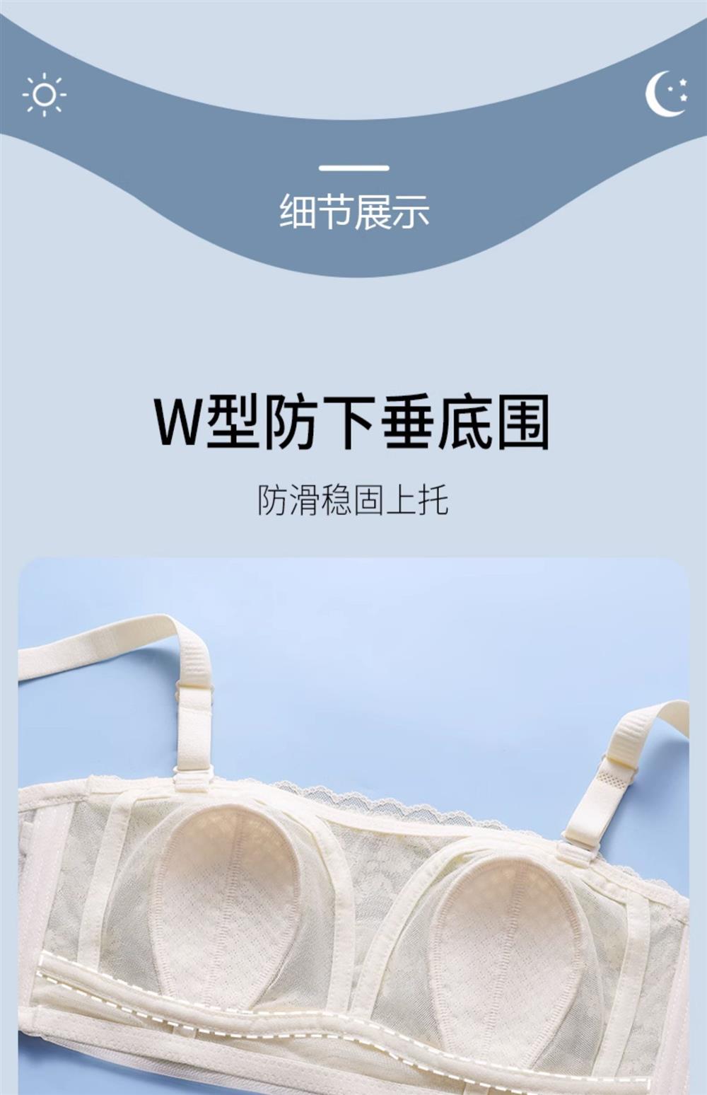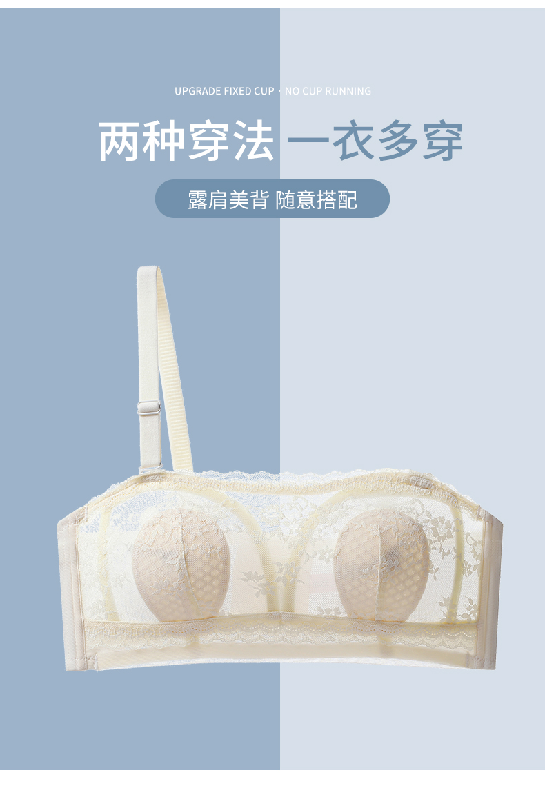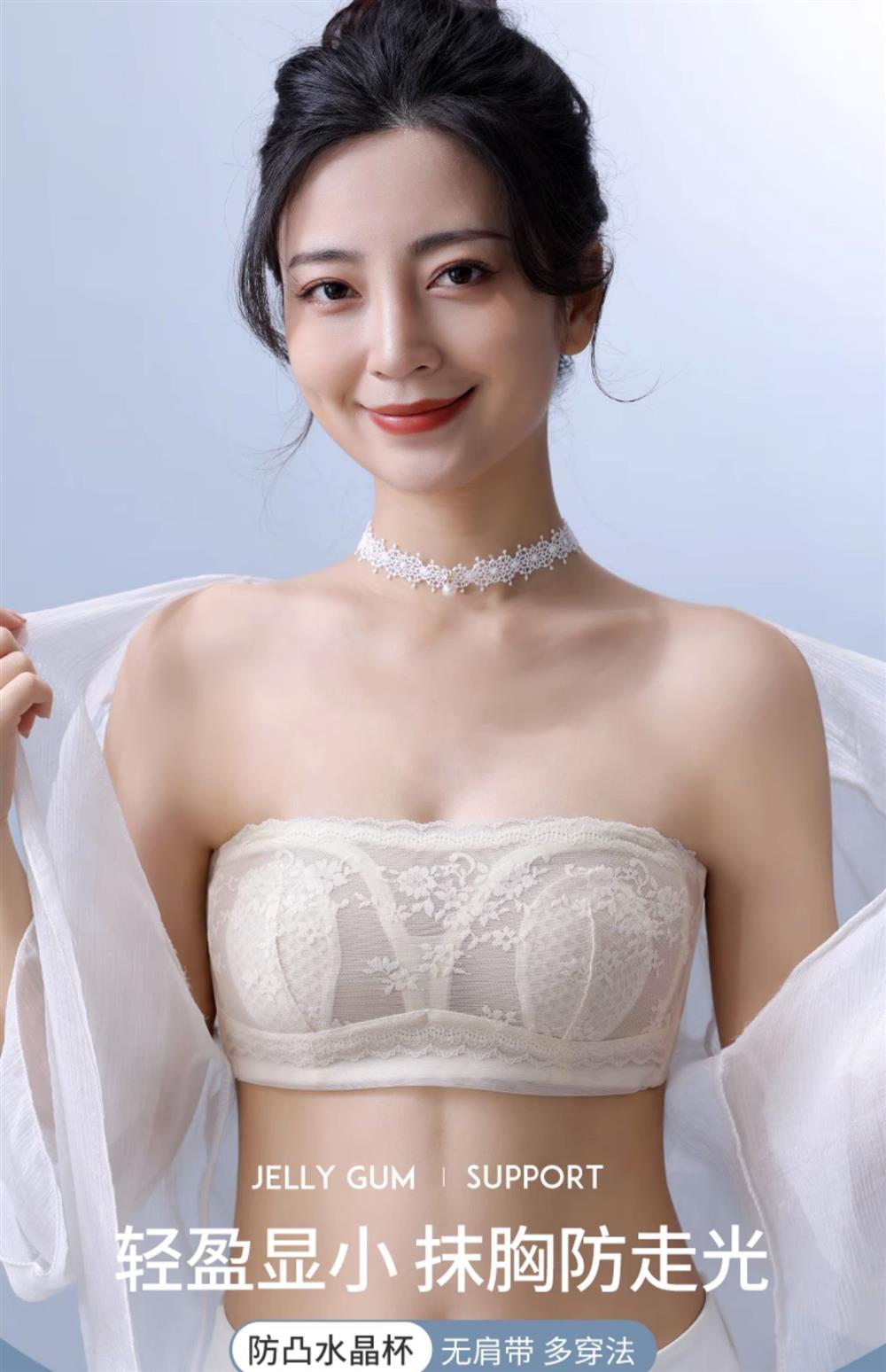 无肩带内衣女薄款大胸显小结婚纱抹胸文胸罩聚拢蕾丝下垂防走光