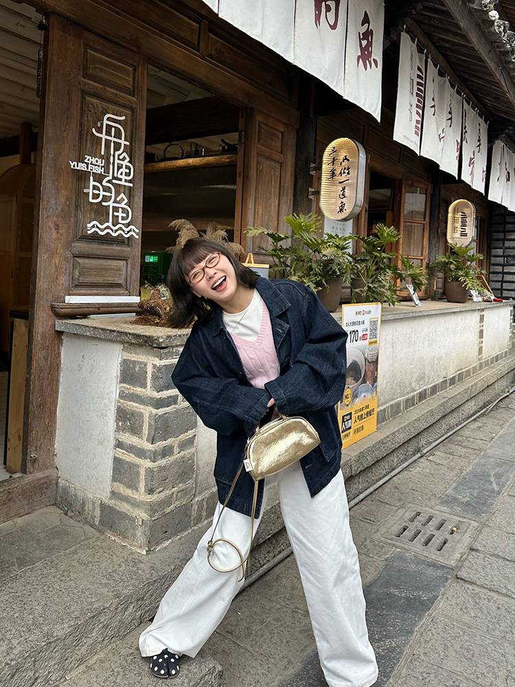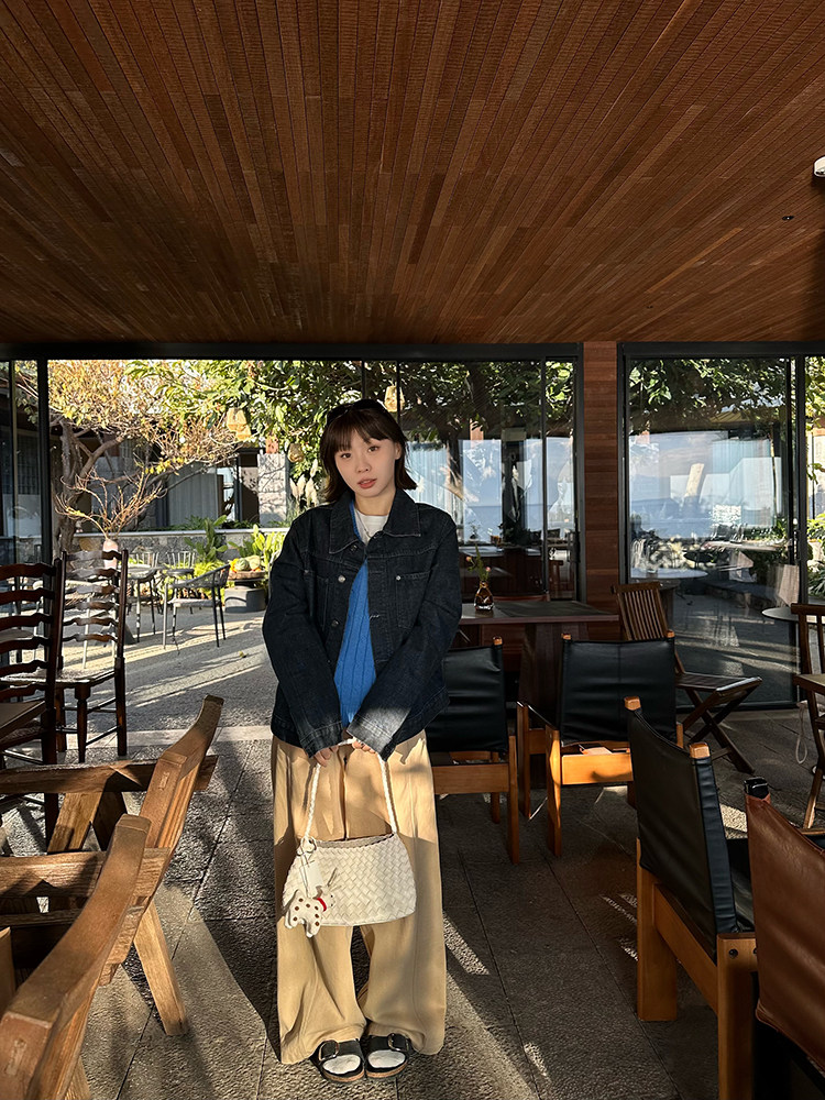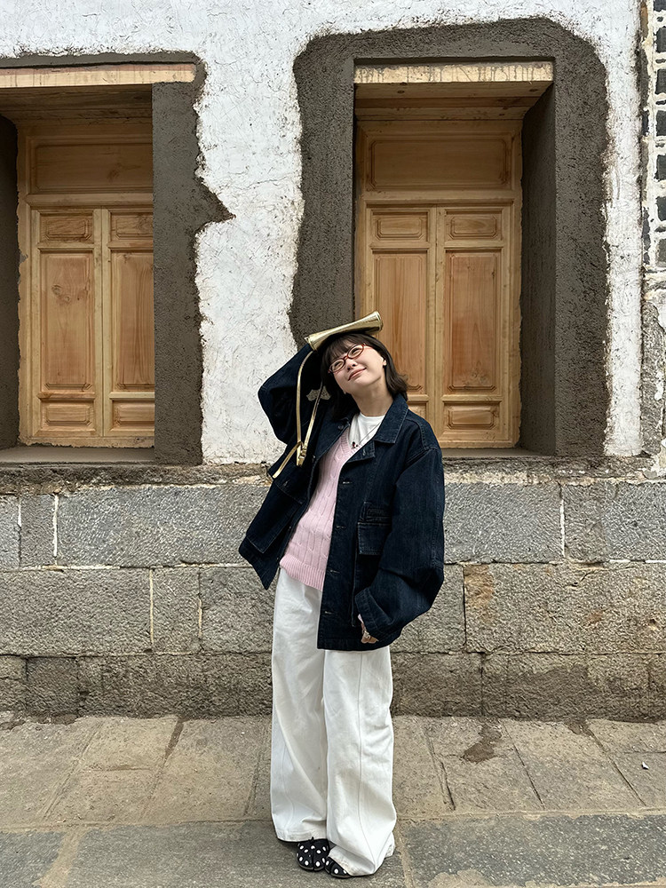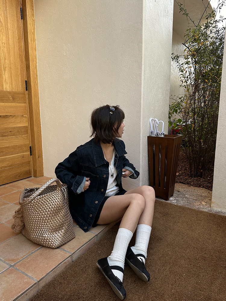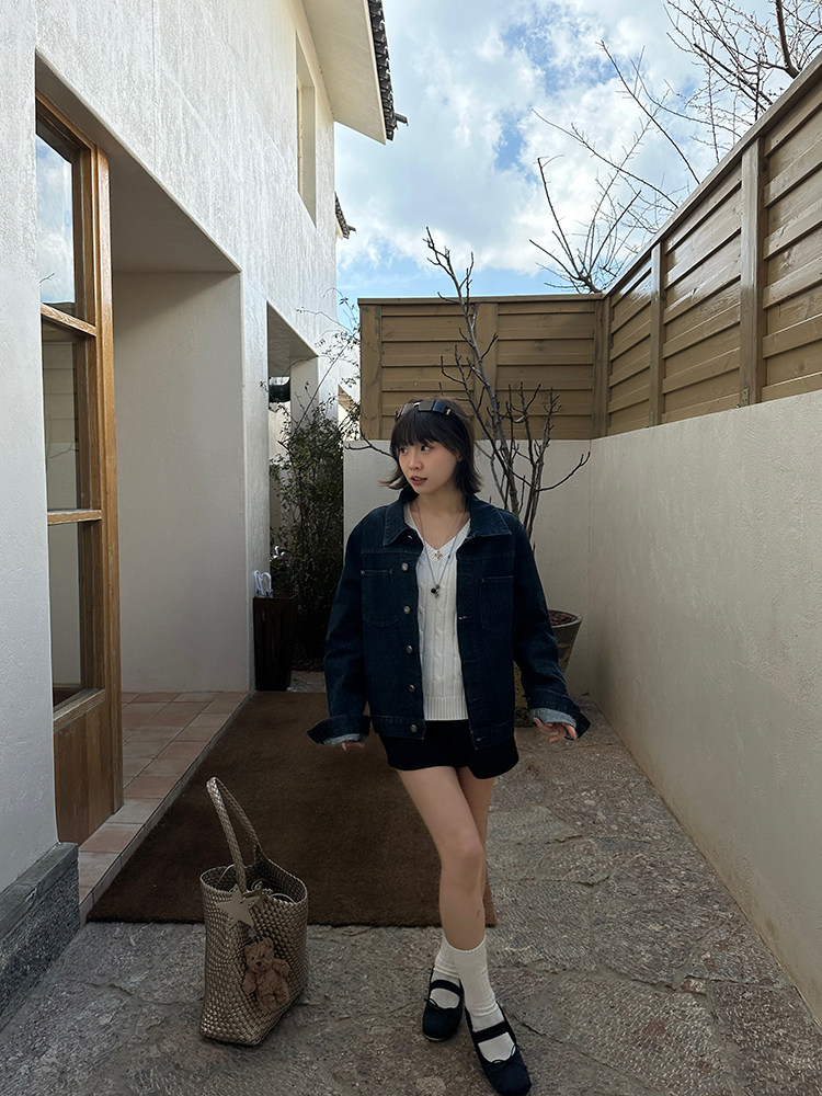 Our2复古宽松廓形原色牛仔外套女2025新款休闲百搭水洗夹克上衣潮