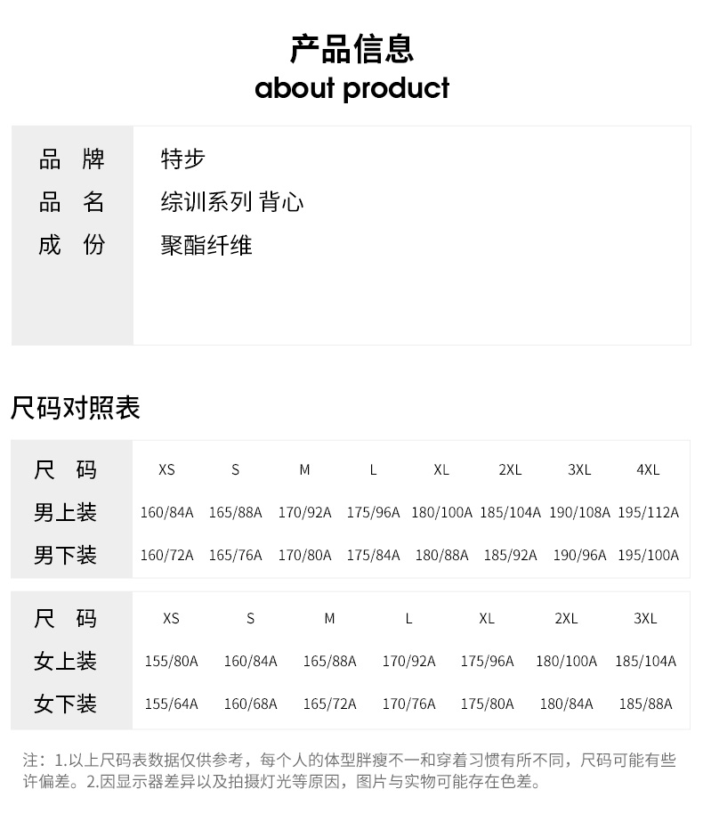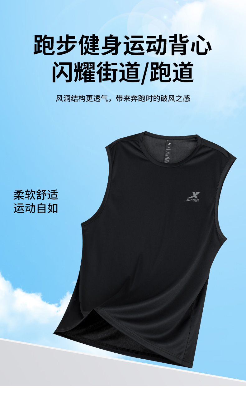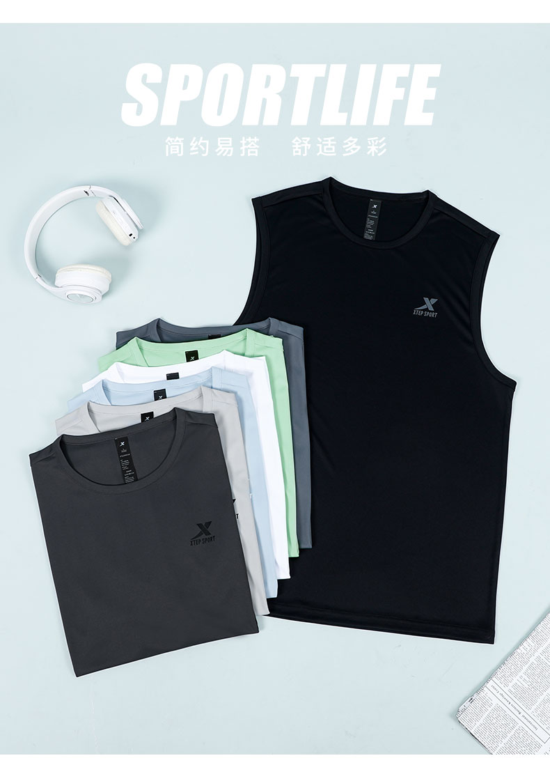 特步速干背心男2025新款夏季男士圆领无袖t恤健身透气训练运动服
