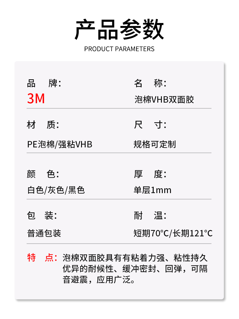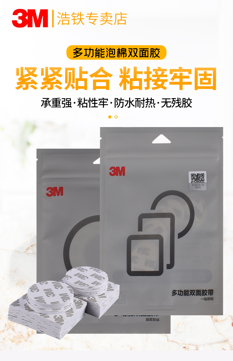 正品3M双面胶强力高粘度汽车专用车用防水耐高温海绵泡沫圆形胶贴