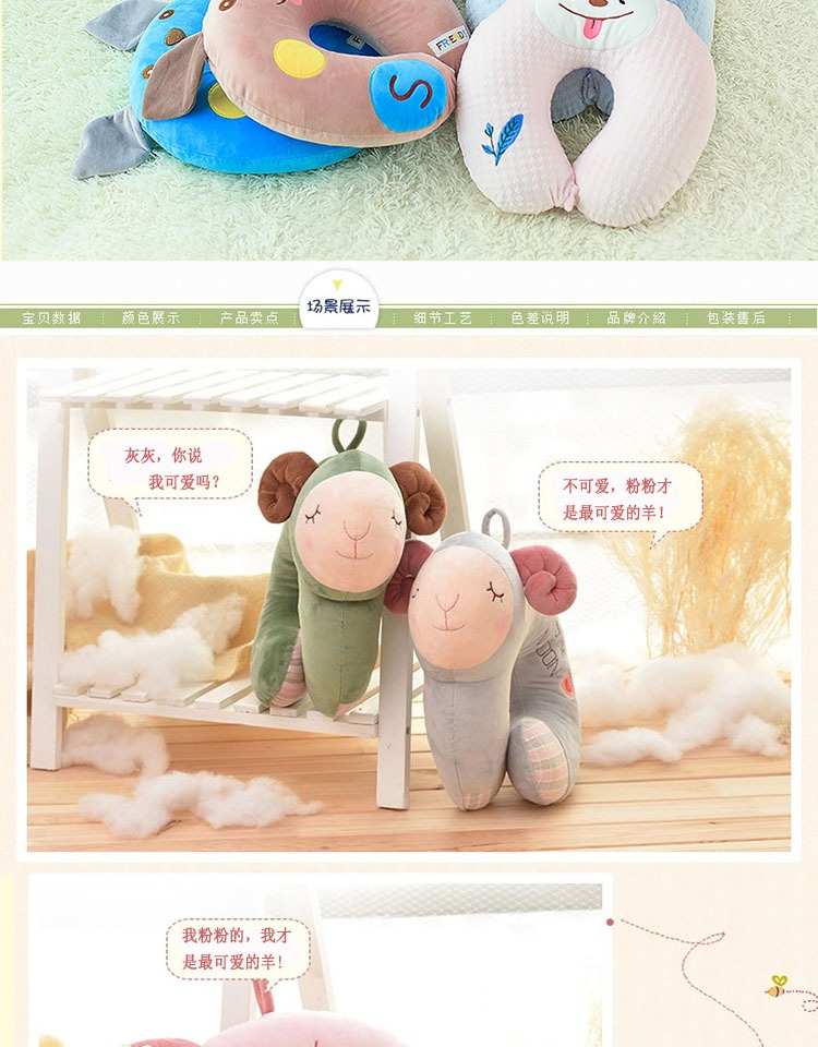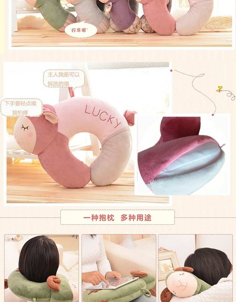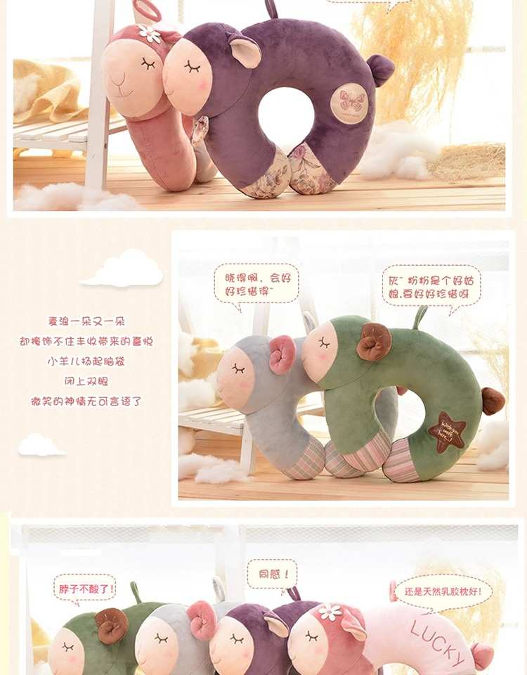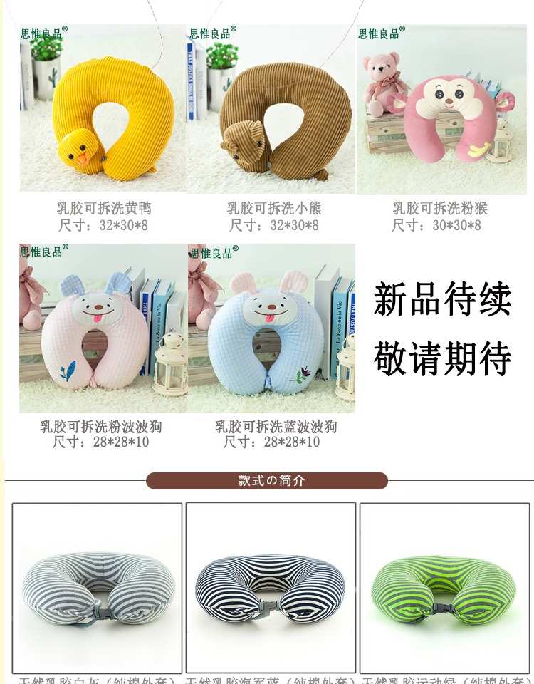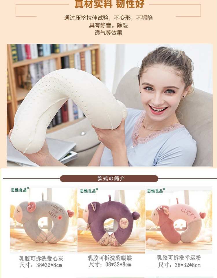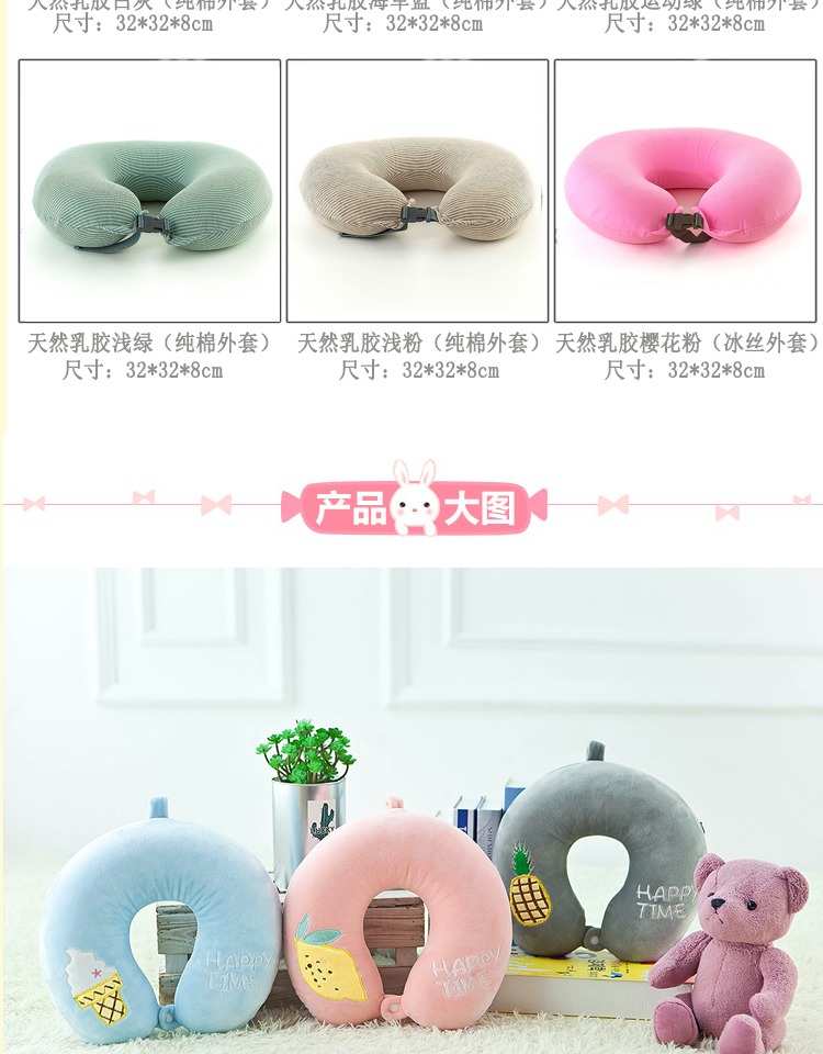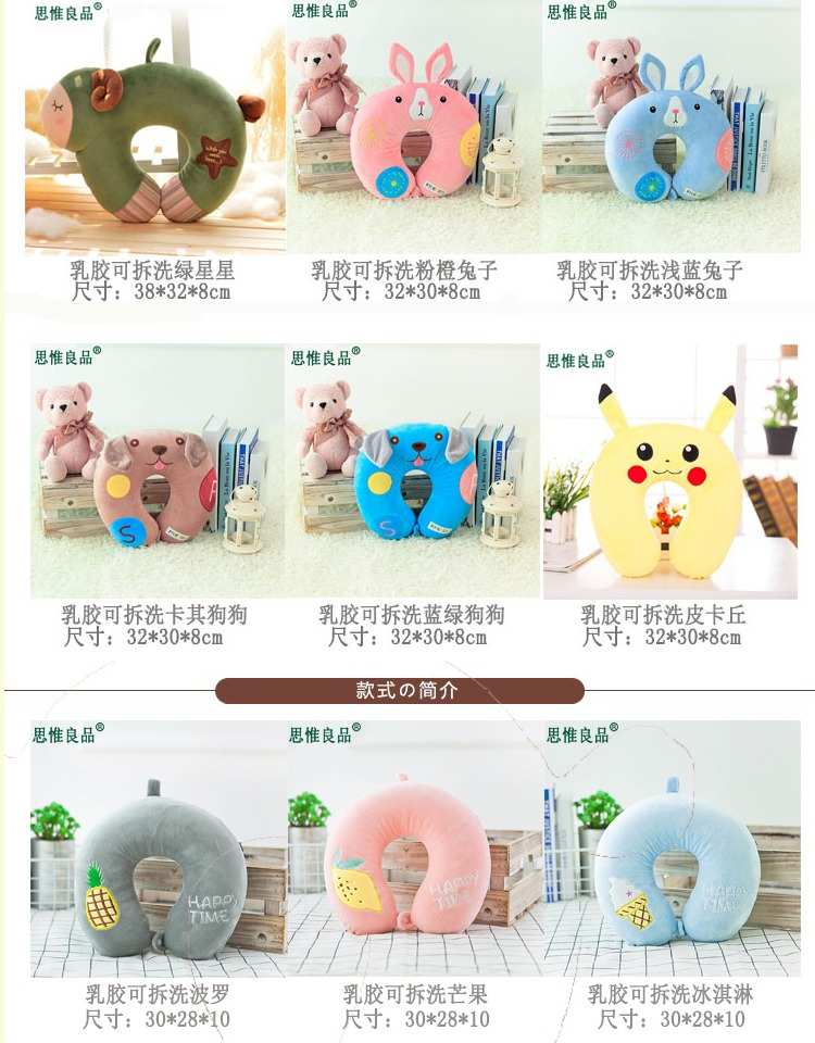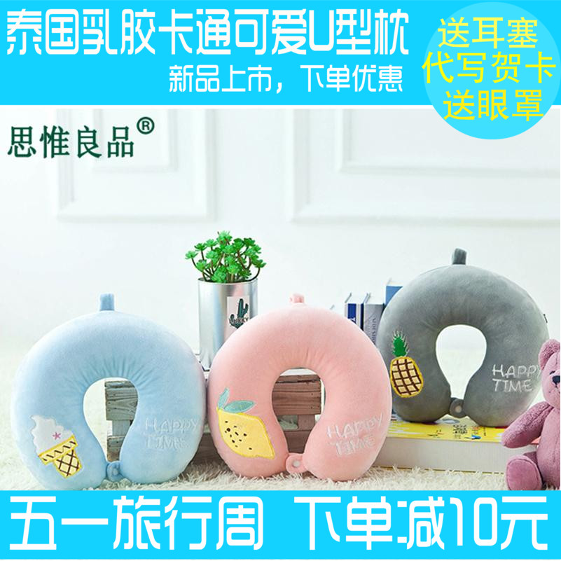泰国乳胶U型枕可爱头护颈枕脖子飞机旅行U枕办公室午睡卡通U形枕