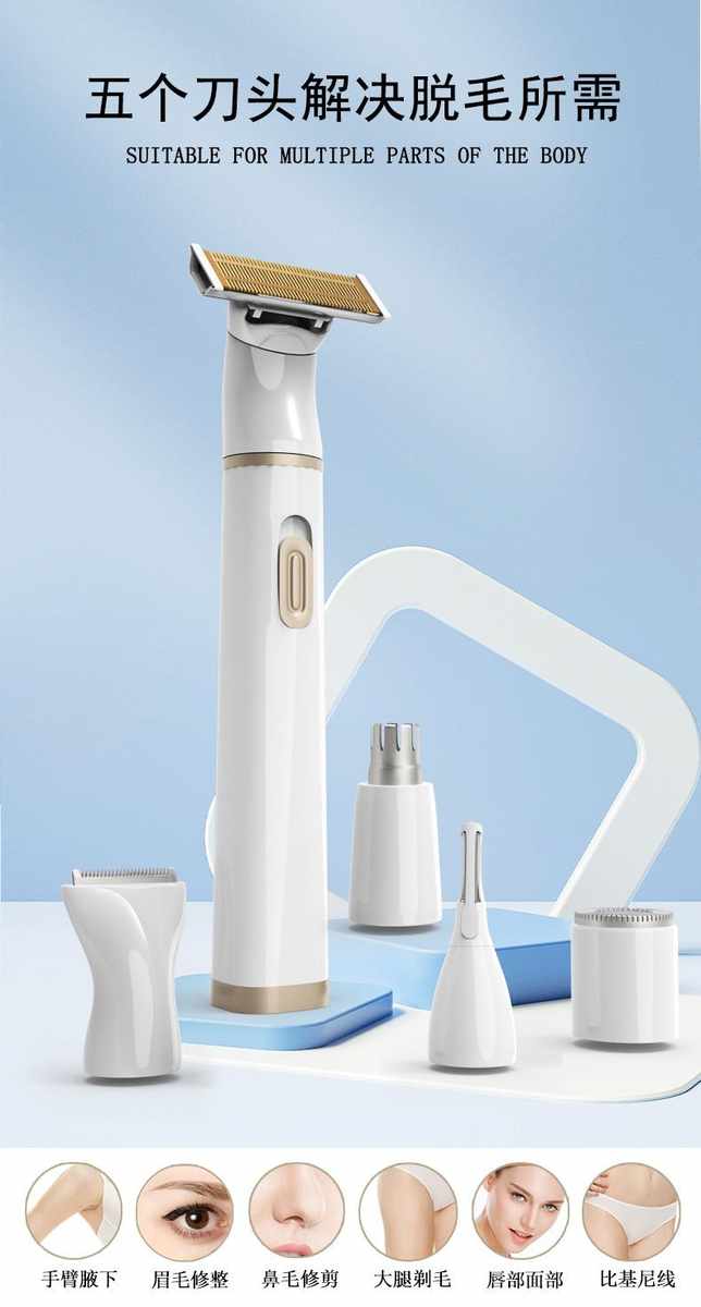USB充电式五合一女士剃毛器 多功能鼻毛修剪器腋毛腿毛刮毛器修眉