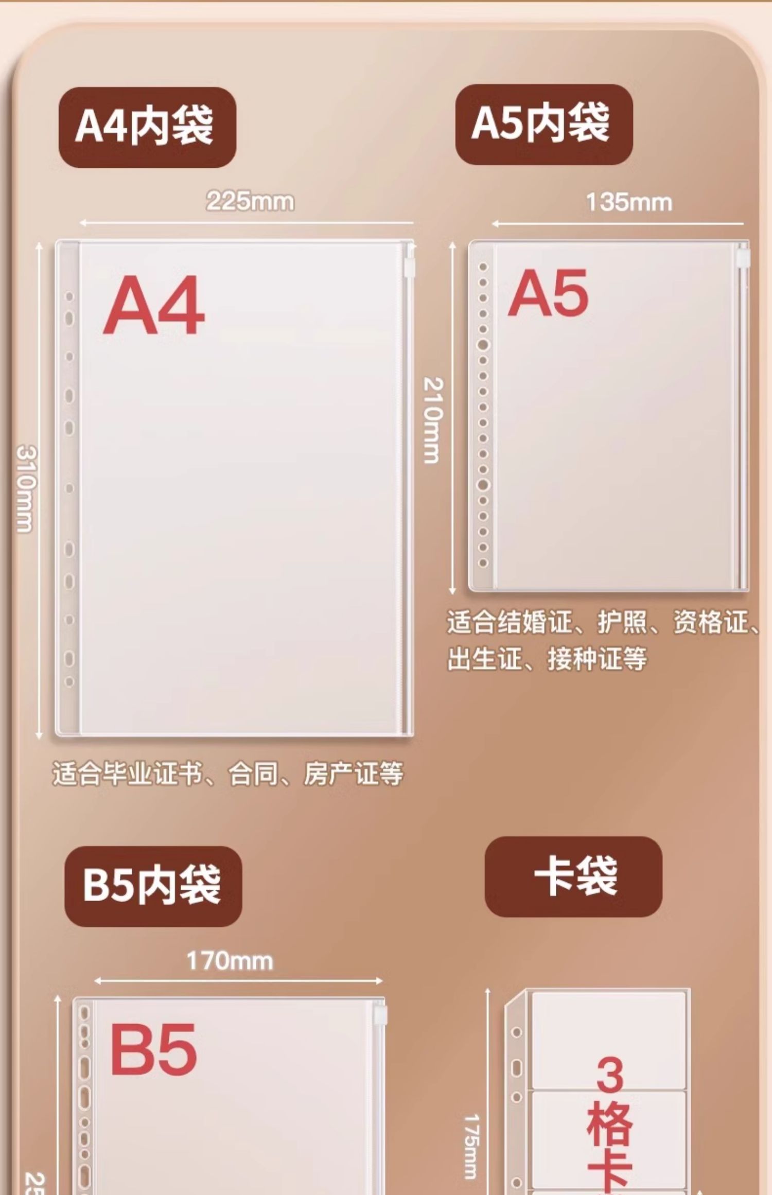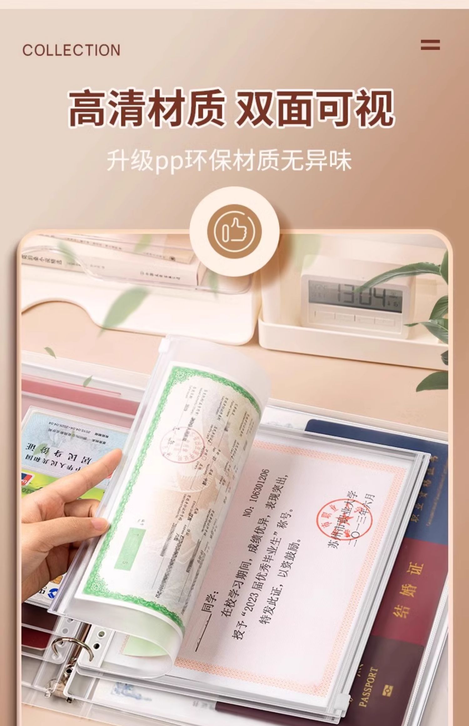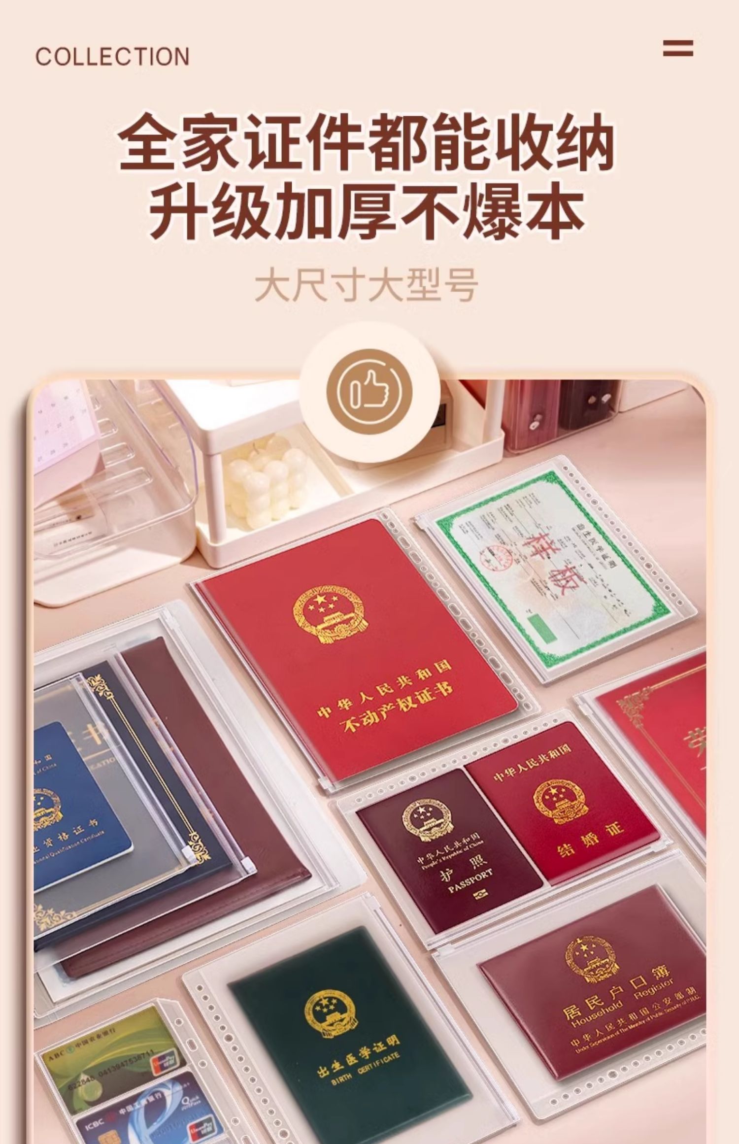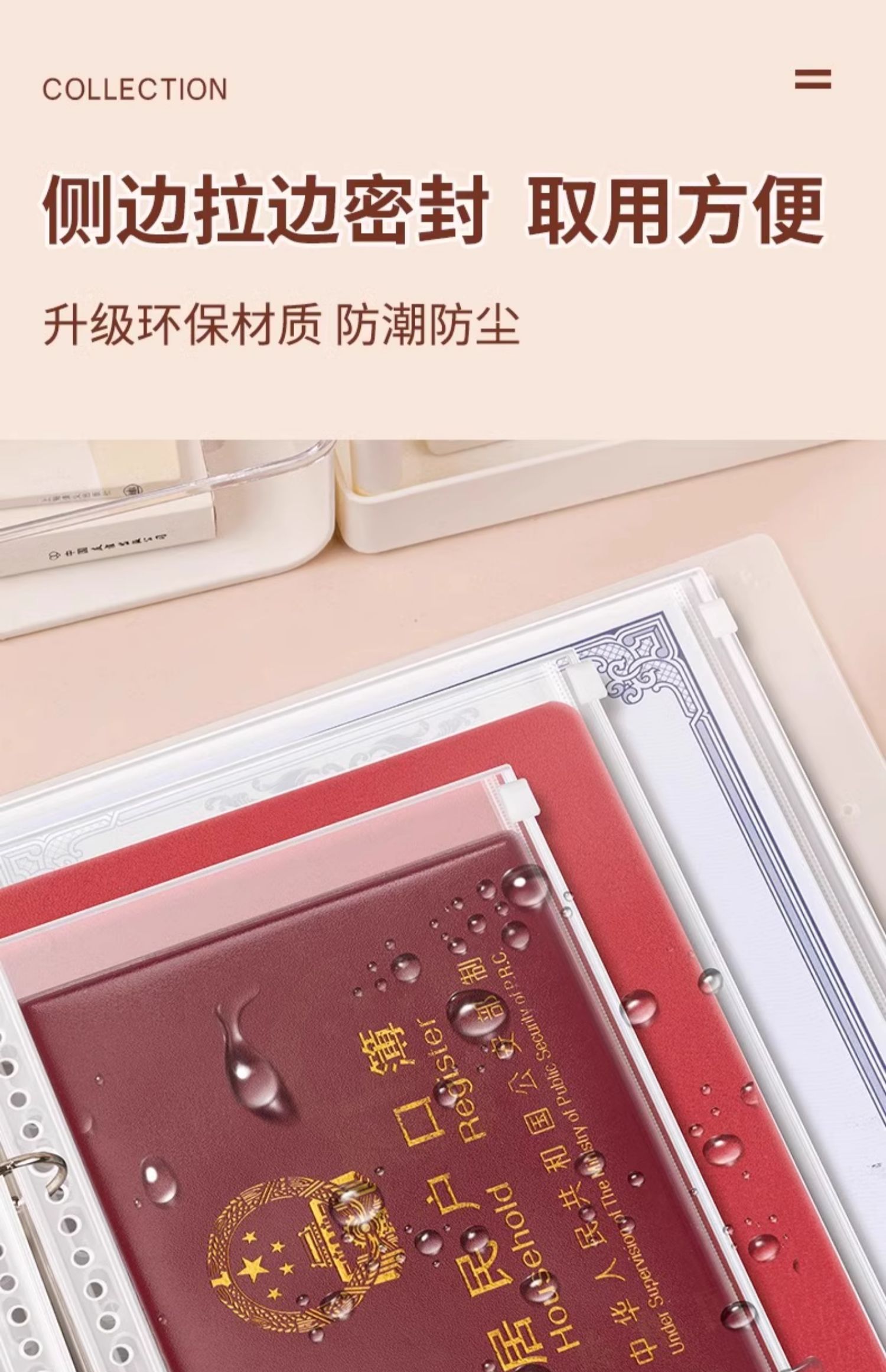 a4家庭证件收纳包活页票据多功能存单夹文件收纳袋产检孕检收纳册文件夹票据收纳册文件袋房本护照卡包保护套