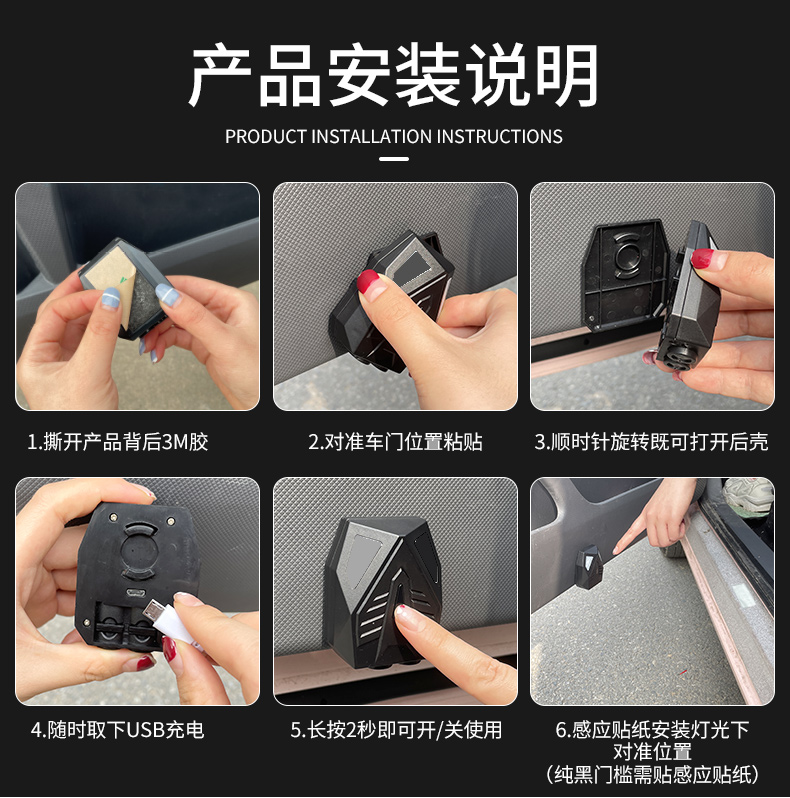 儿童自行车照地灯投影灯电动车装饰夜骑车灯汽车皮卡丘动态迎宾灯