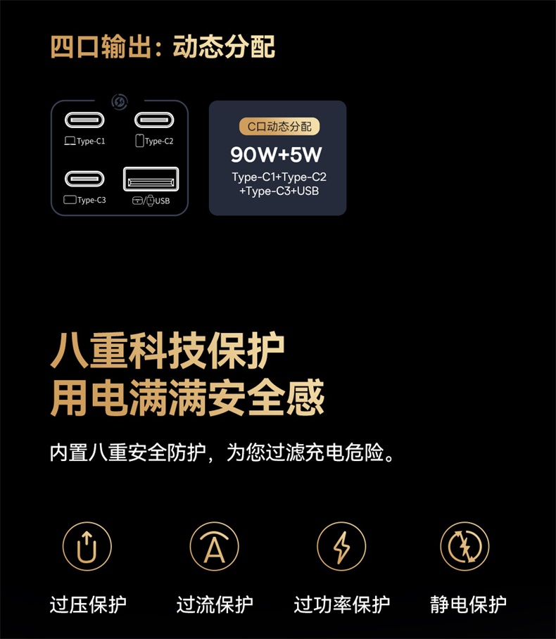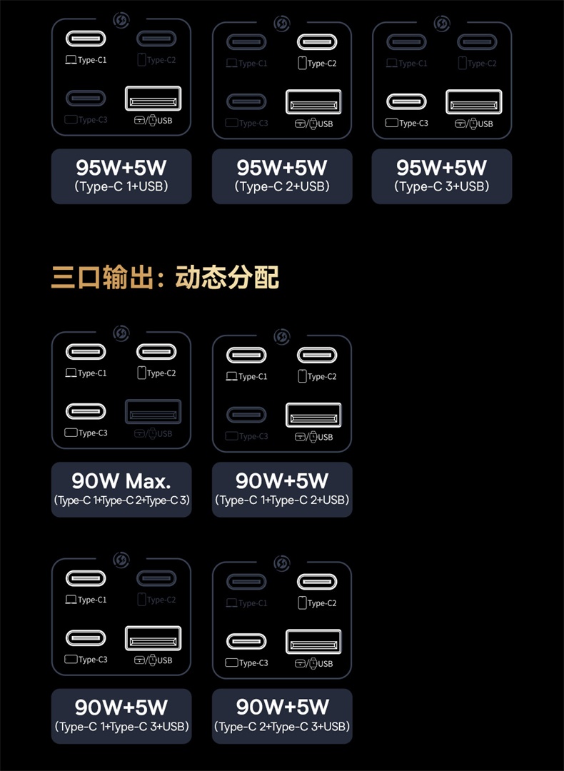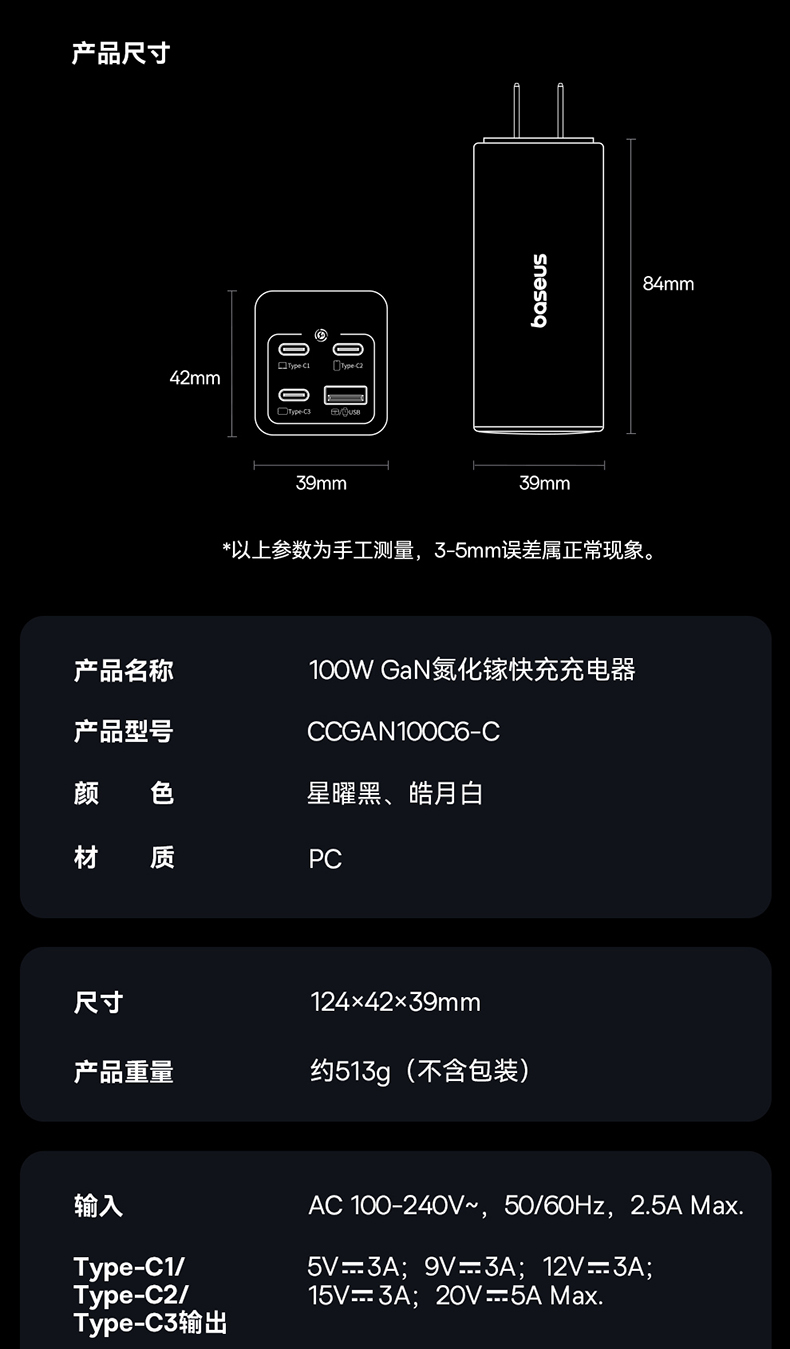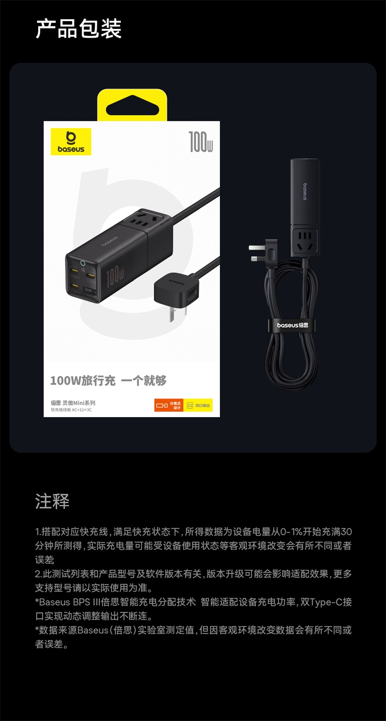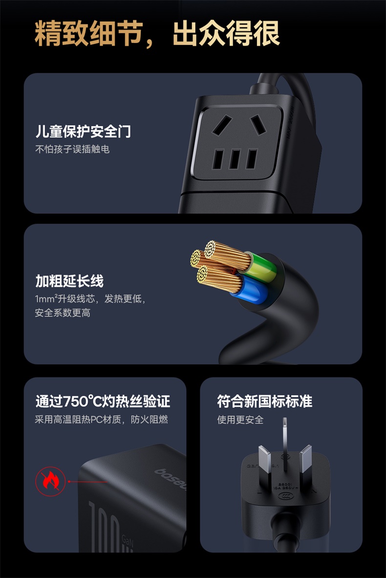倍思桌面多功能usb充电插座100W氮化镓插线板分离式PD快充头适用苹果iPhone15Pro华为手机macbook笔记本电脑