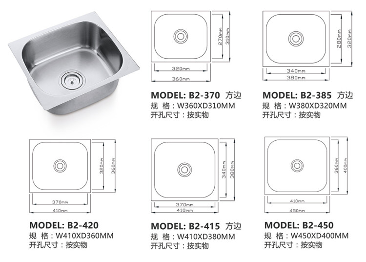柔美304不锈钢厨房单盆水槽洗碗洗菜洗手盆台下盆小号手工盆一体