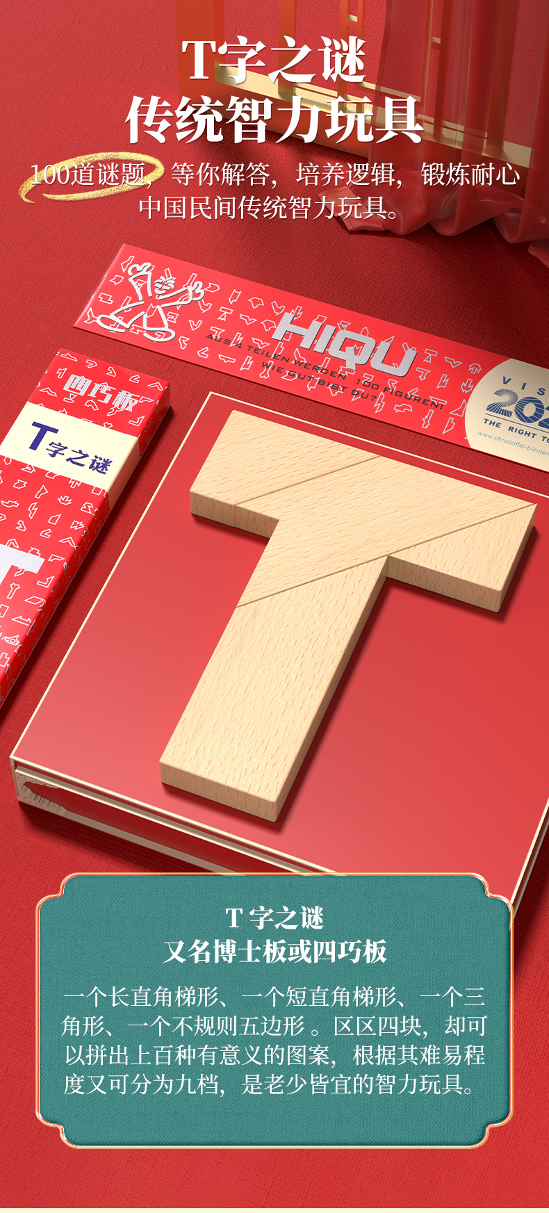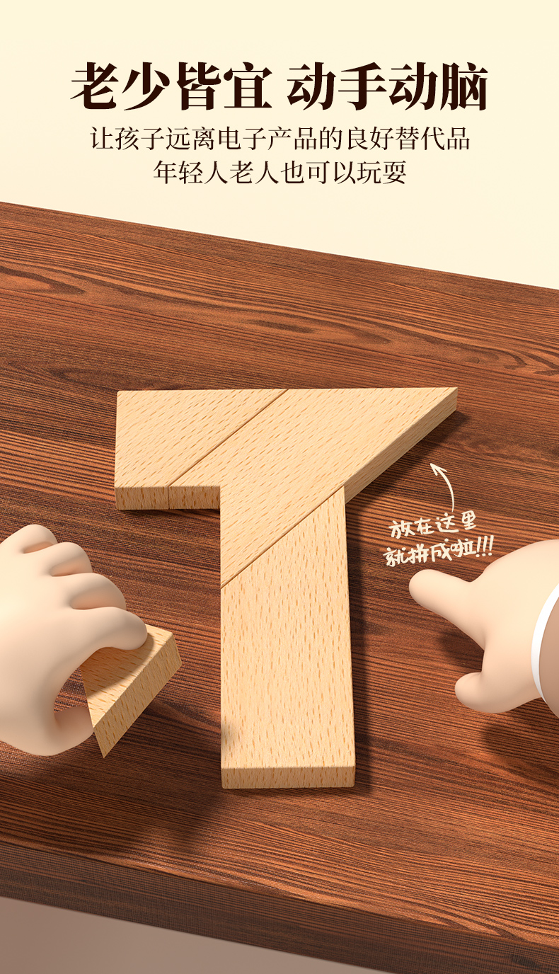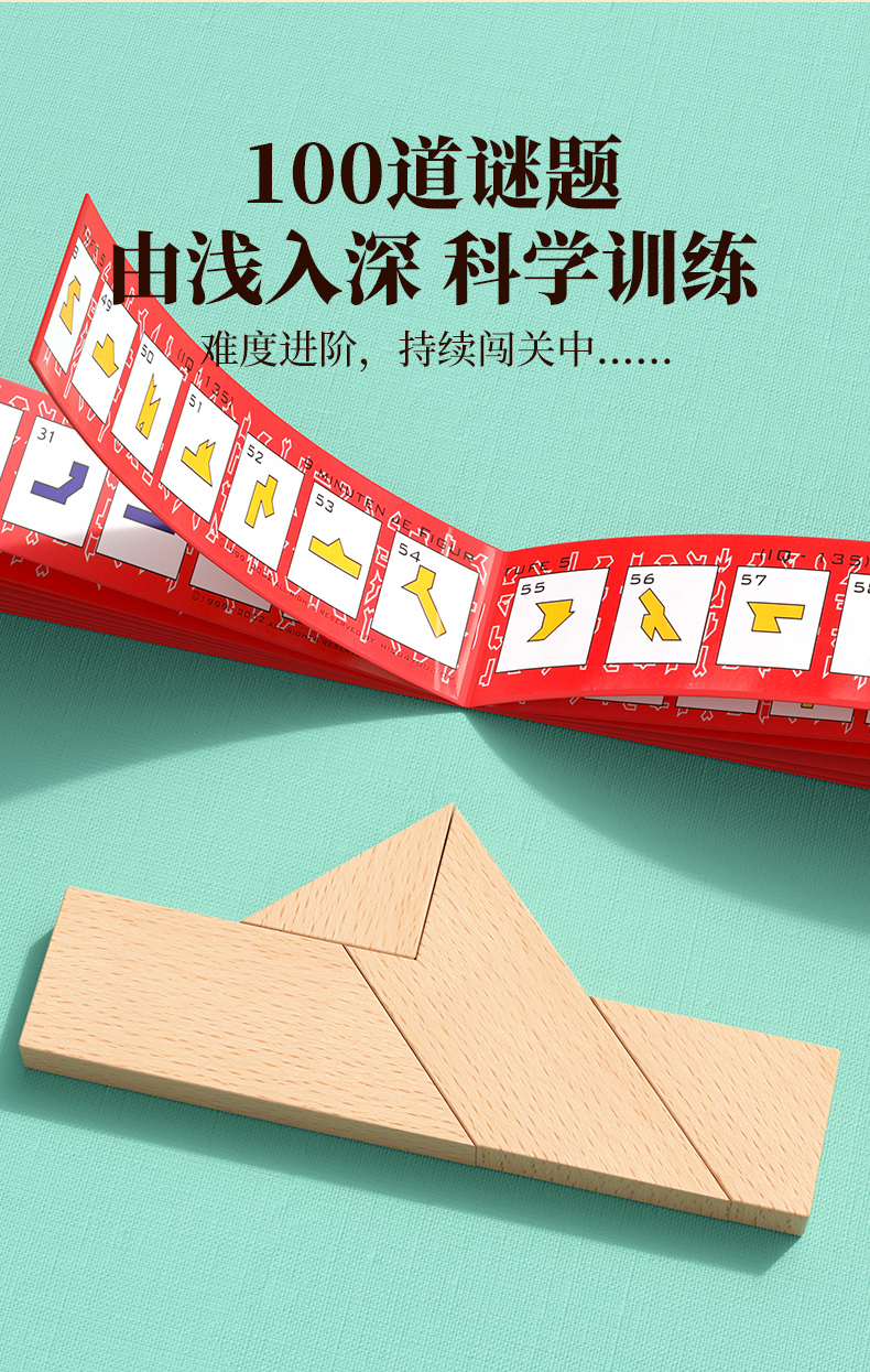 T字之谜益智玩具四巧板智力拼图榉木块小学生儿童拼板t型木制动脑