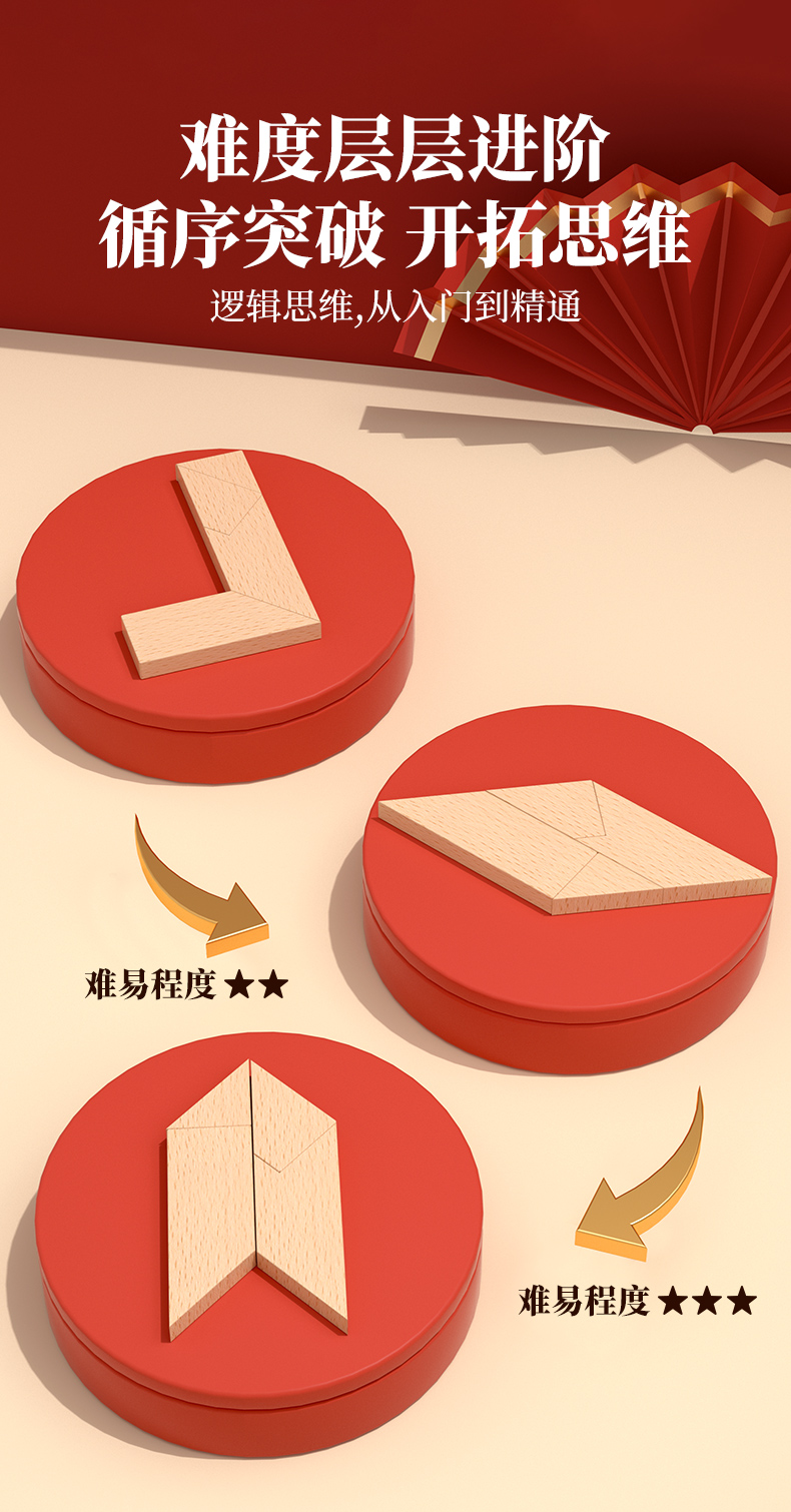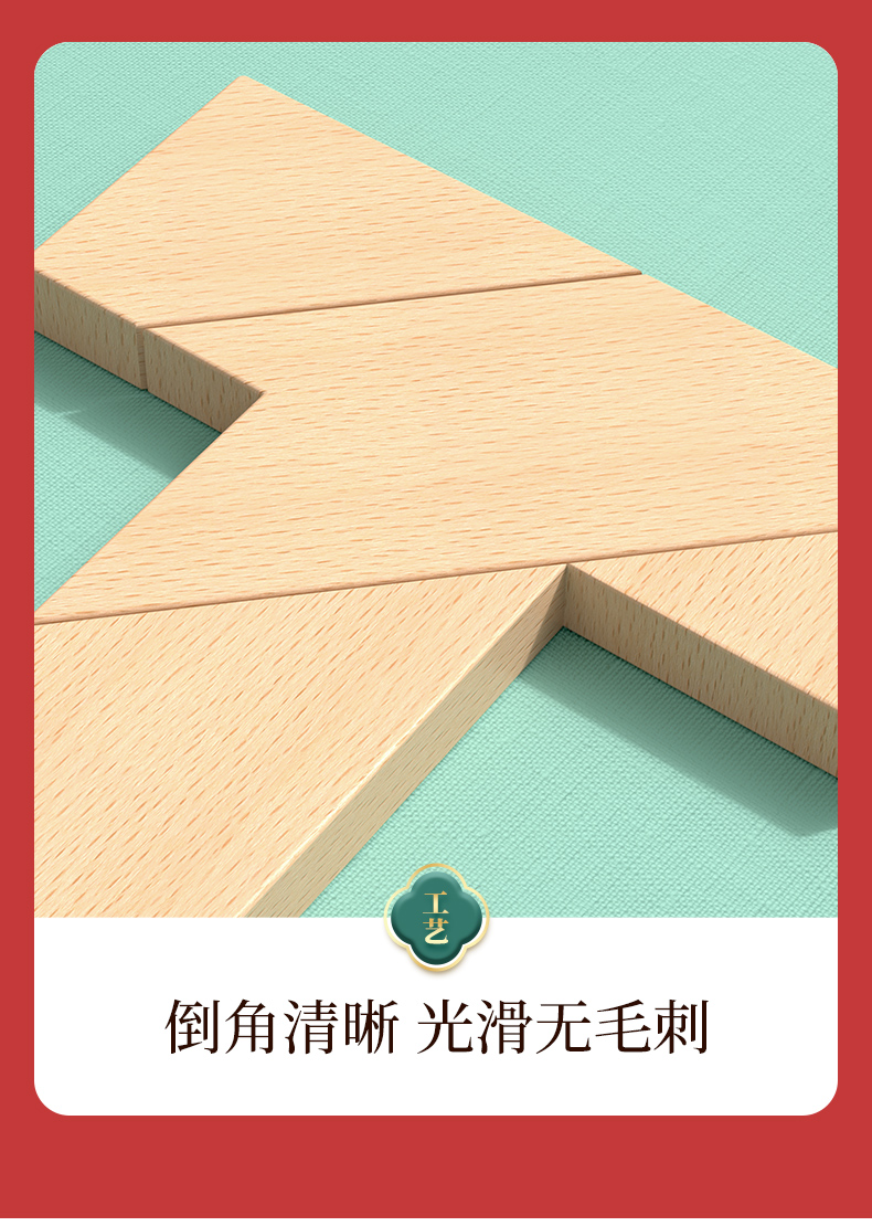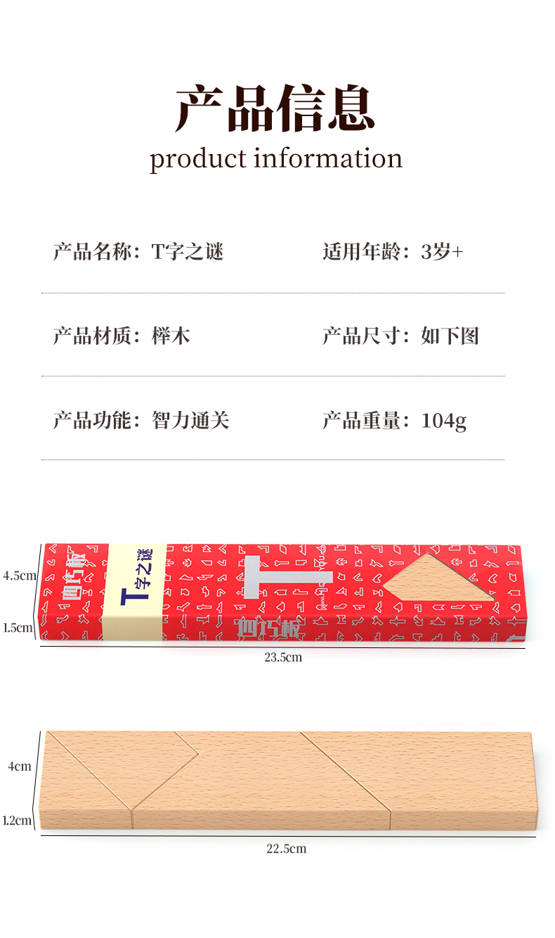 T字之谜益智玩具四巧板智力拼图榉木块小学生儿童拼板t型木制动脑