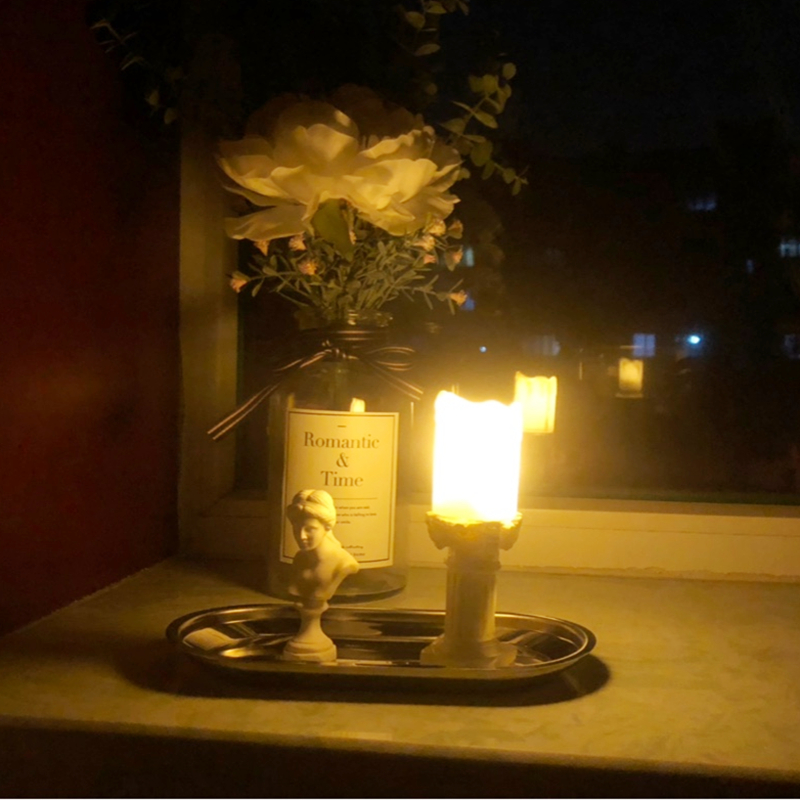 ins风罗马烛台 仿真蜡烛小夜灯复古文艺温馨桌面书桌摆件卧室装饰