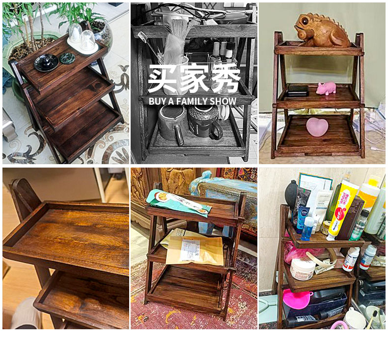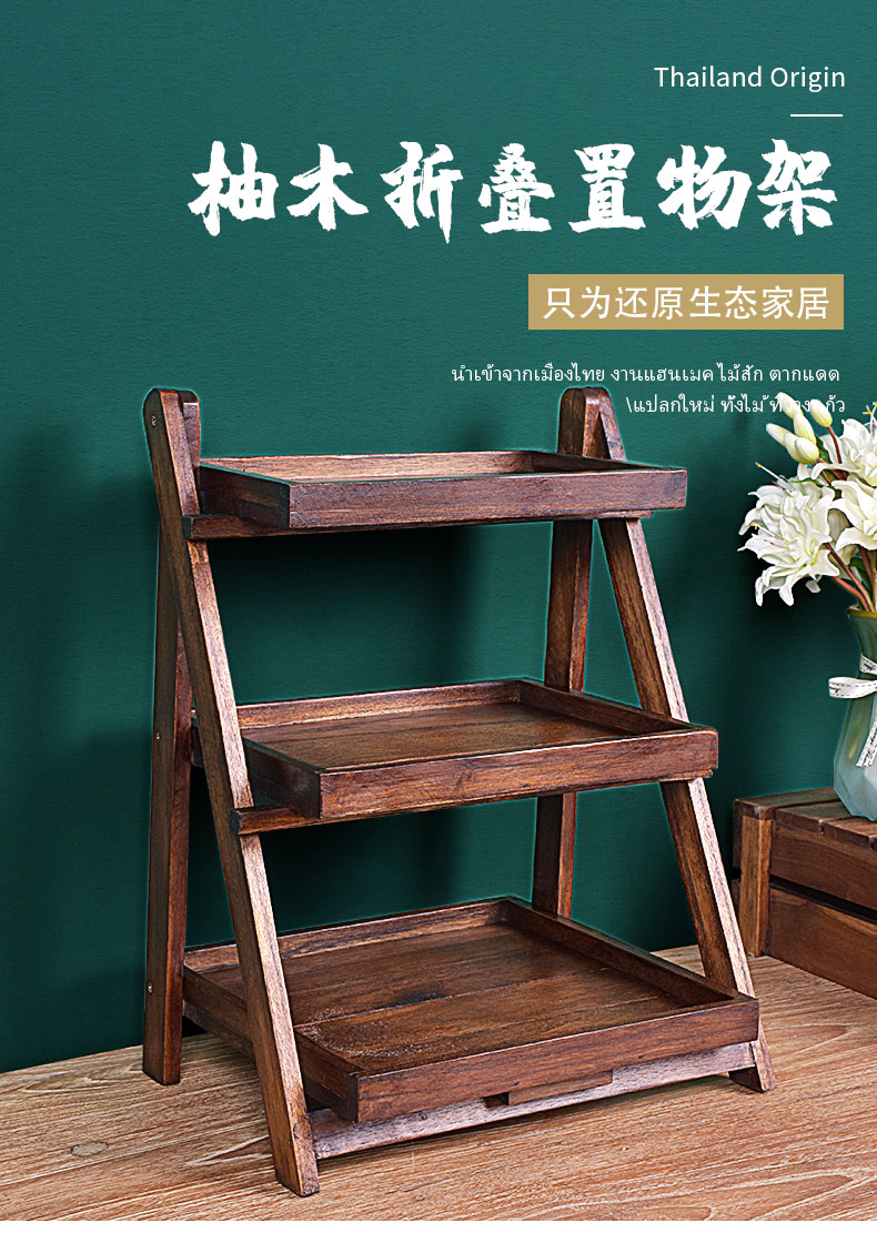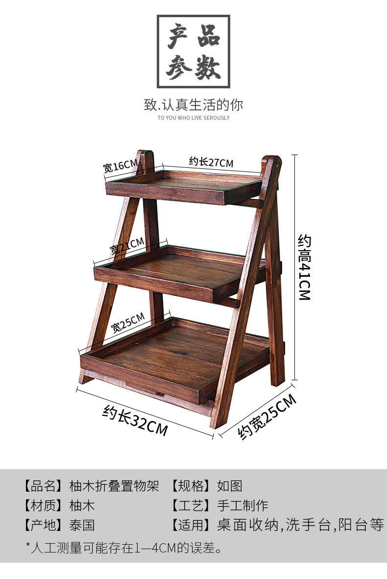 柚木折叠置物架免安装浴室卫生间厨房落地木质收纳架家用实木架子