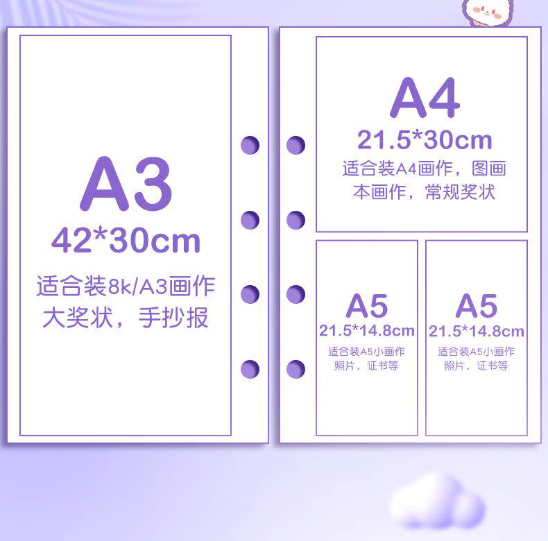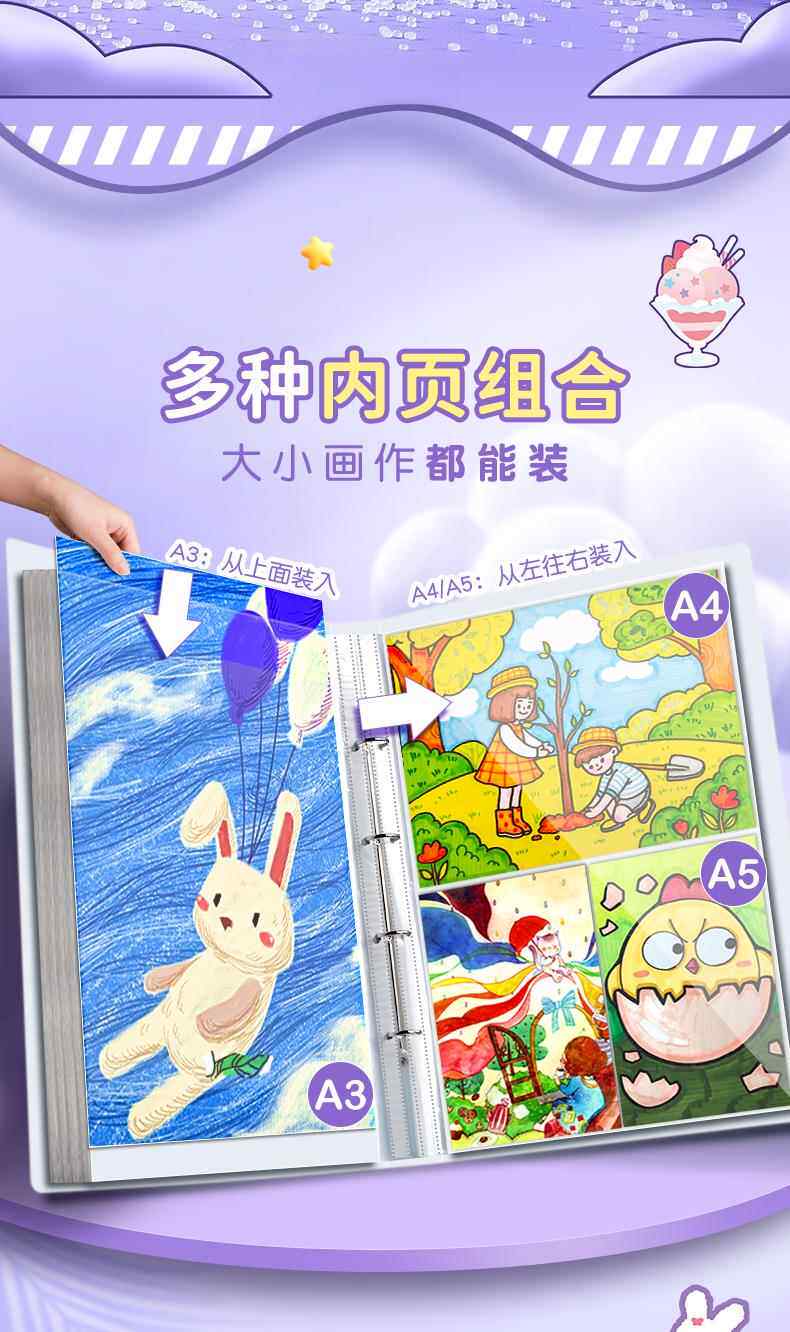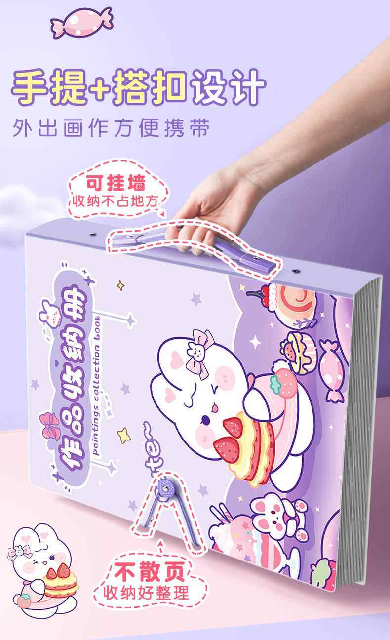 a3画册收纳册儿童画画海报收纳装绘画袋子活页8k开男孩女孩幼儿园手工美术作品奖状收集册画夹画作文件收藏夹