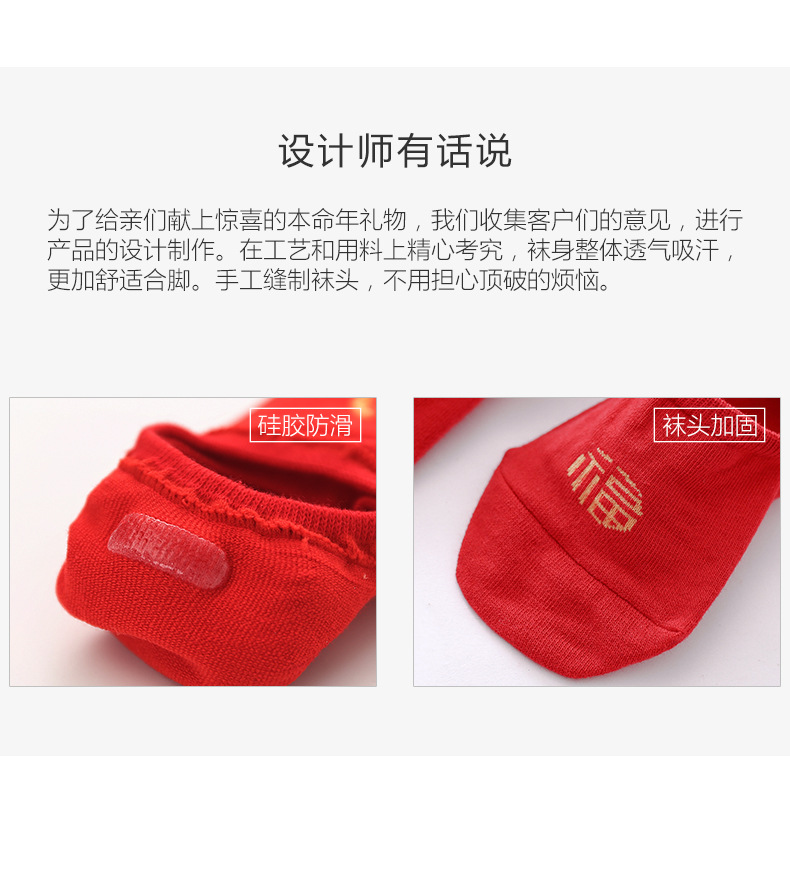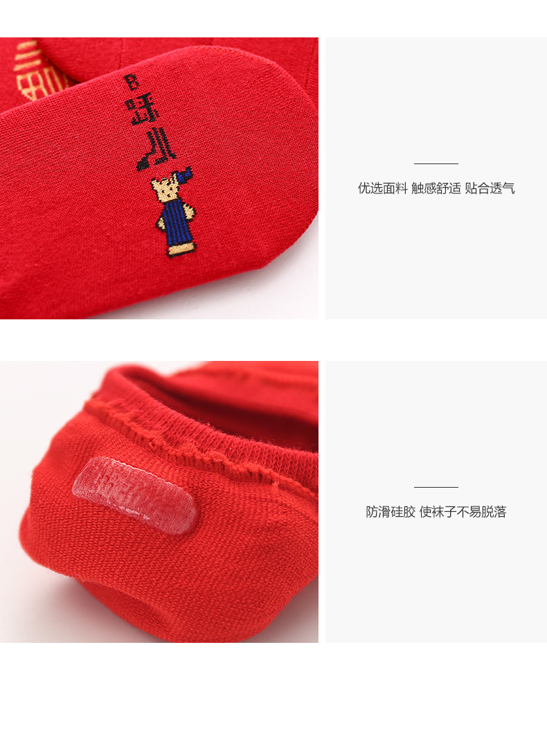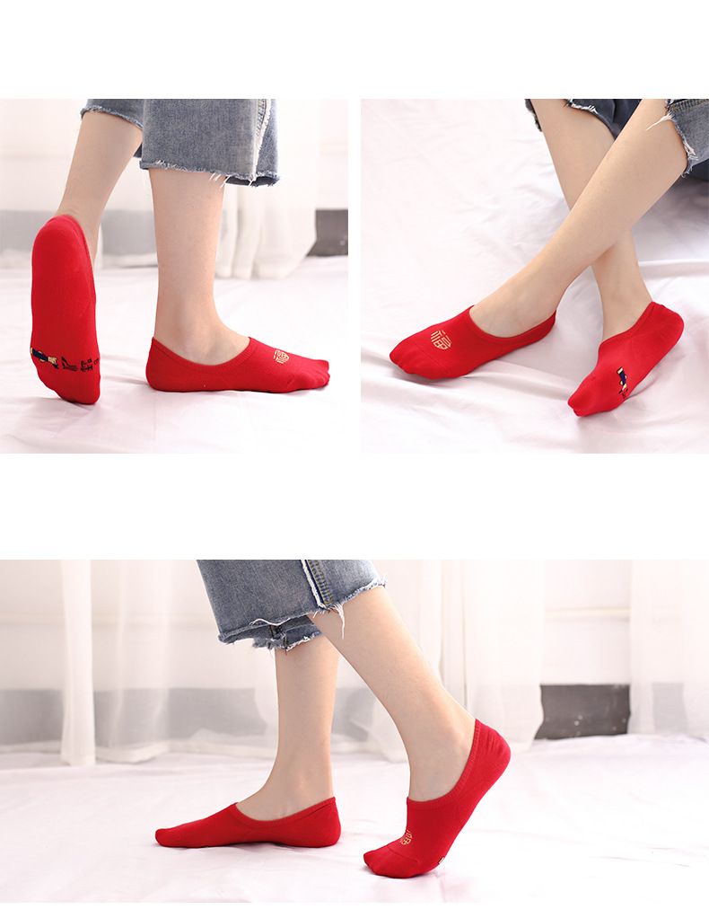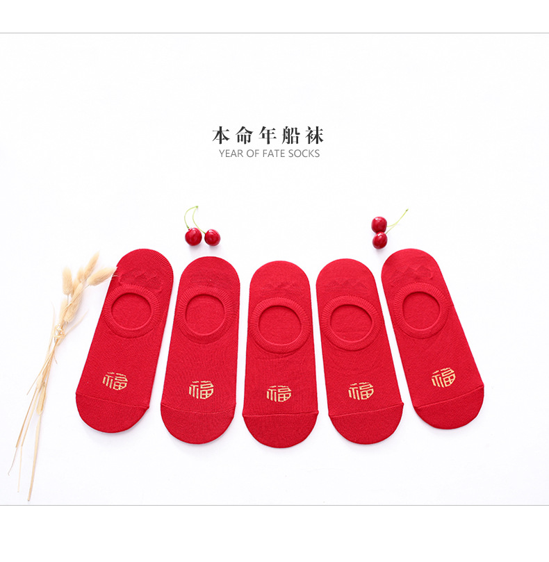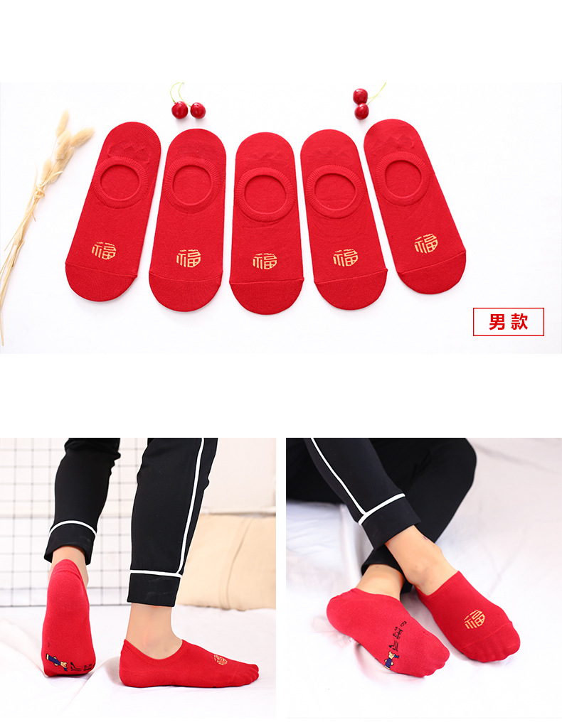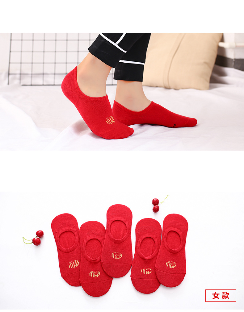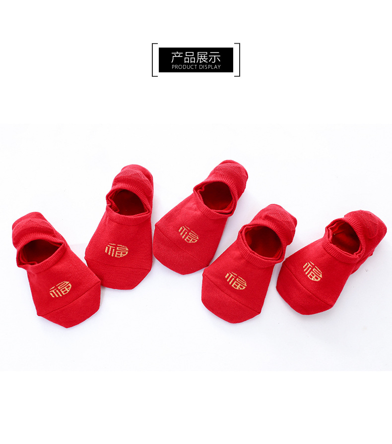 本命年大红色船袜情侣一对男款女士礼物属蛇年结婚纯棉隐形短袜子
