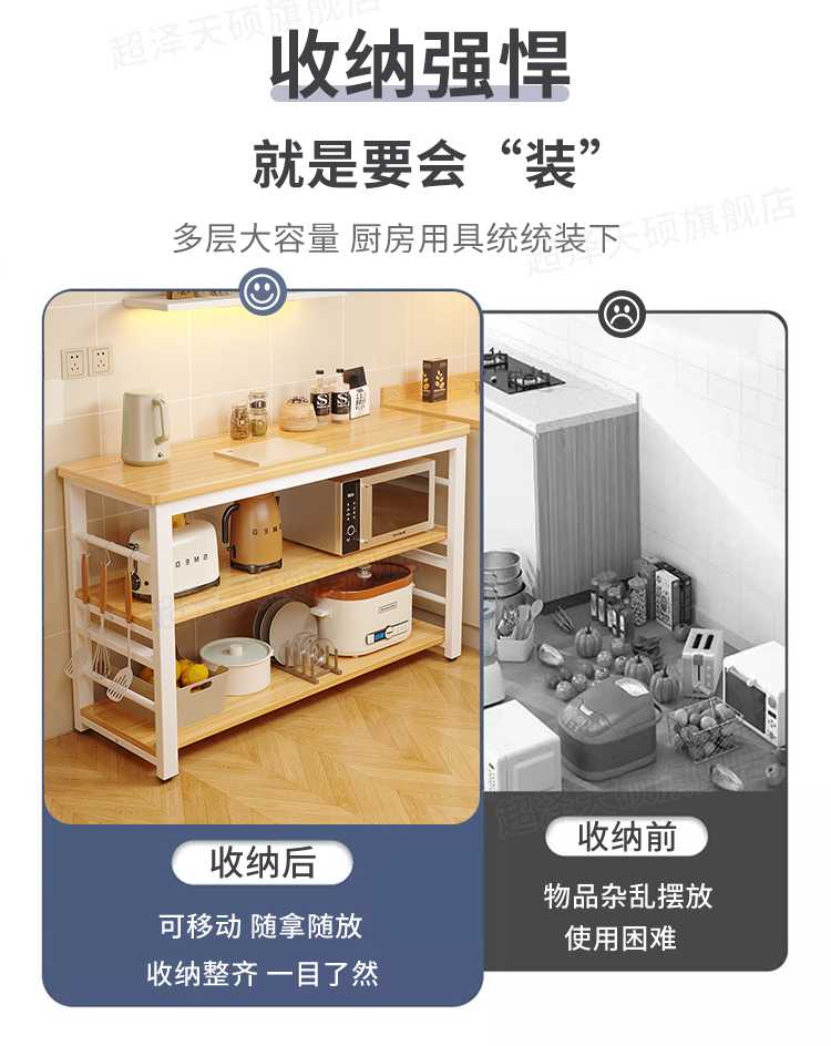 厨房置物架落地多层家用多功能切菜桌子工作台窄储物边柜收纳架子