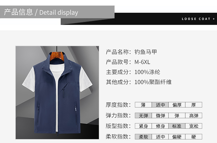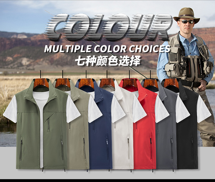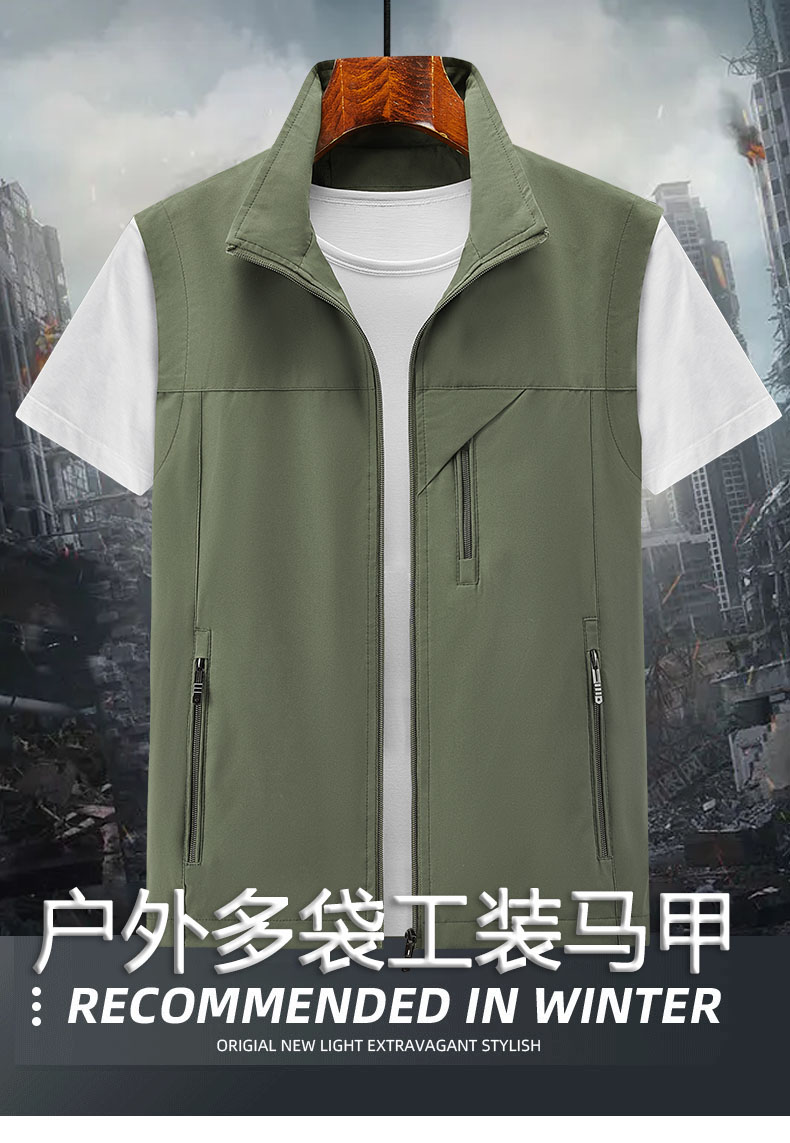 多袋马甲男户外中老年秋季薄款钓鱼宽松定制背心工装老年人工作服