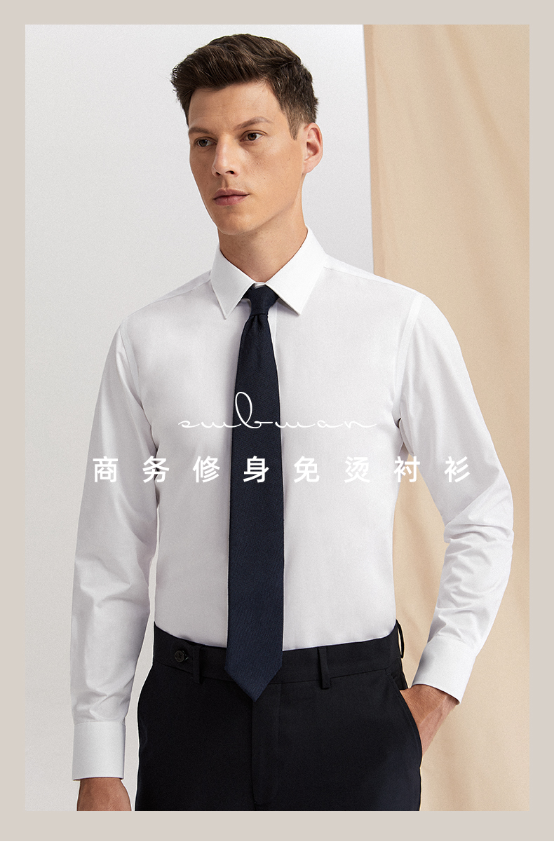 十米布衬衫男长袖商务修身免烫韩版职业正装工作上班西装白衬衣男