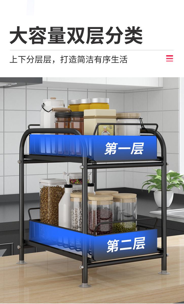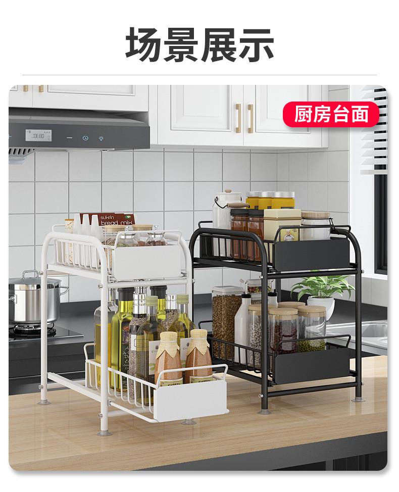厨房下水槽置物架橱柜内收纳架家用台面抽拉式浴室台下推拉整理架