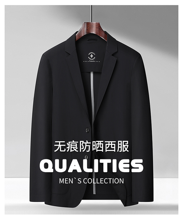 皮尔卡丹防晒冰丝华夫格男薄款西装外套透气弹力无痕商务百搭西服