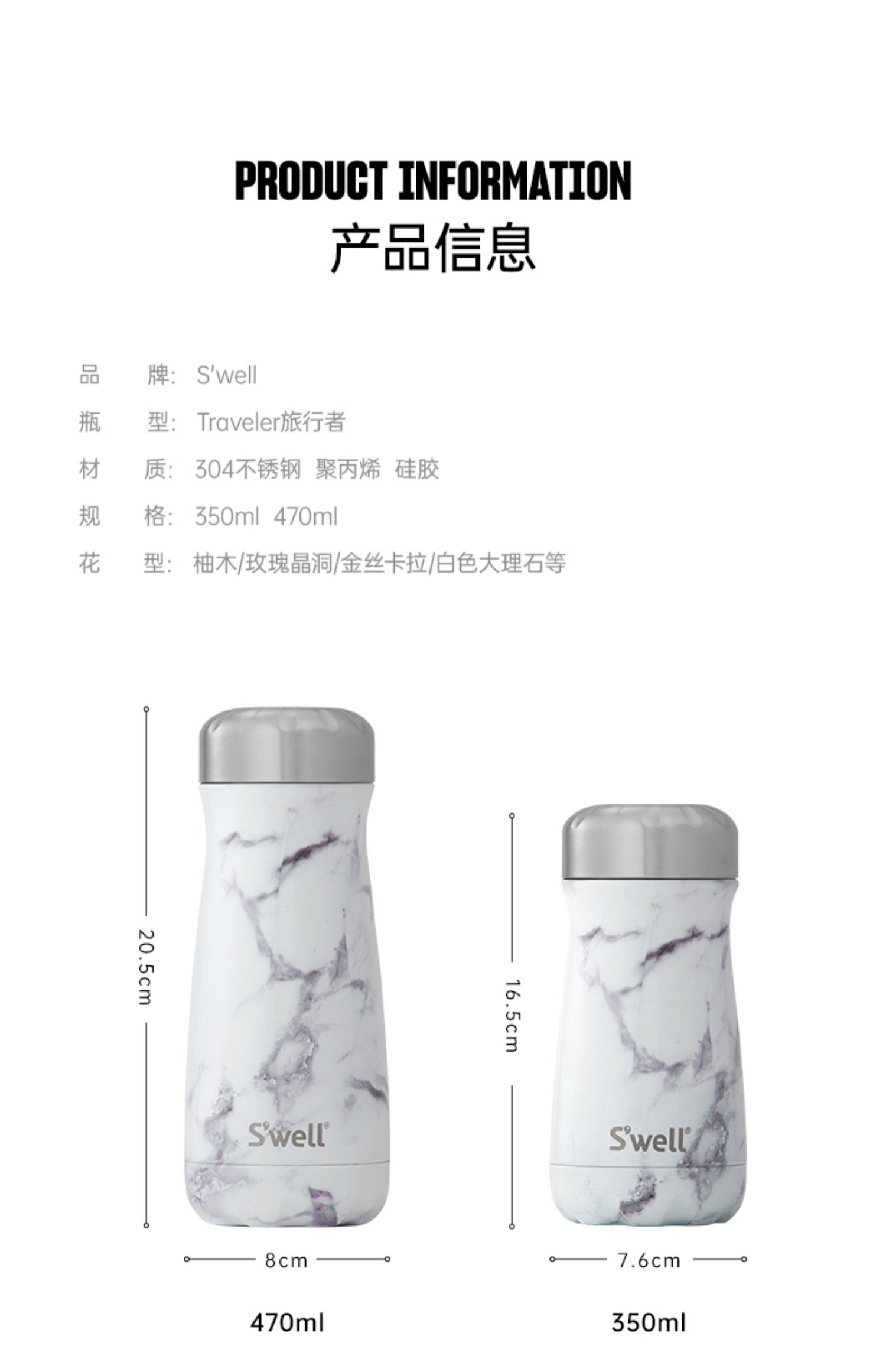 Swell保温杯大肚杯大容量大水杯子旅行随手男女生不锈钢便携高端