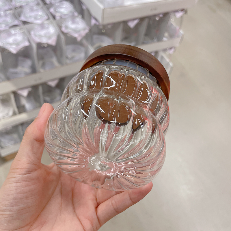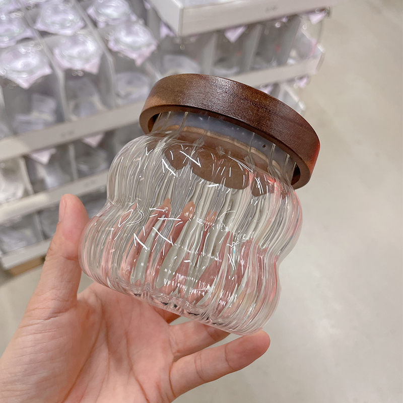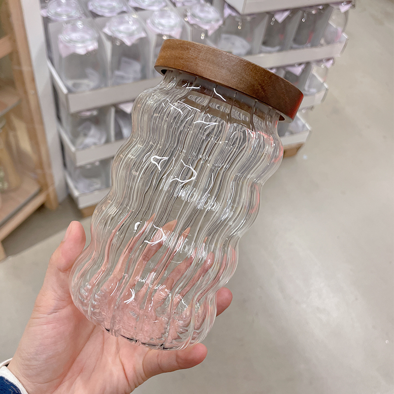 高硼硅玻璃密封罐波纹螺纹储物罐相思木带盖简约咖啡豆杂粮收纳瓶