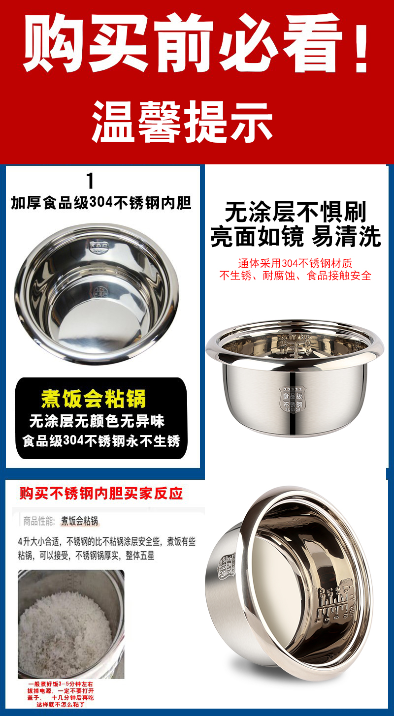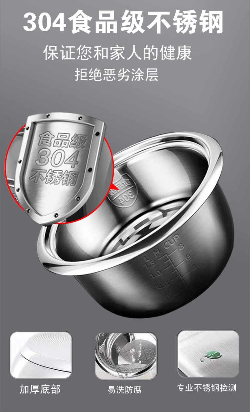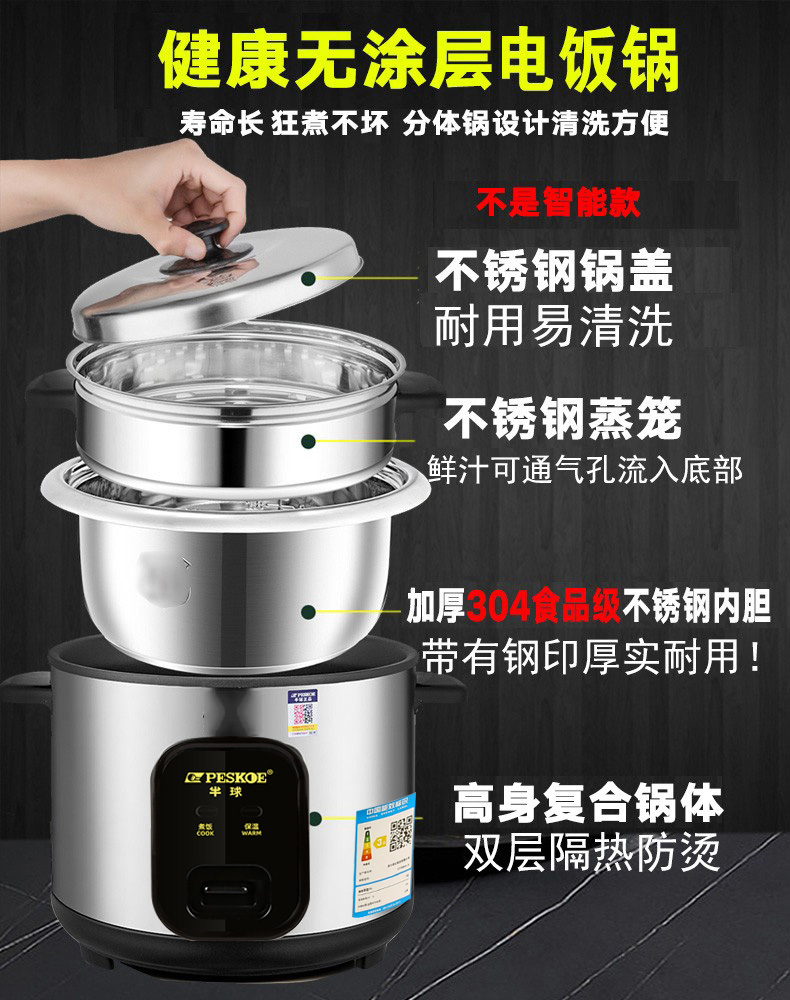 半球正品304不锈钢电饭锅多功能2人3-4-5-6L无涂层电饭煲老式家用