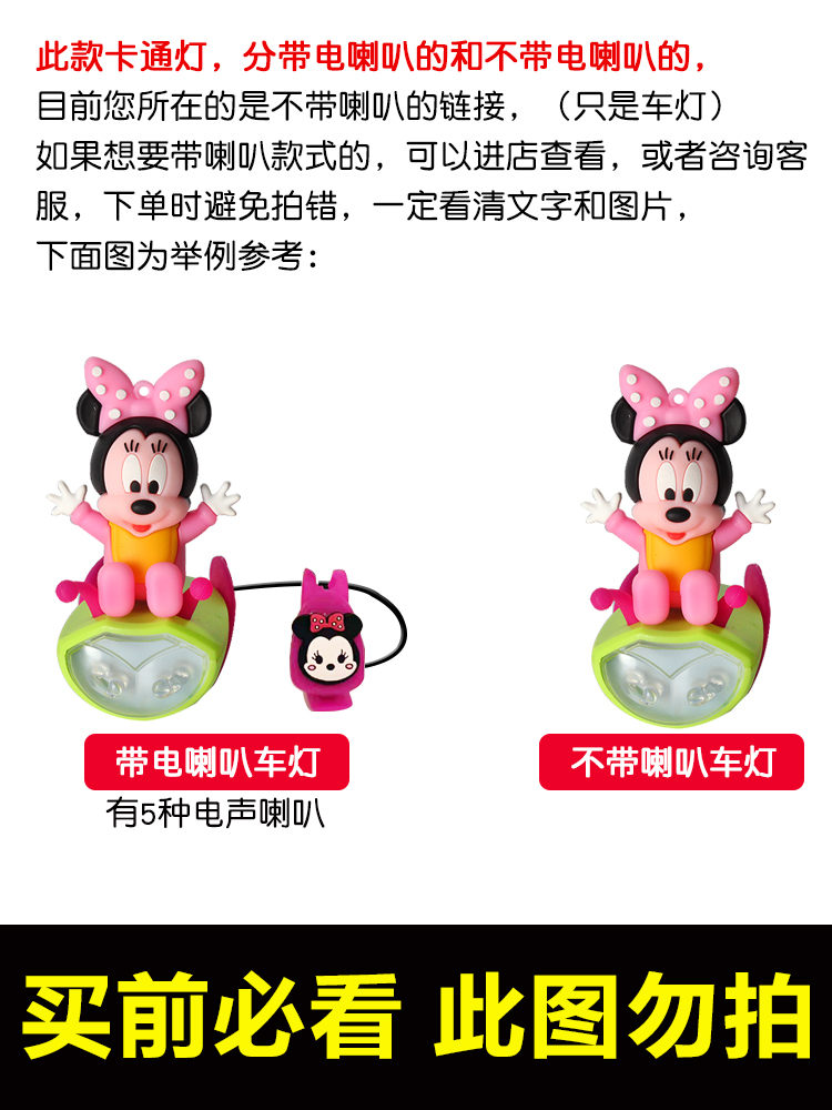 充电车灯夜行灯童车照明车前灯儿童自行车平衡车卡通米奇米妮蝙蝠