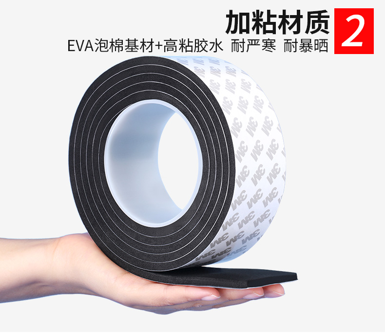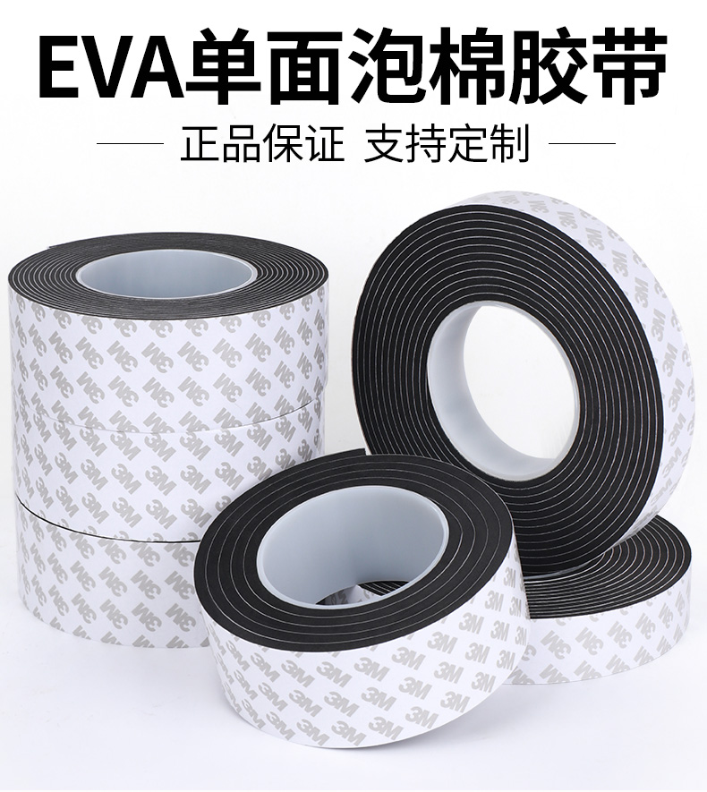 3M单面胶贴强力汽车用EVA黑色海绵泡棉加厚泡沫胶垫减震防滑贴纸