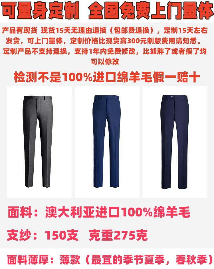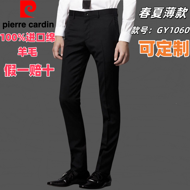 皮尔卡丹100%绵羊毛夏季薄款商务正装修身上班结婚礼男西裤可定制