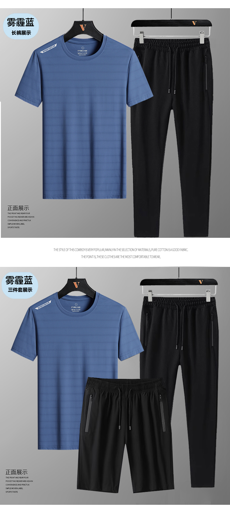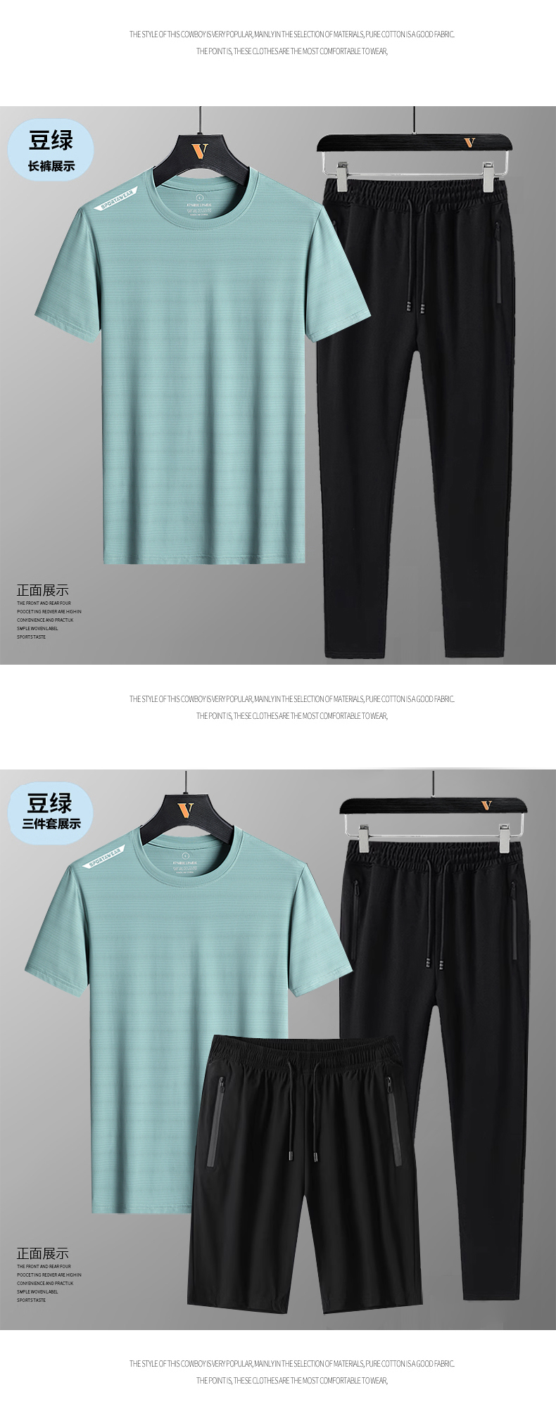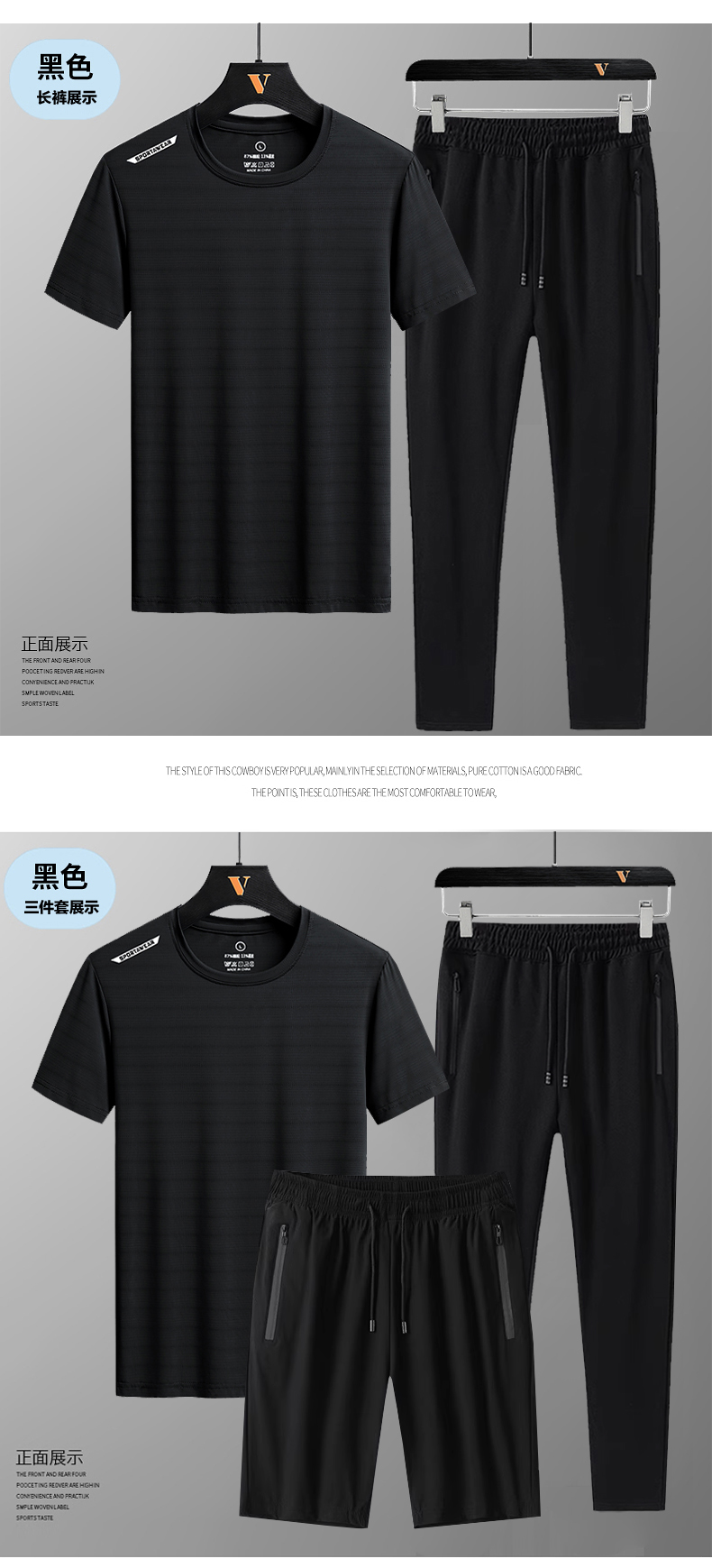 2025新款冰丝两件套夏季速干短袖休闲运动套装男中老年人爸爸夏装