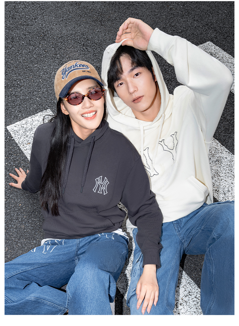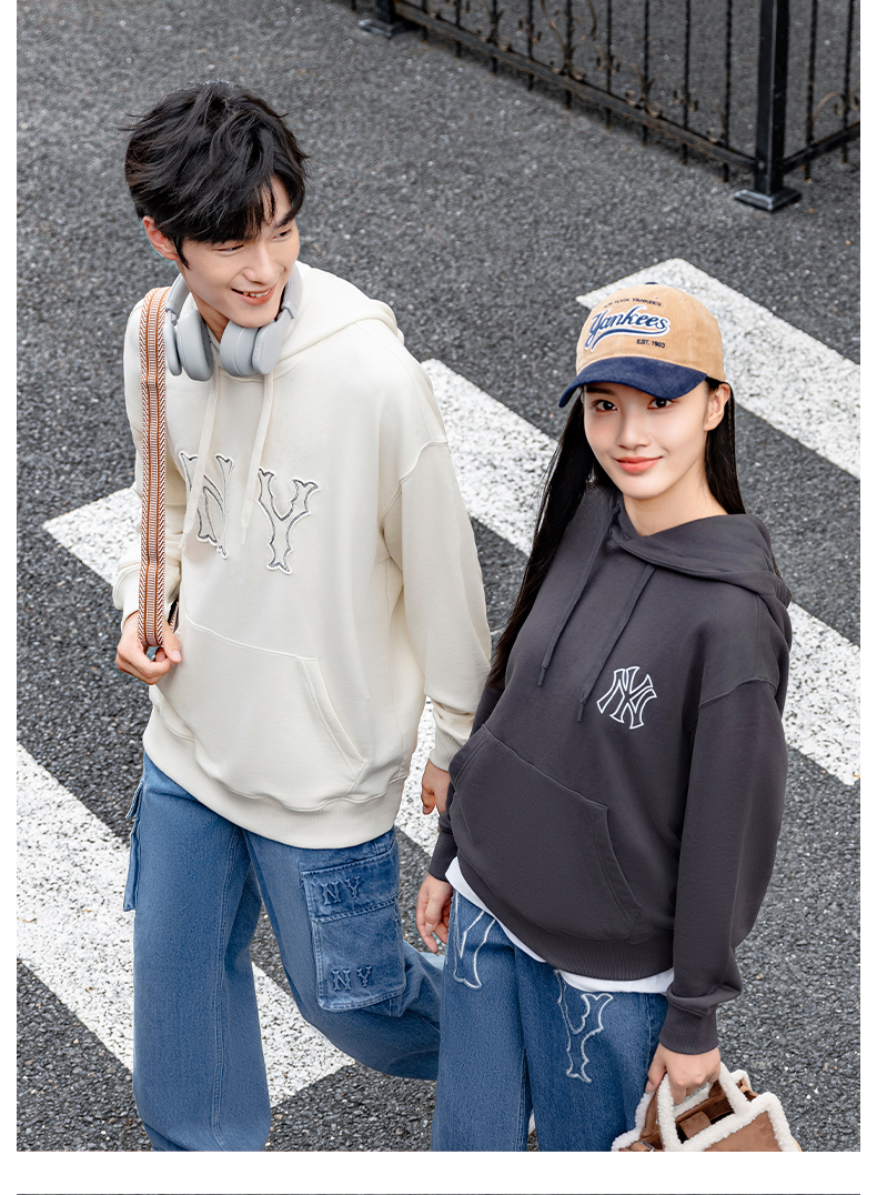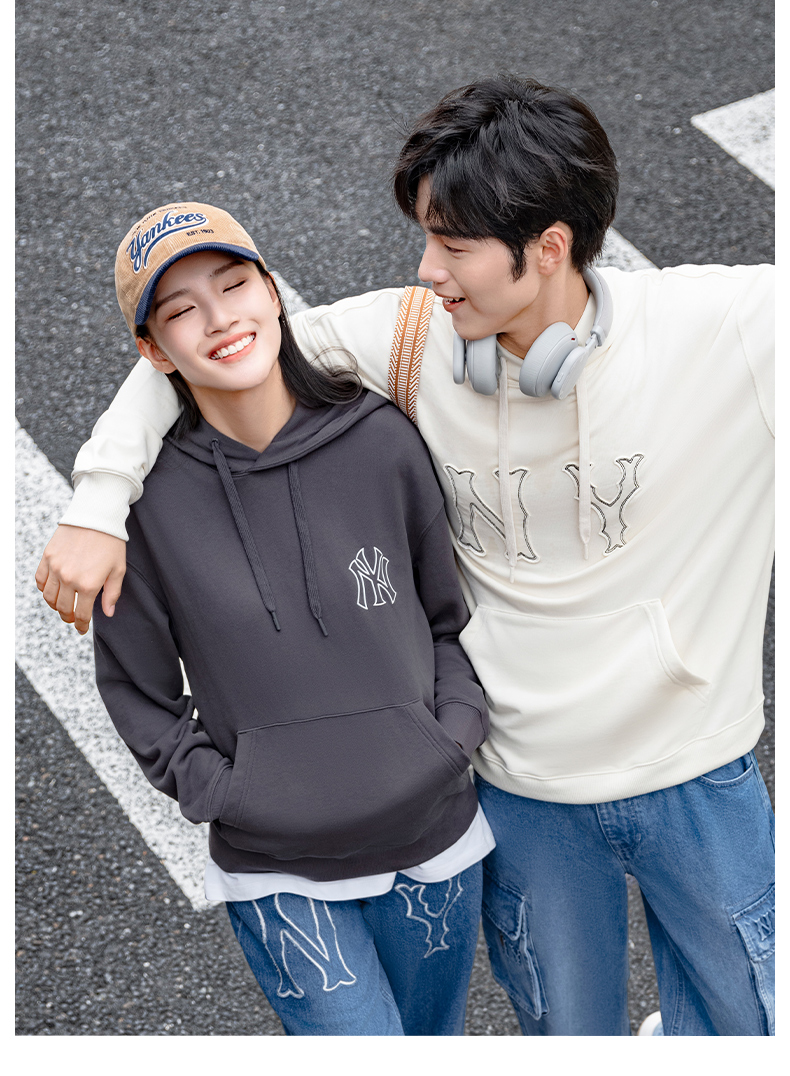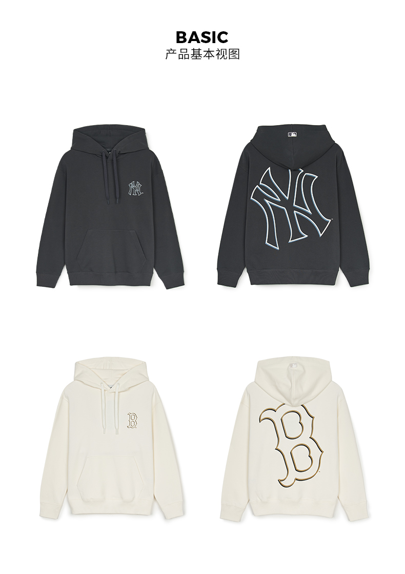 MLB官方 男女情侣大logo连帽套头衫宽松运动卫衣春夏HDB05