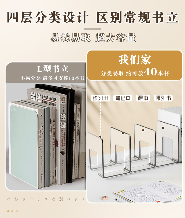 书立架阅读架书夹桌上书架桌面固定书本收纳神器分隔板书桌立架课桌收纳学生用透明亚克力置物架书挡架放书夹