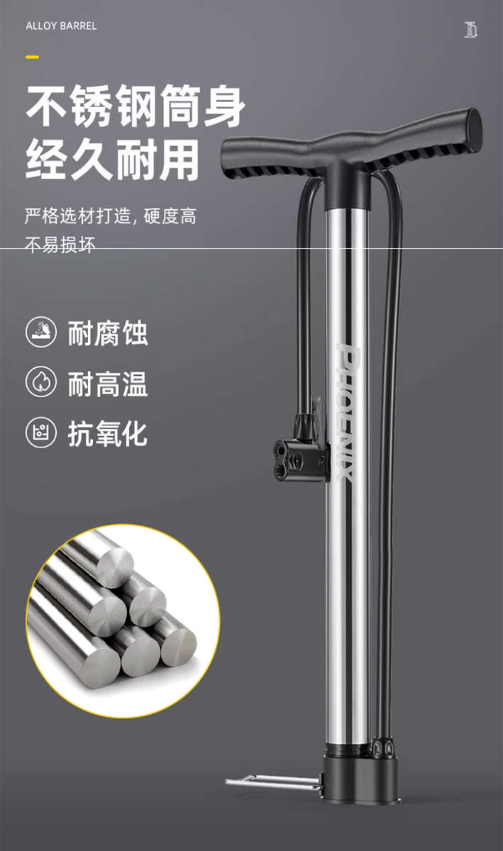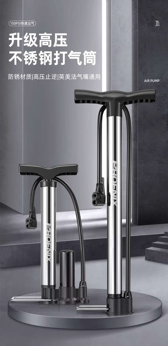 凤凰高压打气筒电动自行车单双管气压表充气筒篮球气球打气充气泵