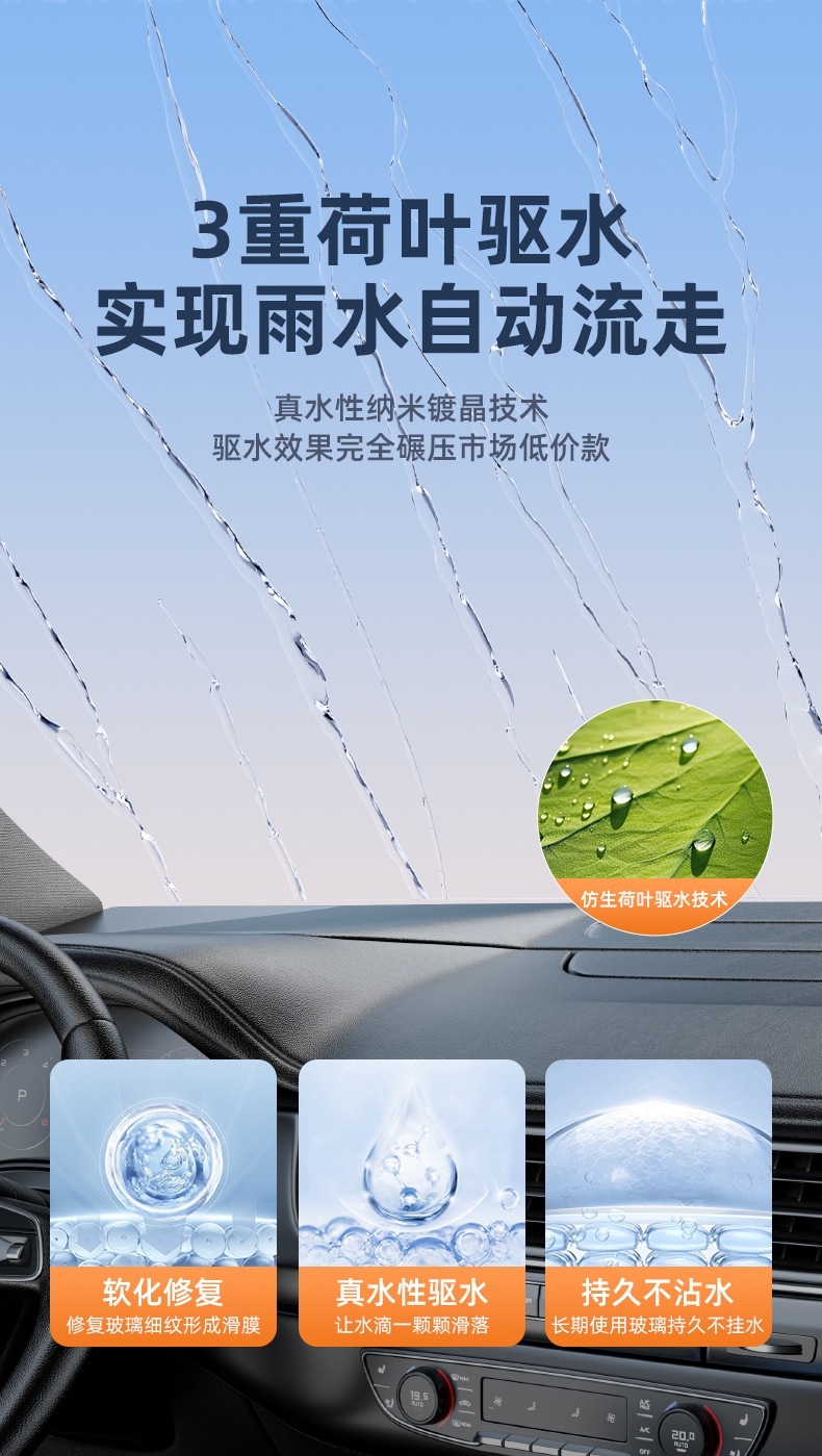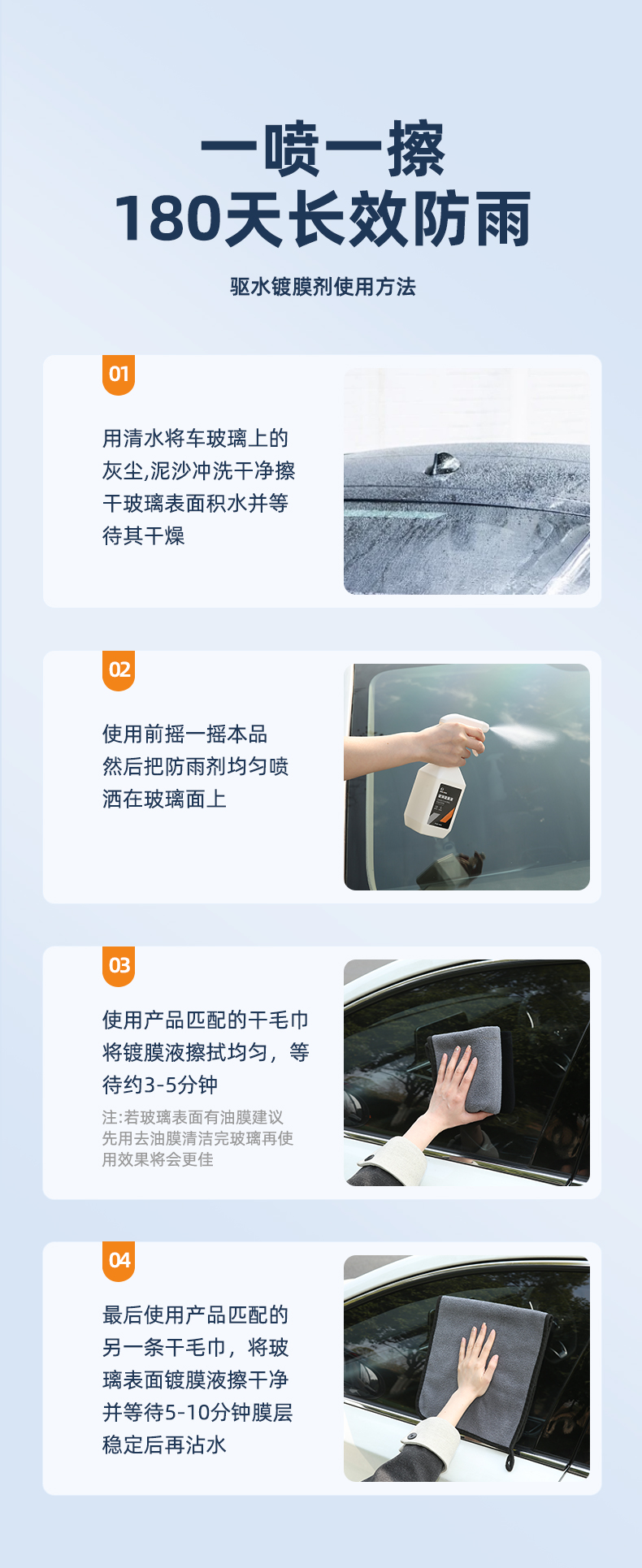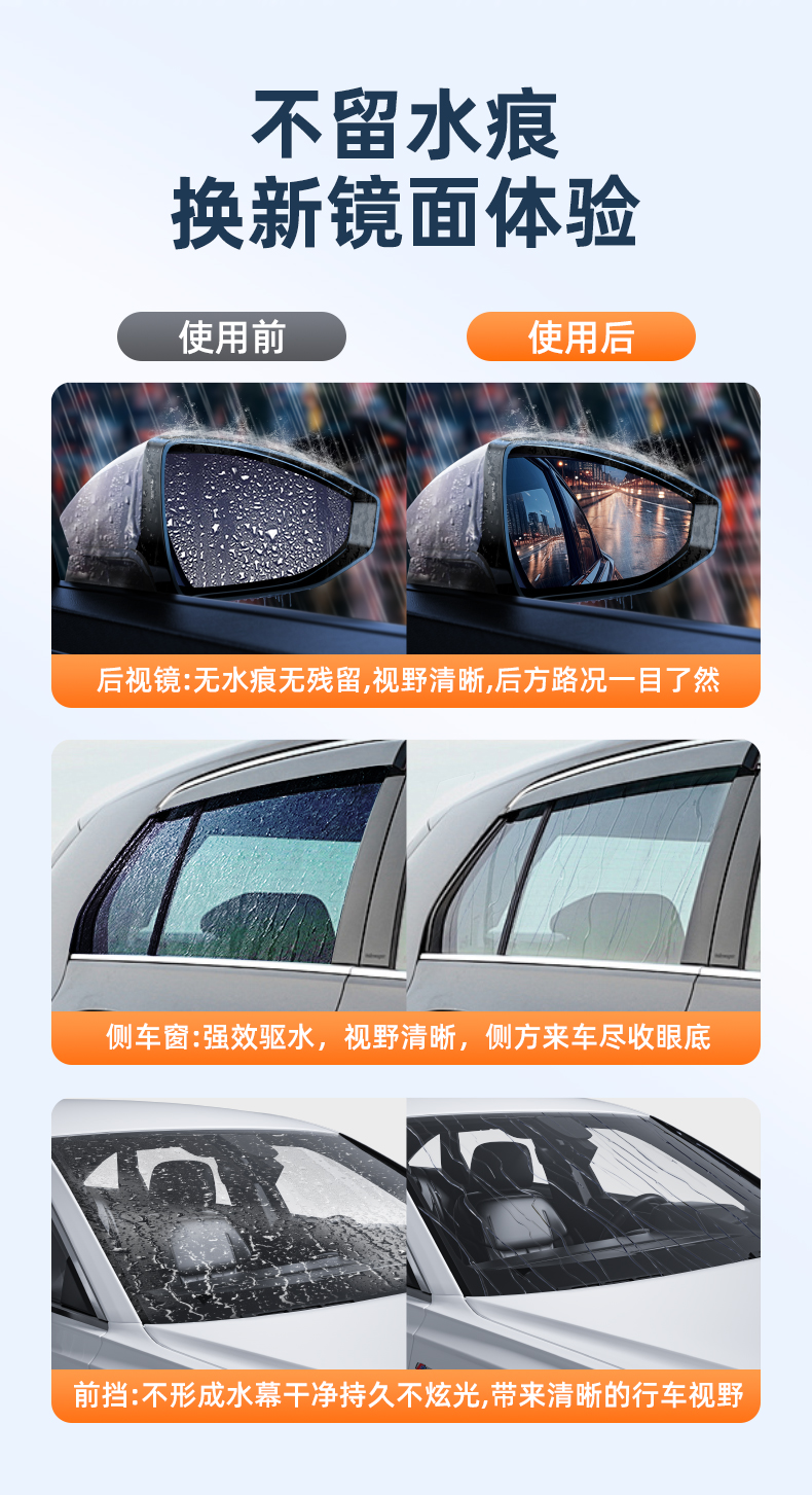 后视镜防雨水喷剂汽车挡风玻璃镀膜去油膜去除剂防雾驱水清洁神器