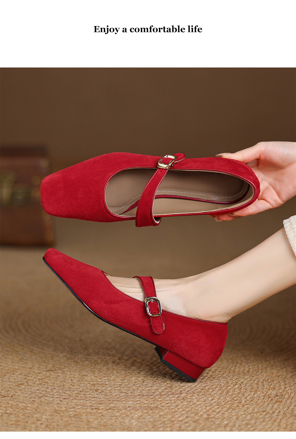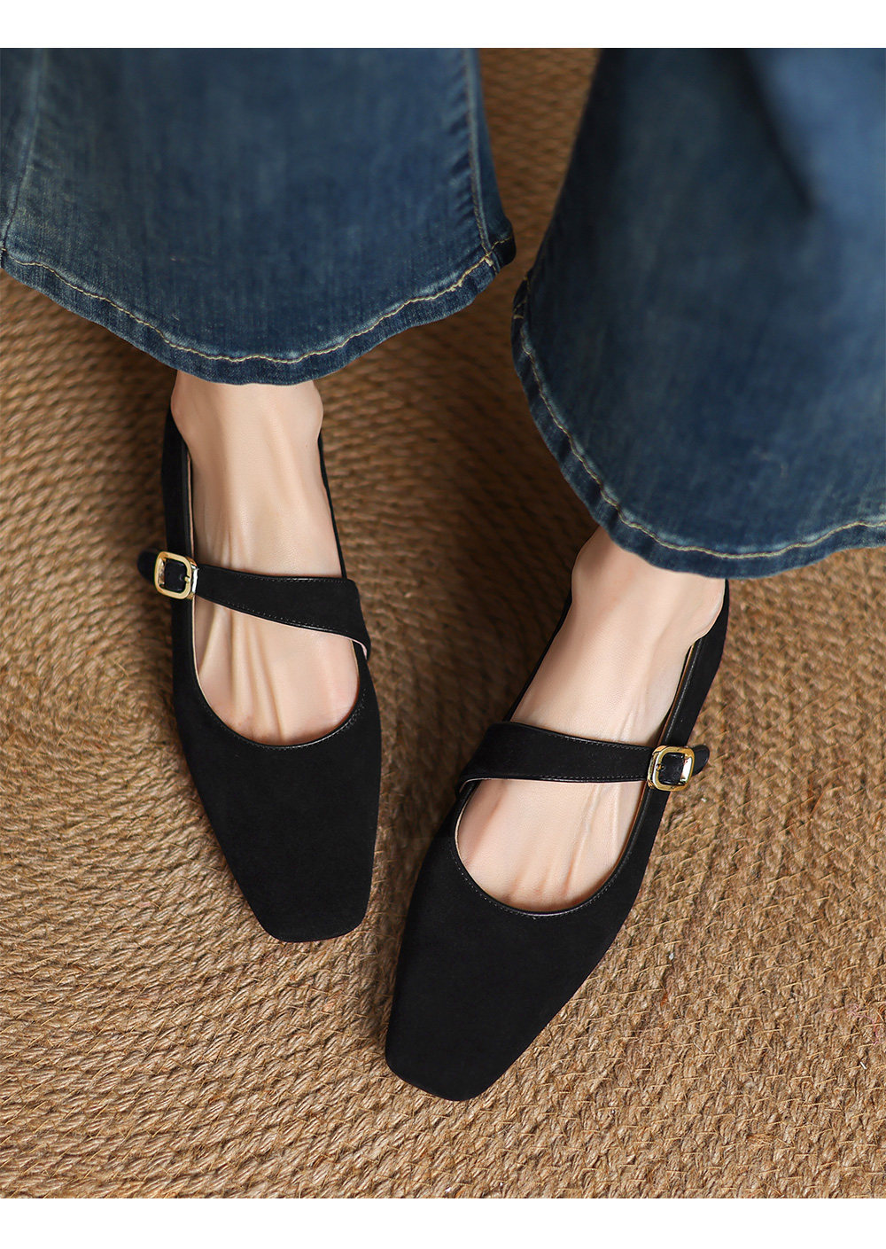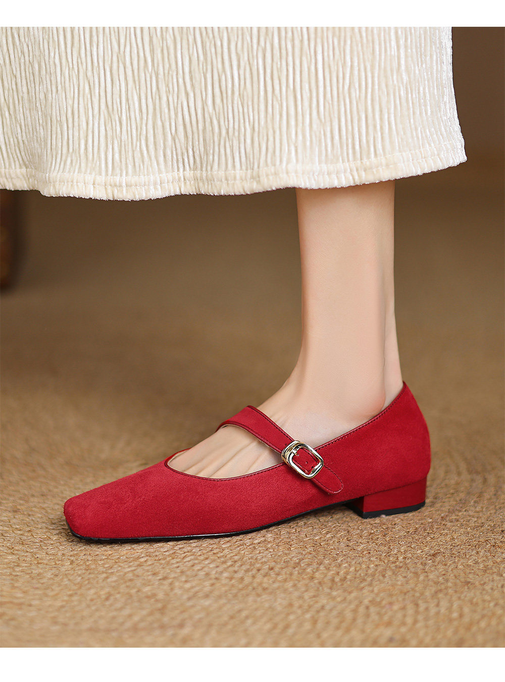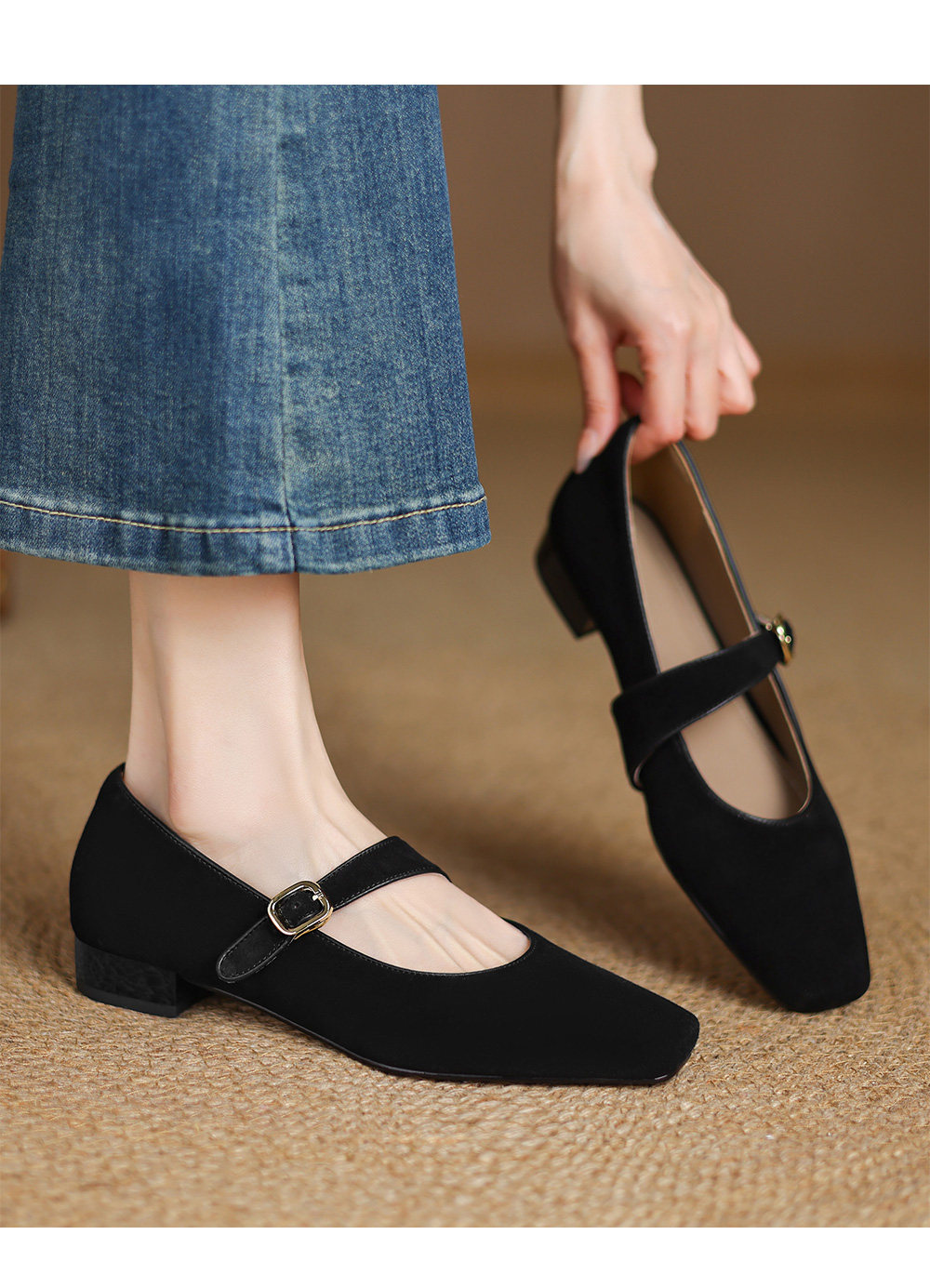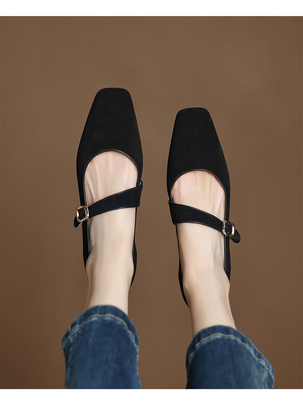 Kmeizu软~方头玛丽珍鞋女春新款简约磨砂豹纹平底赫本一字扣单鞋
