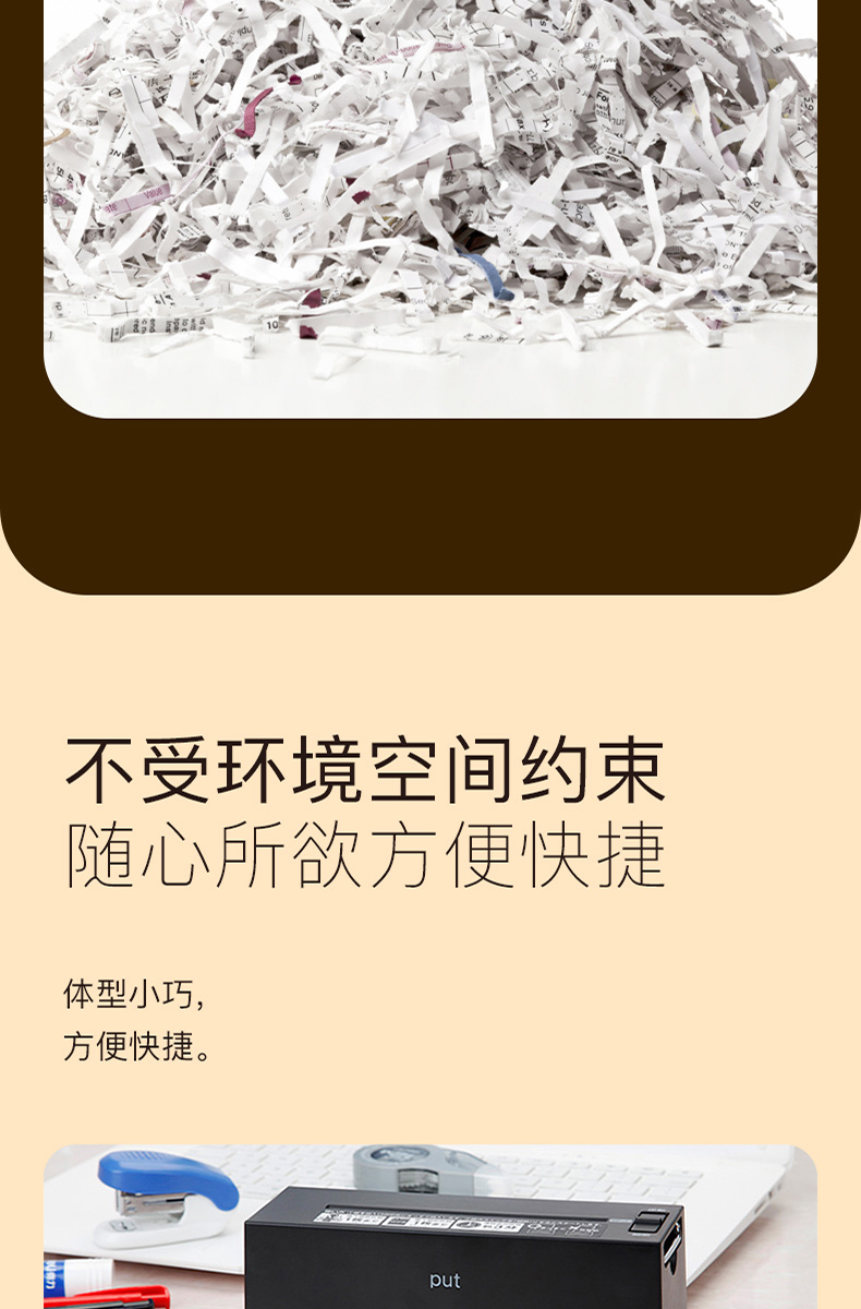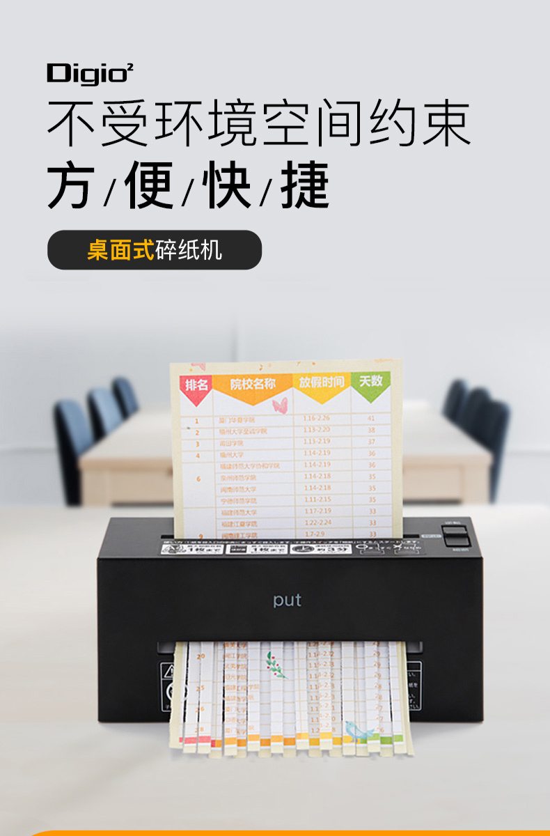 Digio2日本碎纸机小功率电动办公粉碎机家用桌面小型文件纸张废纸碎纸机迷你自动小型便捷长条形粉碎机充电款
