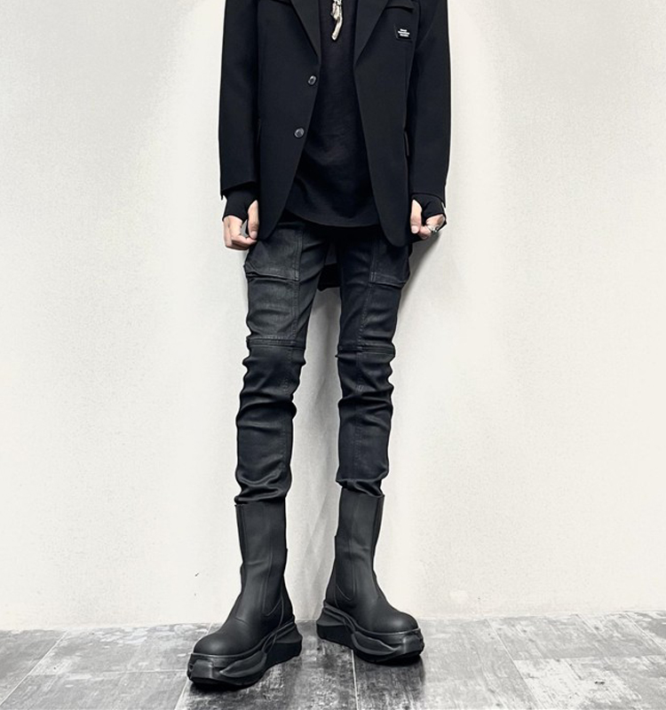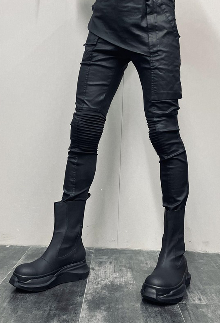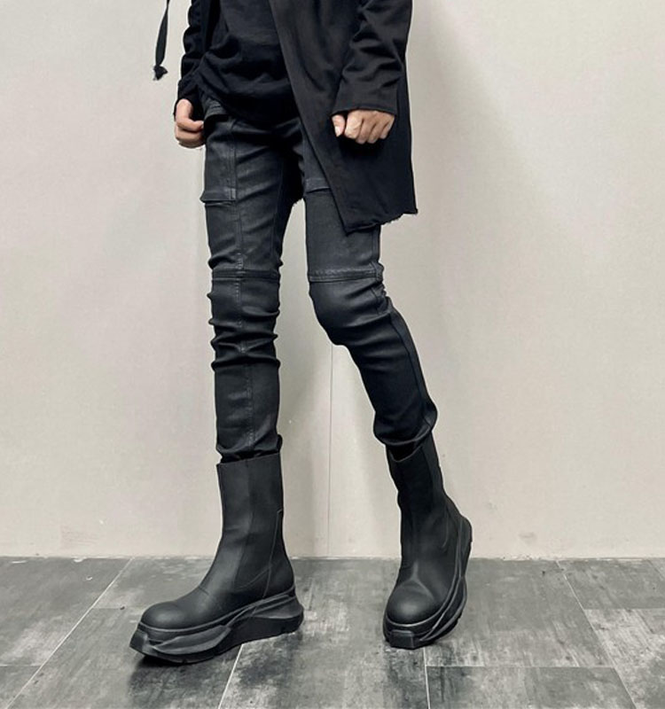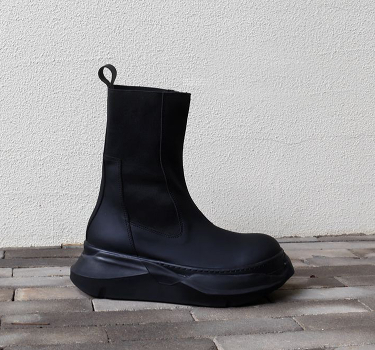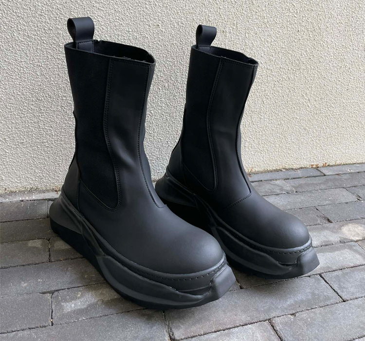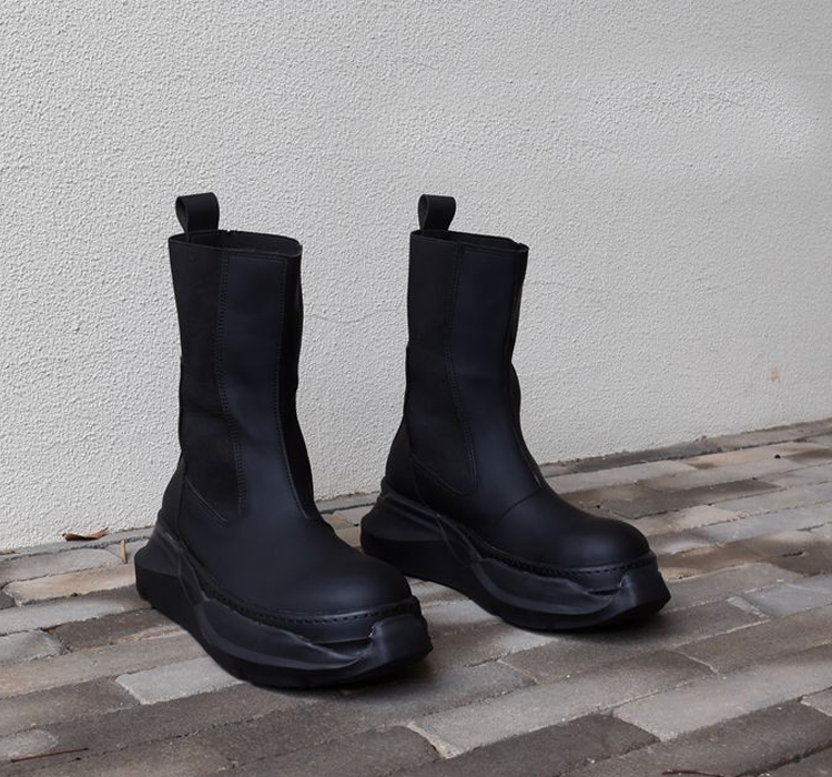 男士中筒靴子复古圆头厚底增高男靴RO鞋暗黑时尚潮男鞋韩版马丁靴