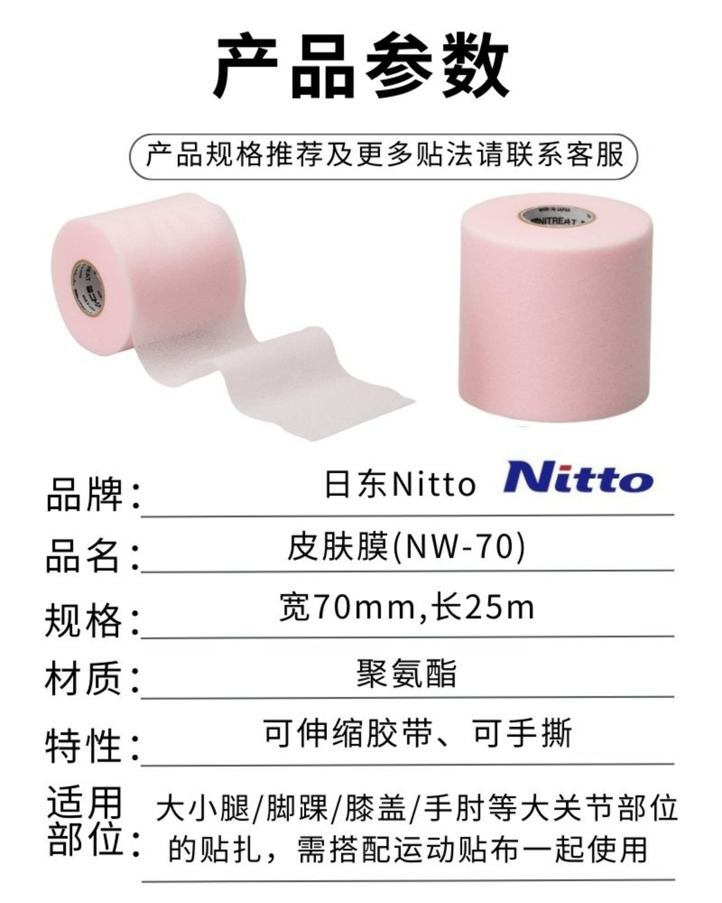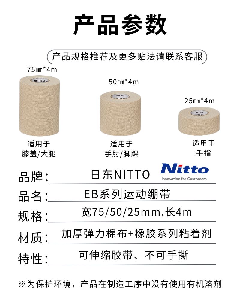 Nitto日本进口CB运动绷带护具护指白贴布固定胶布非弹力可手撕