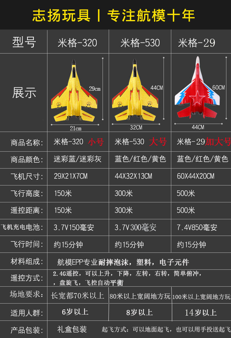 米格遥控战斗飞机滑翔机儿童易学玩具航模型泡沫学生电动充电航拍