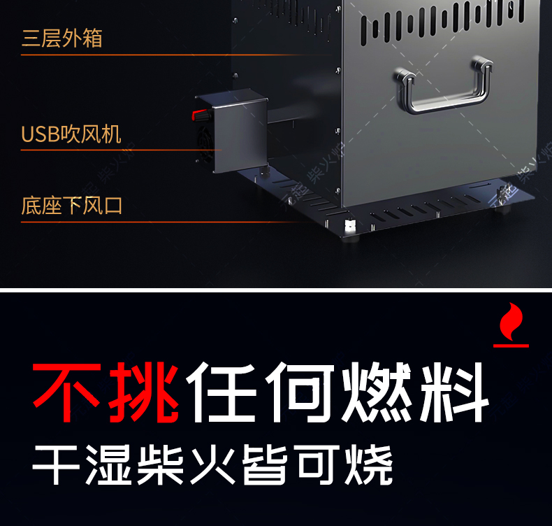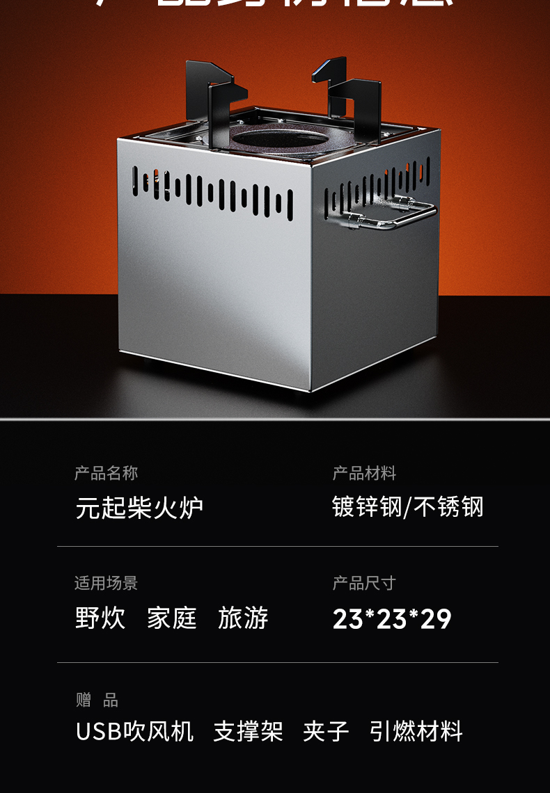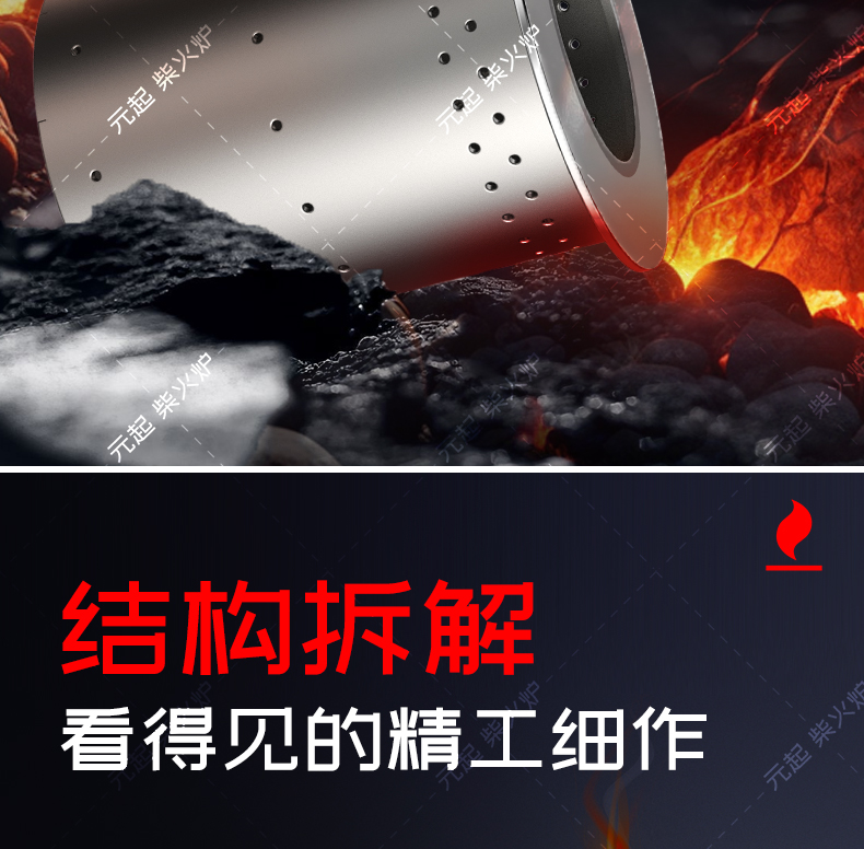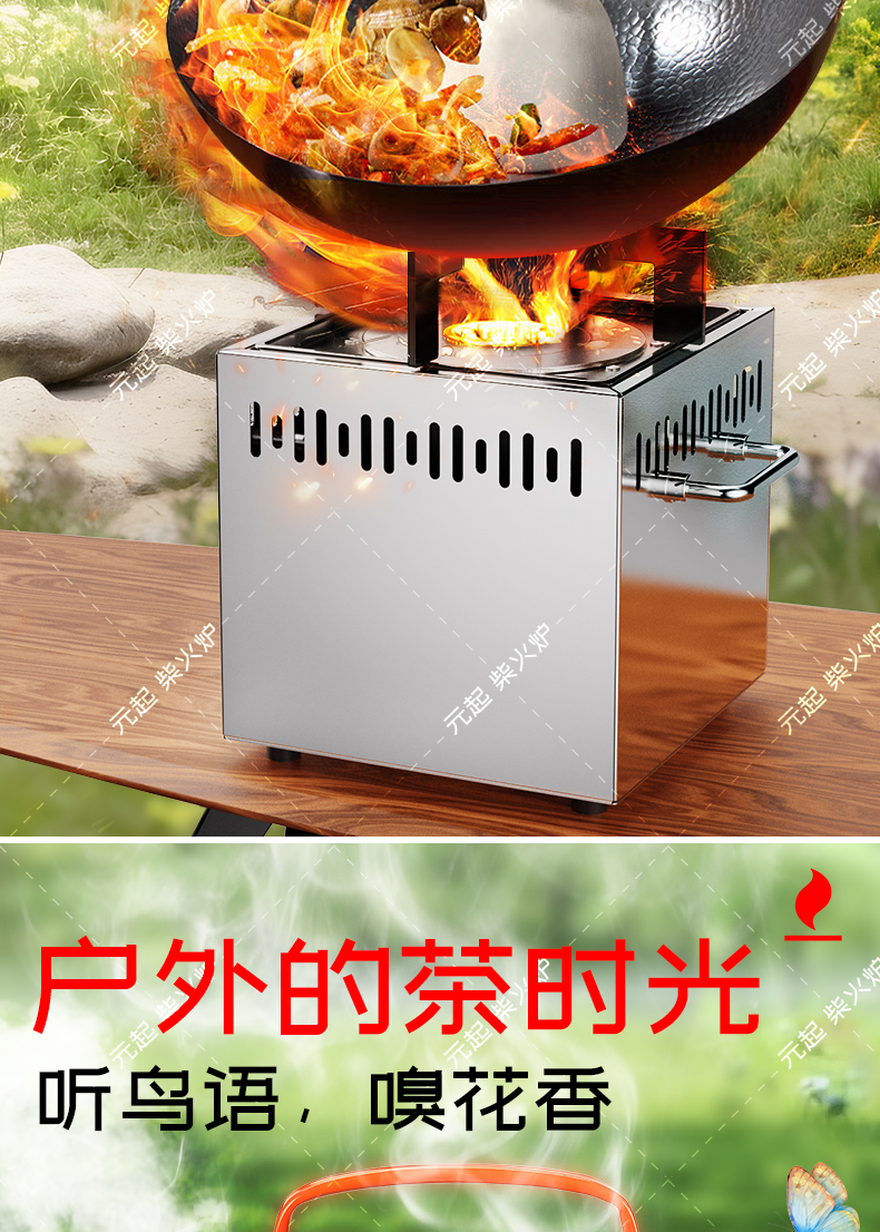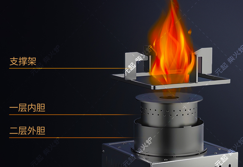 元起户外便携式柴火炉新型无烟气化炉露营野炊柴火灶家用新款