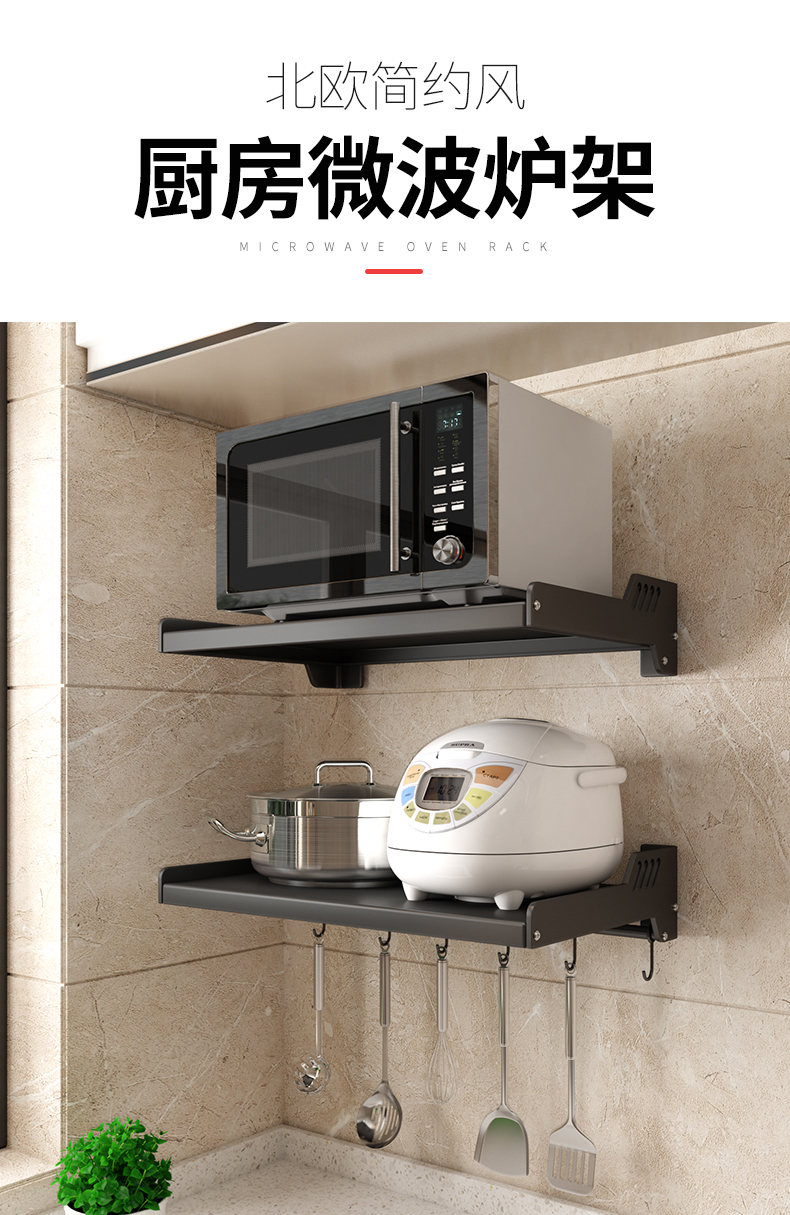 微波炉置物架免打孔挂墙上烤箱支架家用壁挂式厨房收纳架挂架子