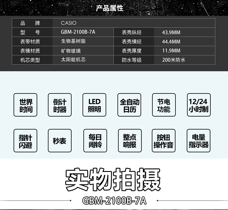 新品卡西欧G-SHOCK男士运动防水腕表太阳能蓝牙橡树GBM-2100B-7A