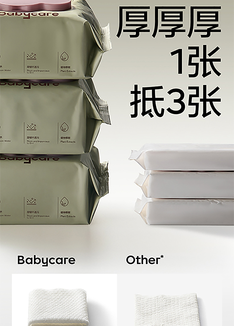 babycare紫盖湿纸巾60抽+山茶新生柔湿巾10抽1包手口宝宝可用