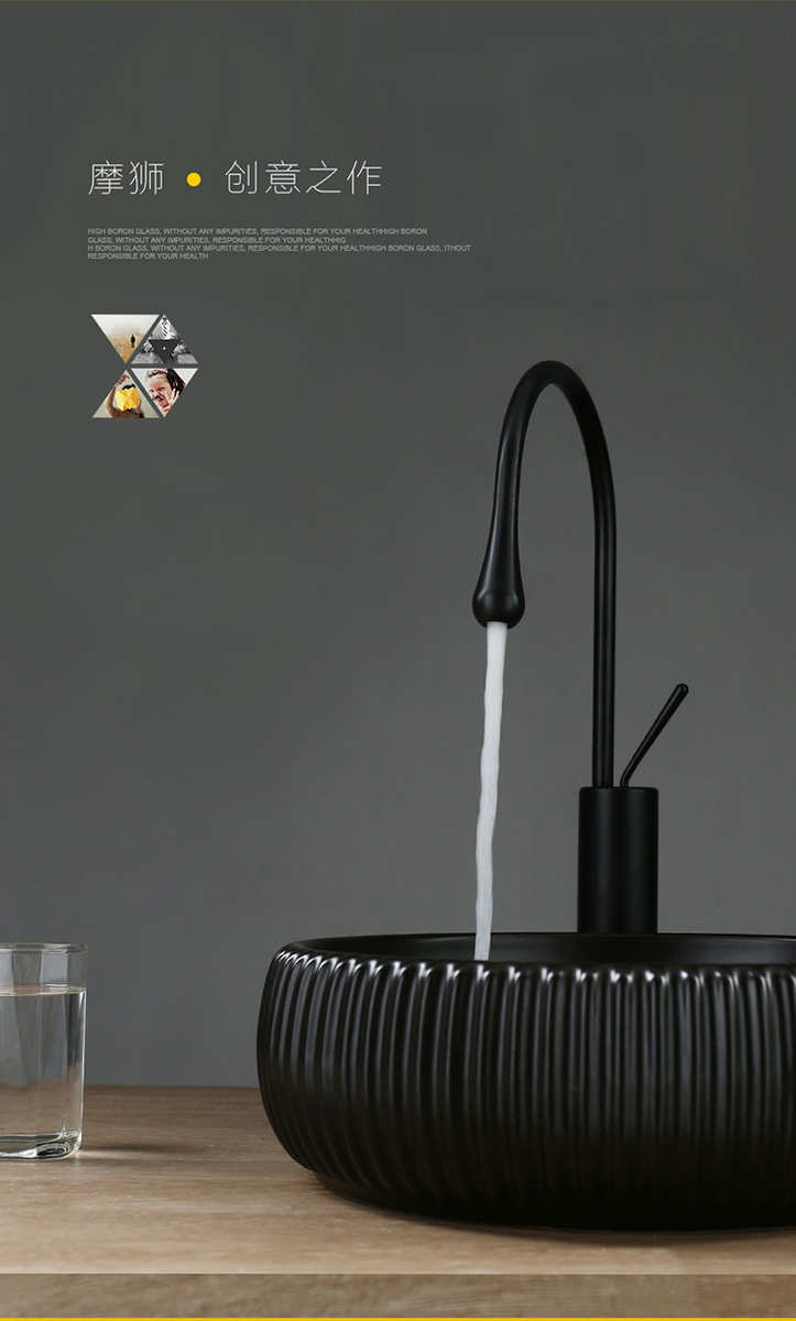 摩狮北欧简约黑色陶瓷台上盆圆形卫生间洗手盆小号洗脸盆家用单盆