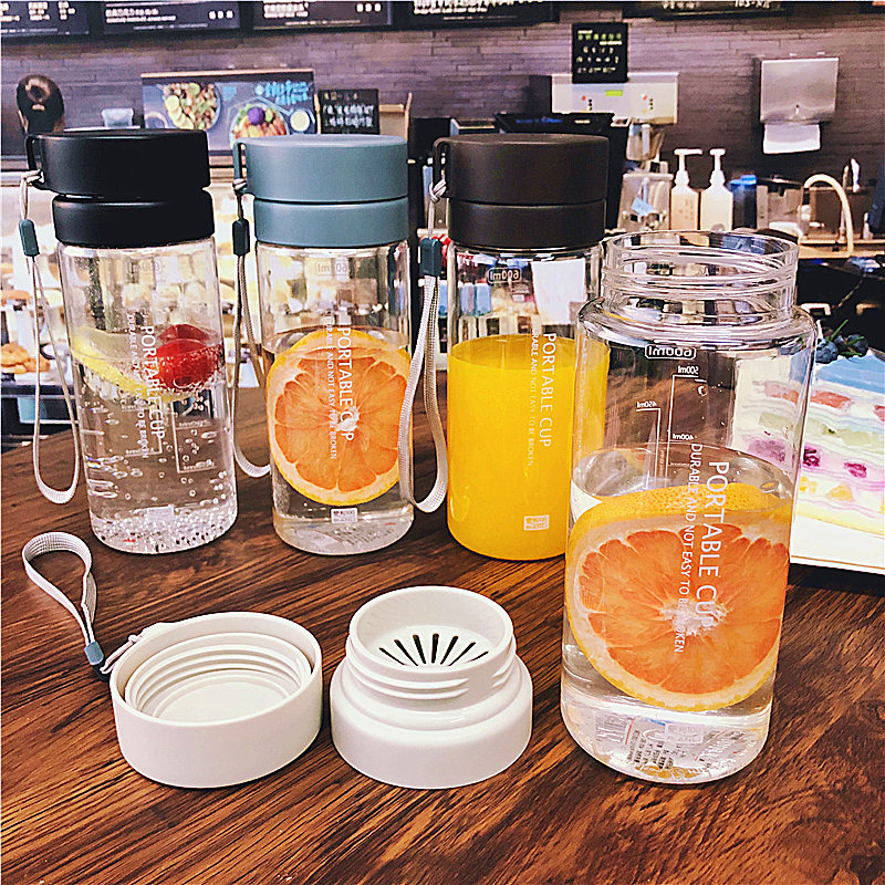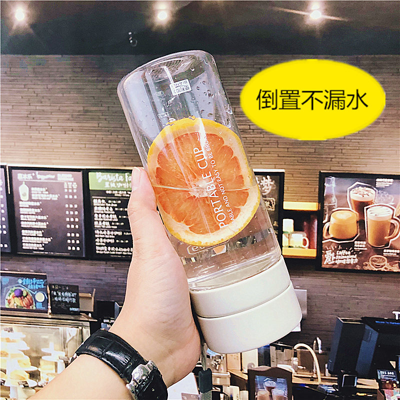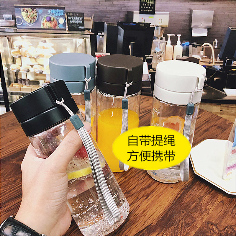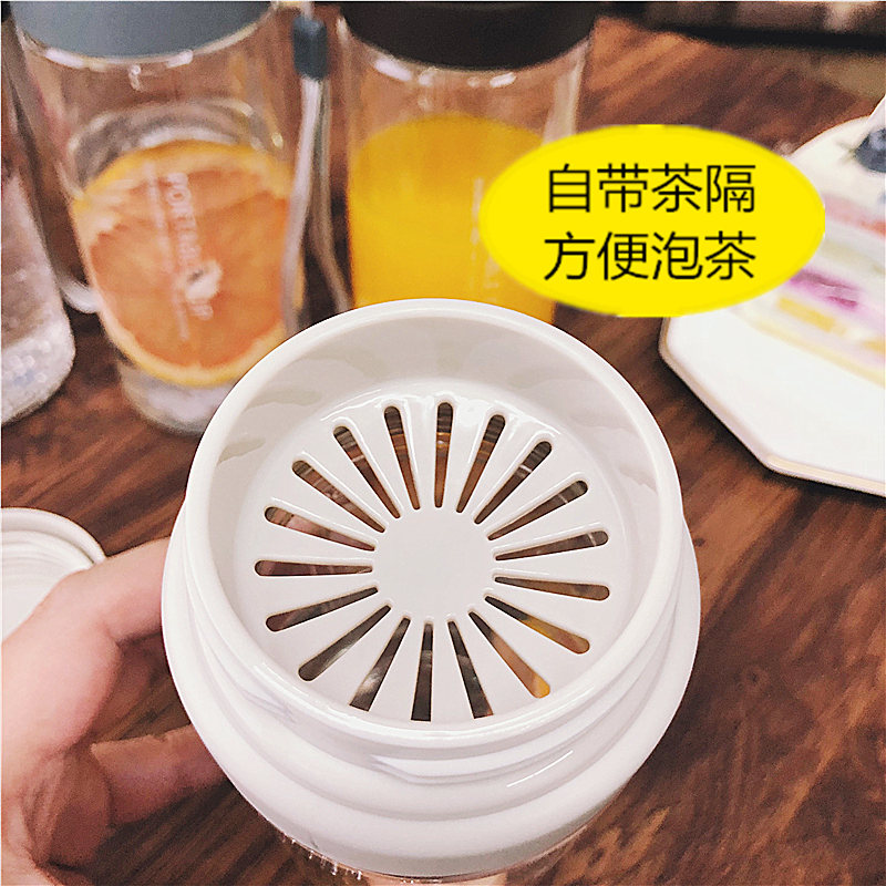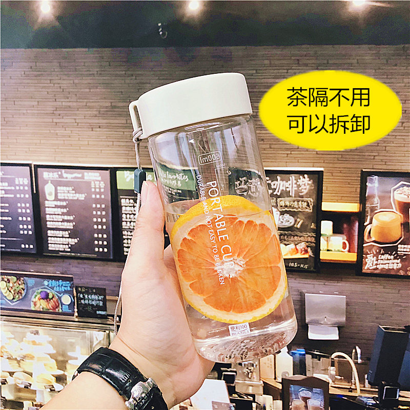 简约运动带茶隔磨砂大容量塑料杯男女学生便携耐摔清新随手水杯子
