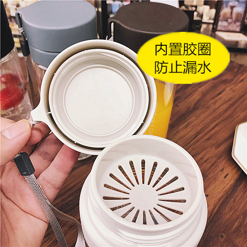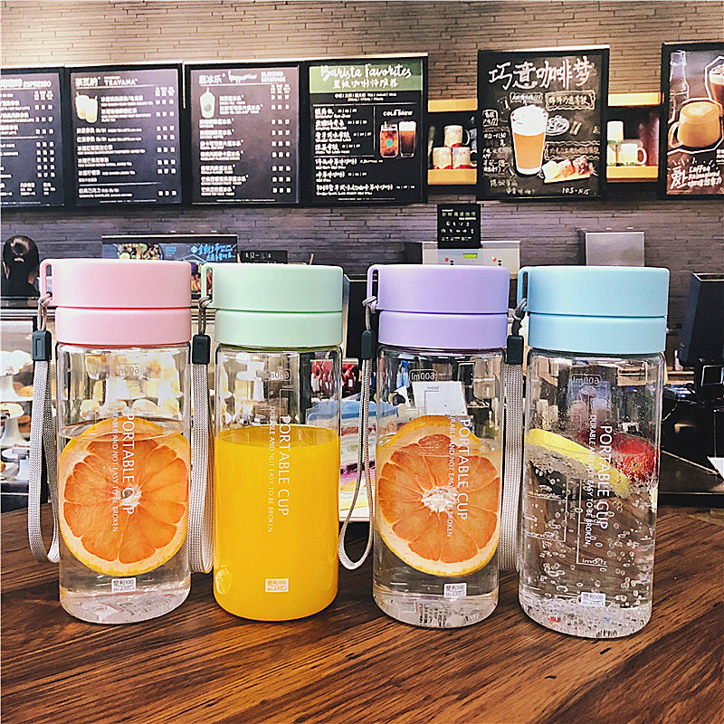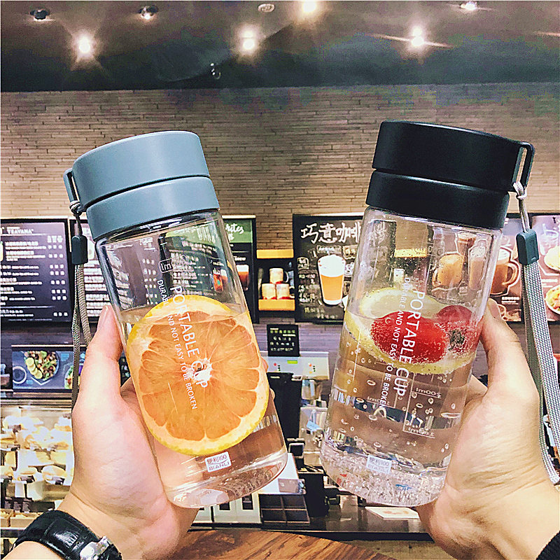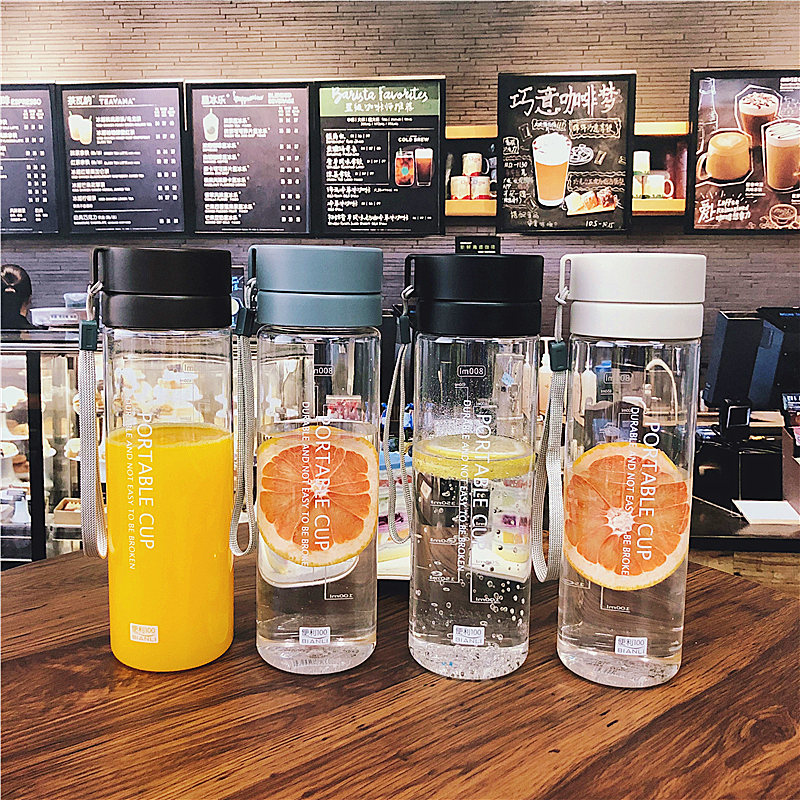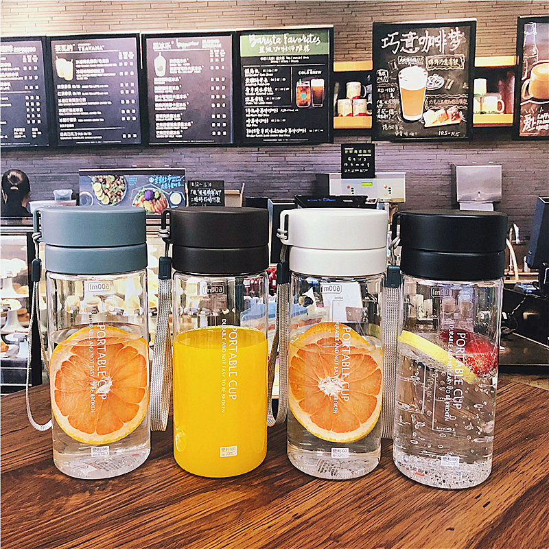简约运动带茶隔磨砂大容量塑料杯男女学生便携耐摔清新随手水杯子